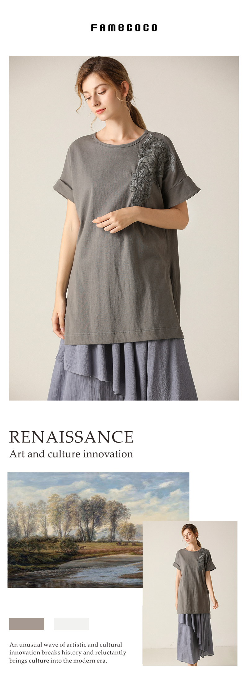 - Famecoco作为中国本土设计师品牌之一的她,创建于美丽的时尚花都广州,自2013年创立以来,一直致力于打造优雅、知性、文艺的穿着理念。
