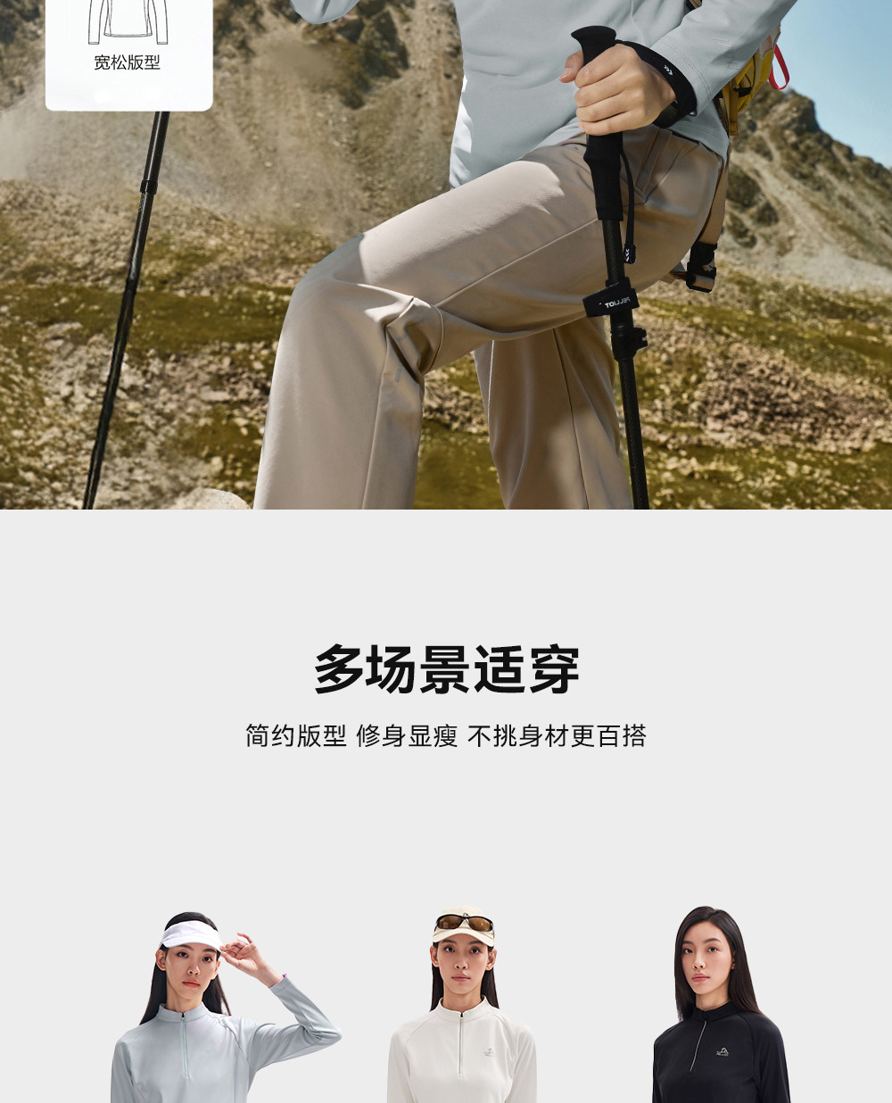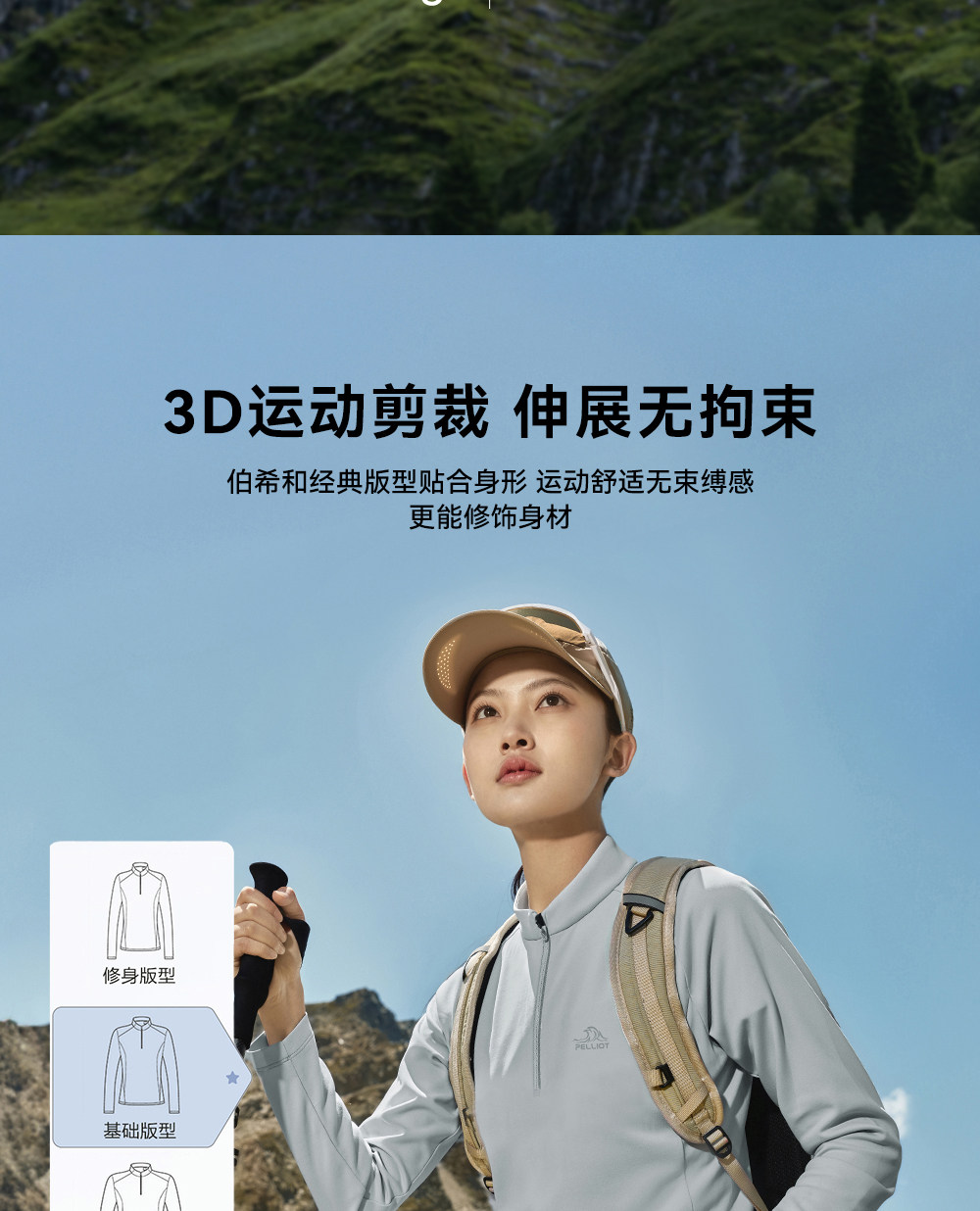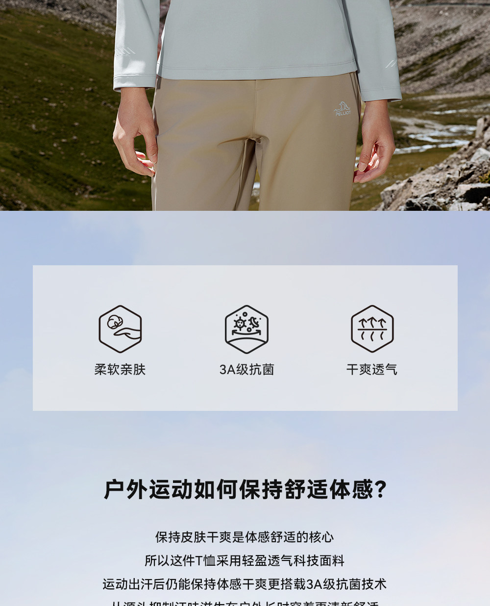 伯希和户外长袖T恤吸湿抗菌运动健身打底衫徒步登山快干T恤女款