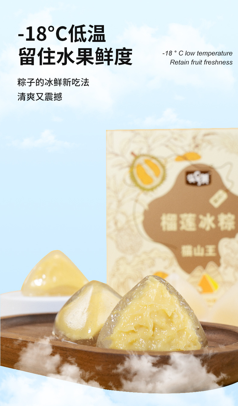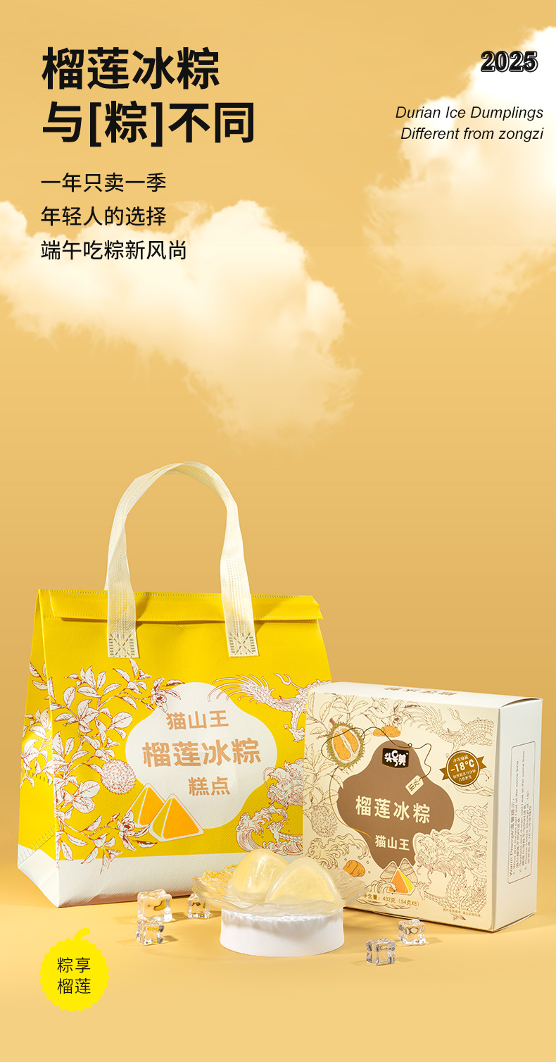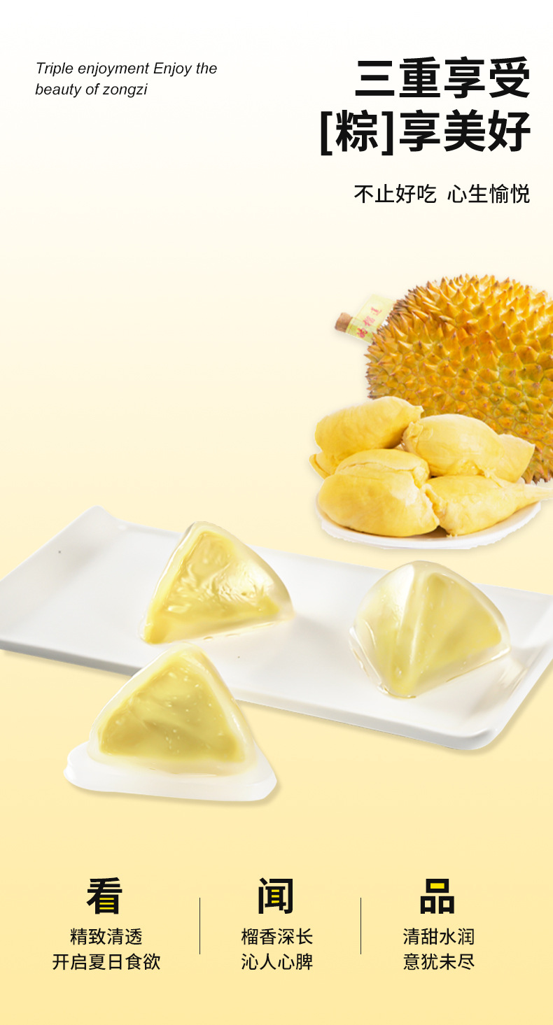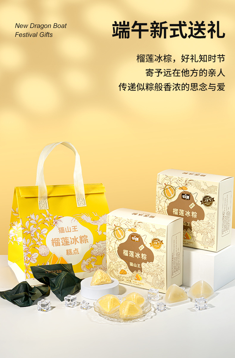 【顺风包邮❗️猫山王榴莲冰粽】冰皮如丝般细腻,榴莲馅鲜美浓郁,一口咬下,满口爆浆,广式端午节榴莲粽子,散装礼盒装年货礼盒L