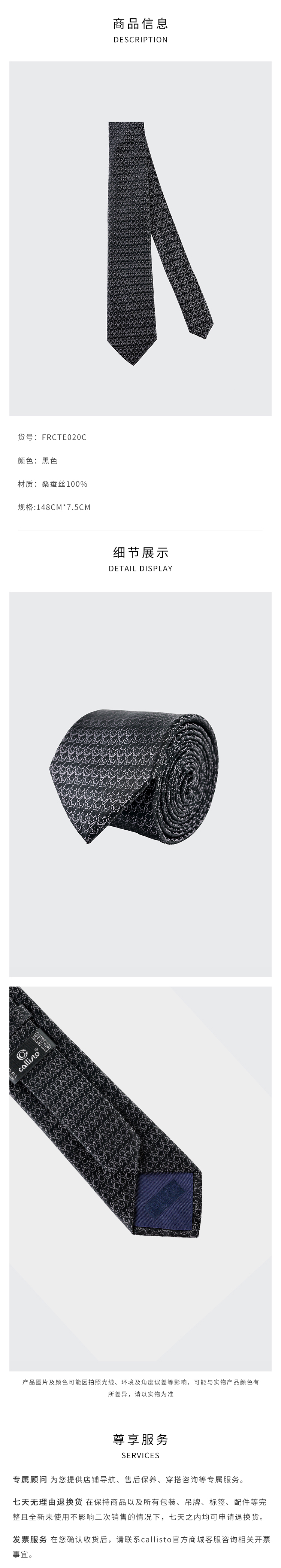 callisto深黑色全桑蚕丝领带 FRCTE020C