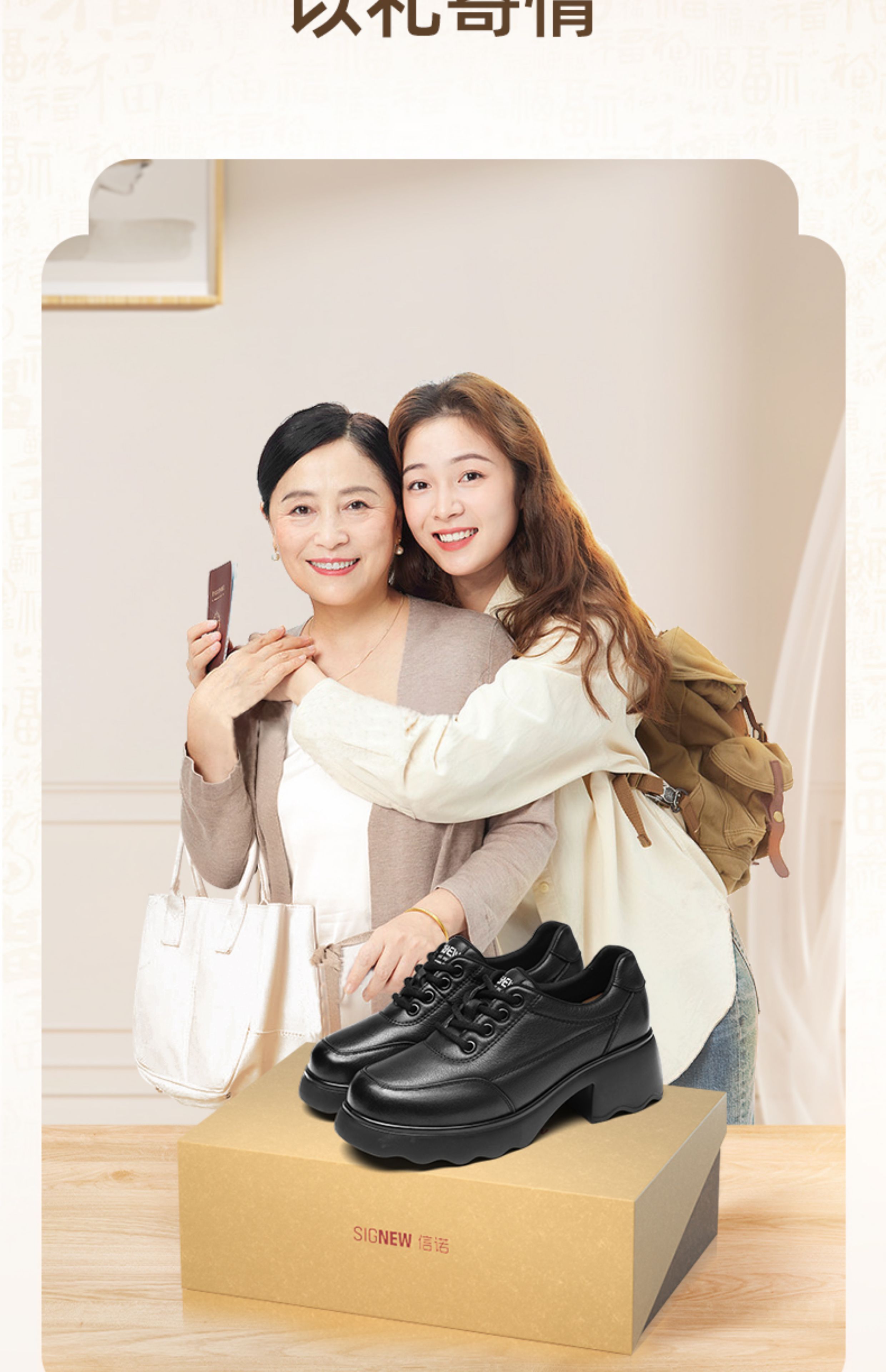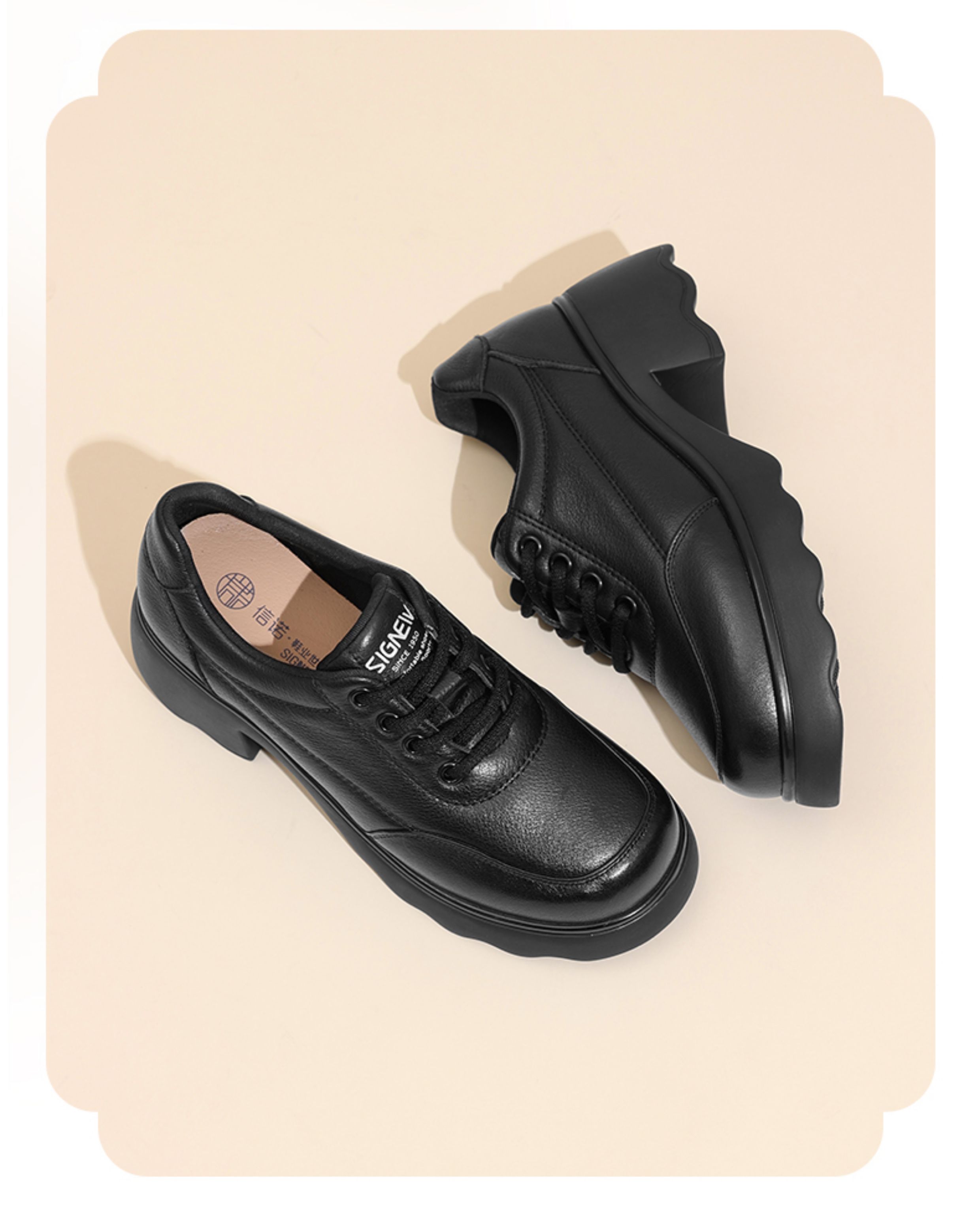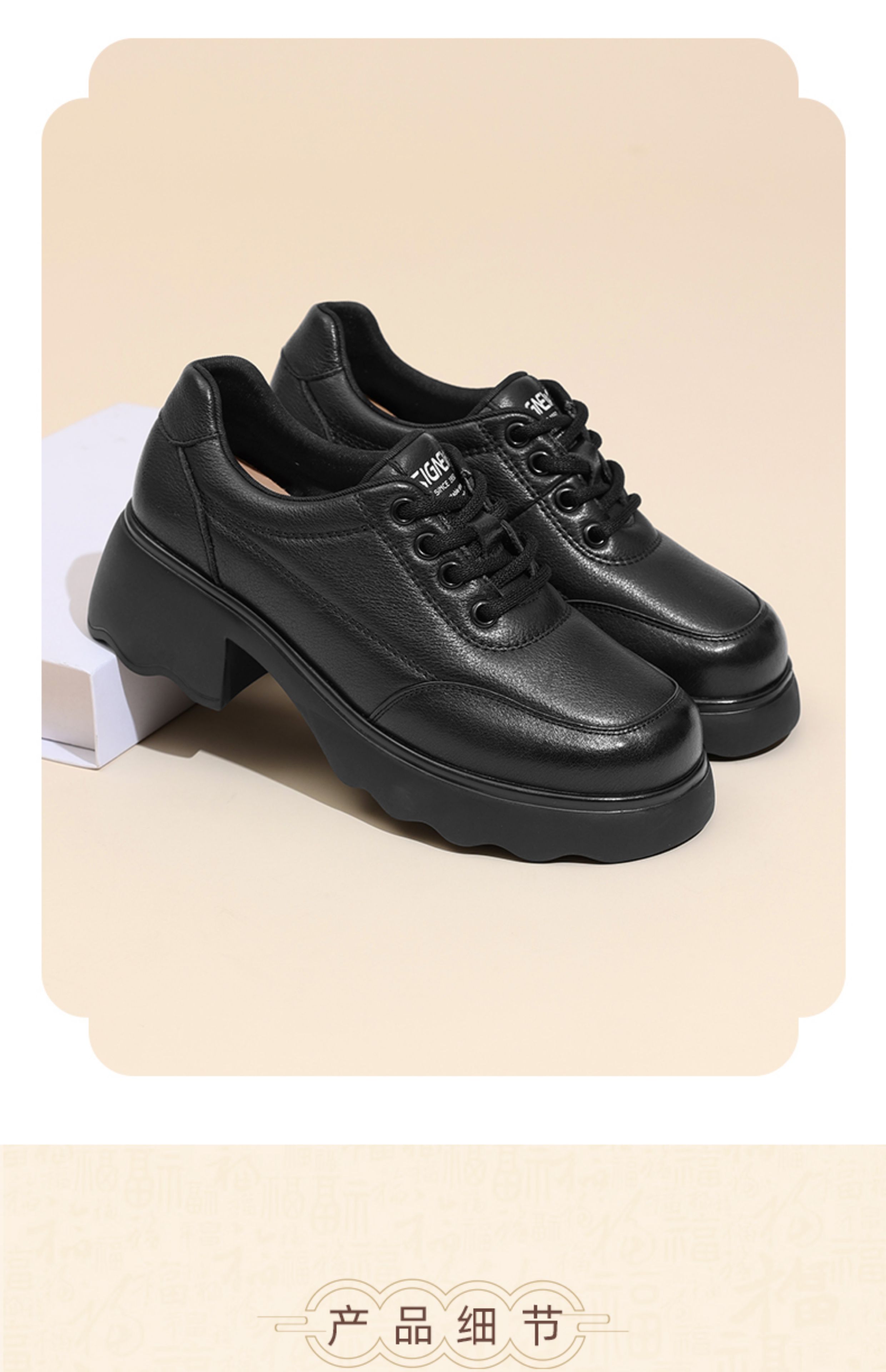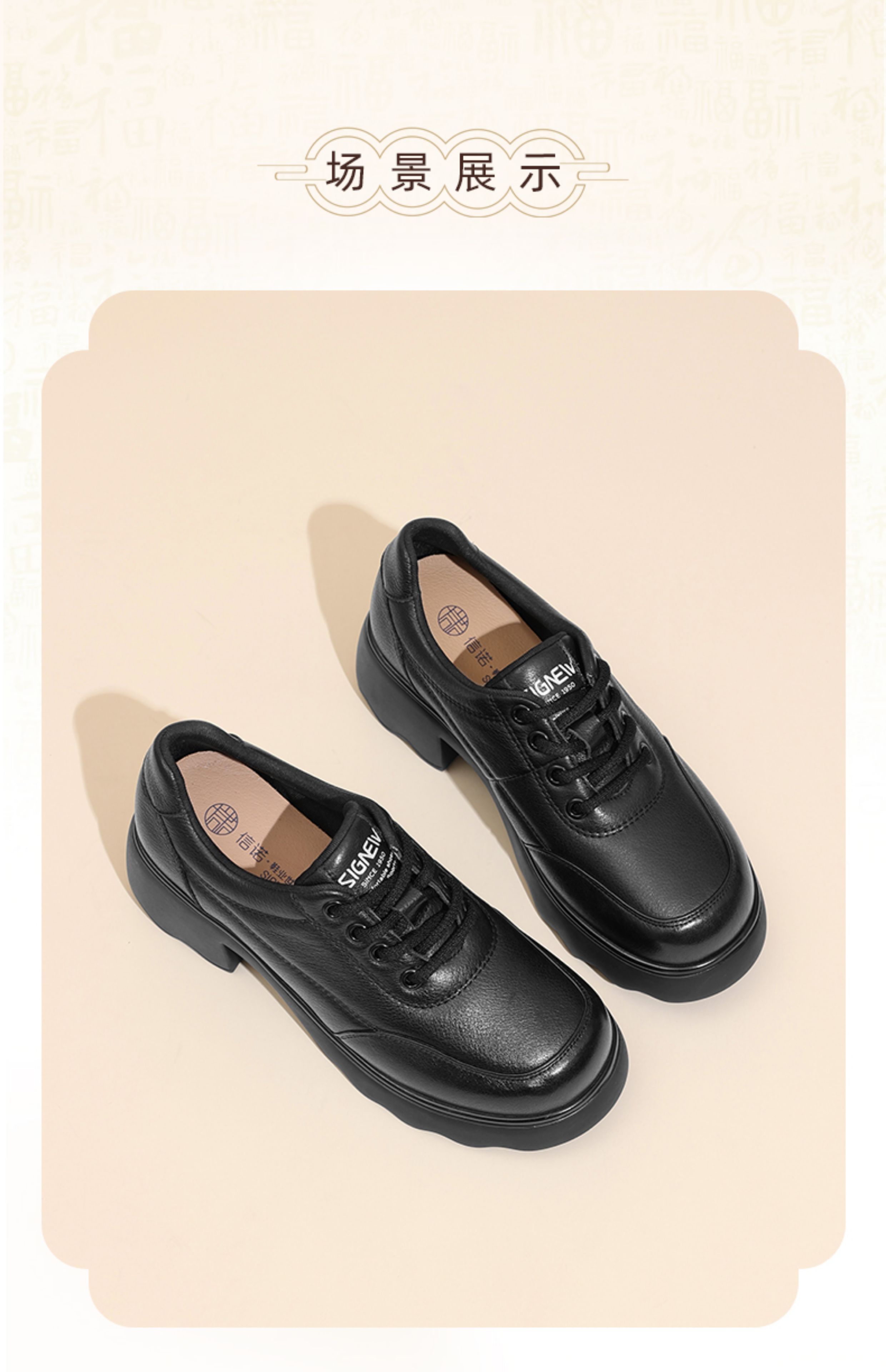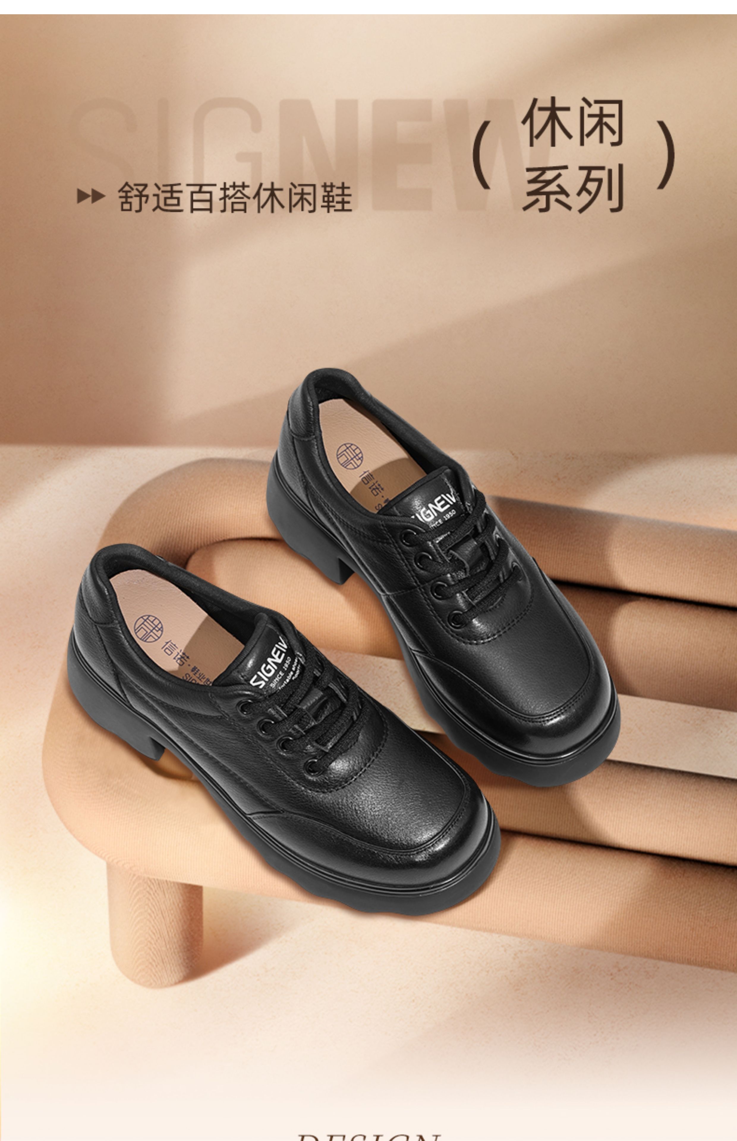 信诺厚底增高妈妈鞋女透气舒适百搭休闲皮鞋真皮单鞋2025秋季新款X5Q002-161