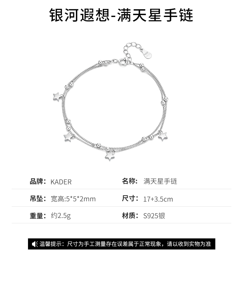 KADER纯银手链女夏925银女生ins小众设计女生520情人节礼物送女友
