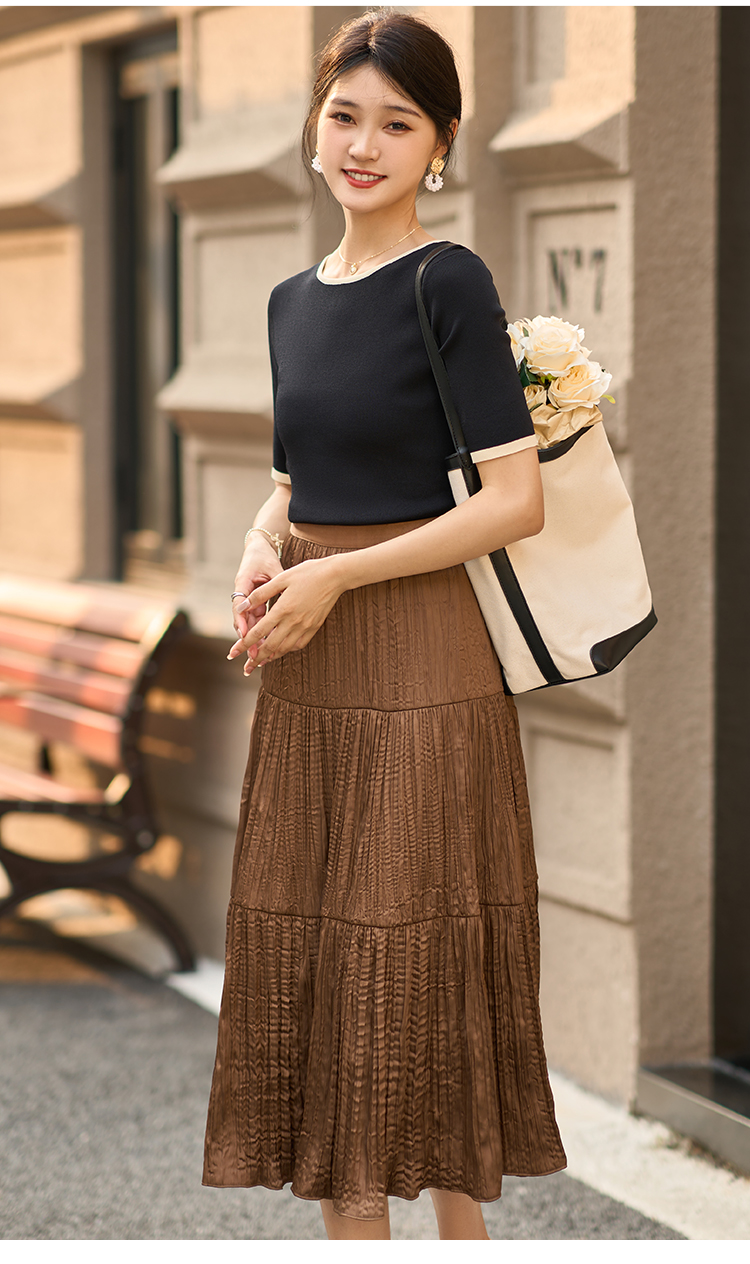 米思阳洋气时尚半身裙高级感褶皱高腰宽松a字裙5Y24BI0219