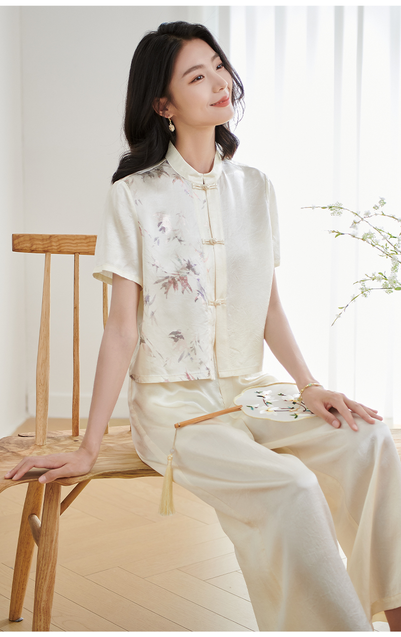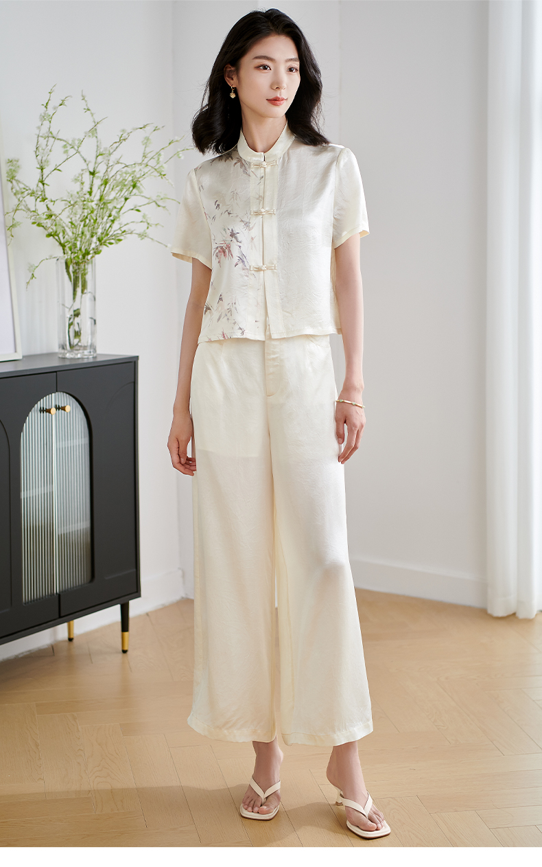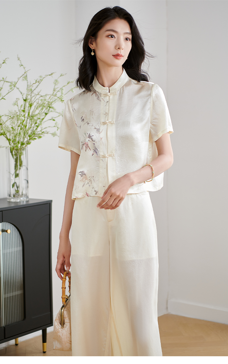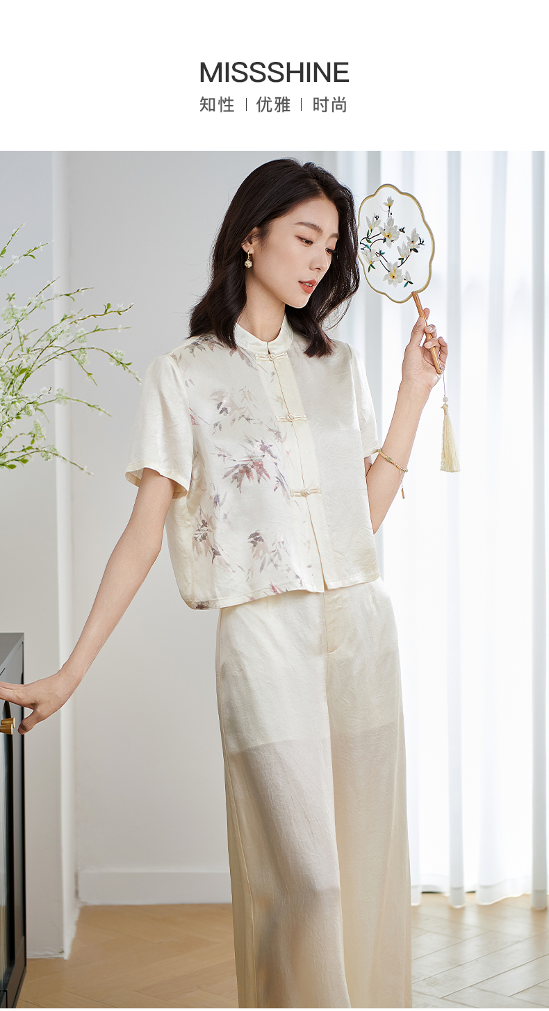 米思阳2025夏季新款新中式简约醋酸时尚套装小衫长裤两件套女2247