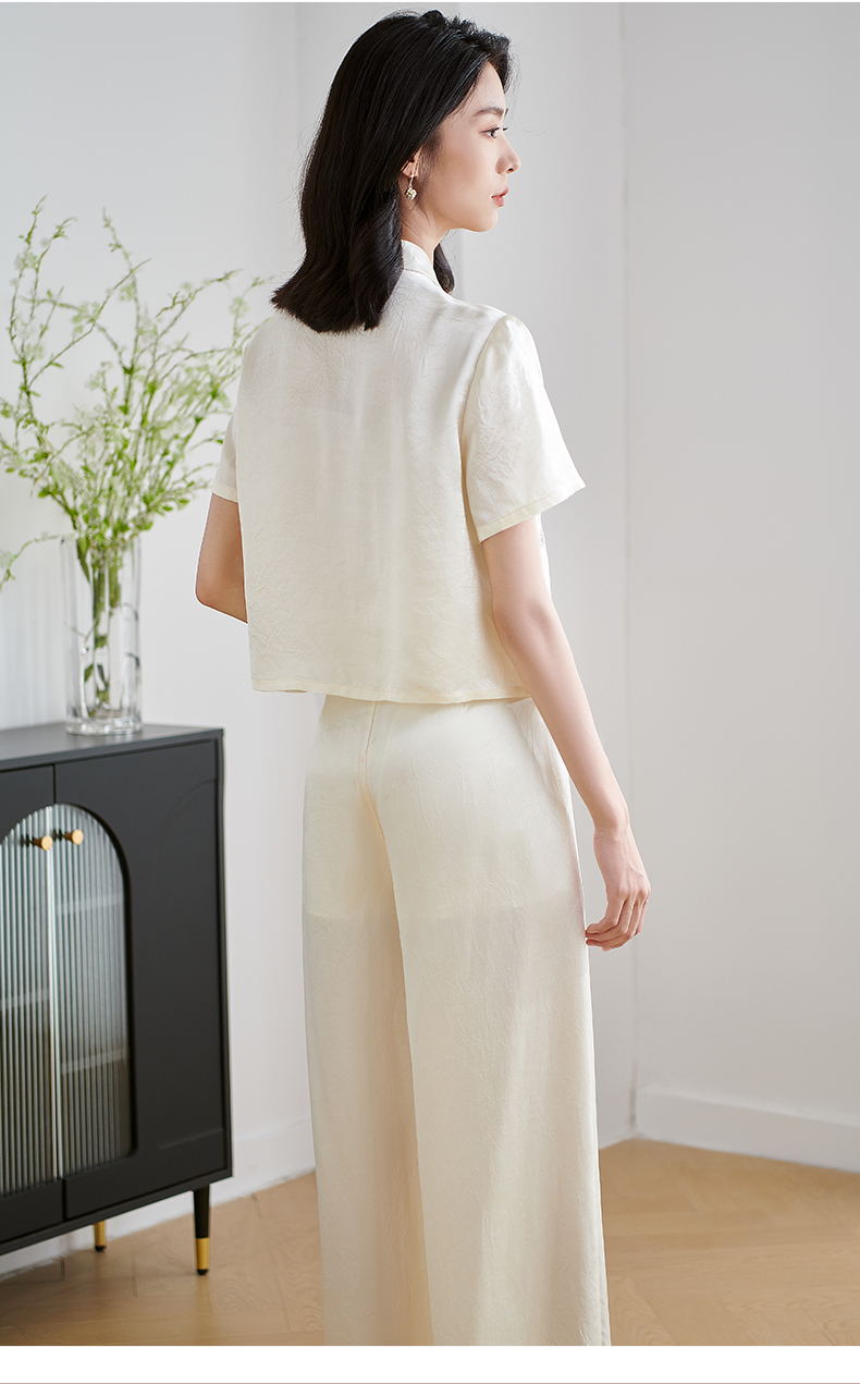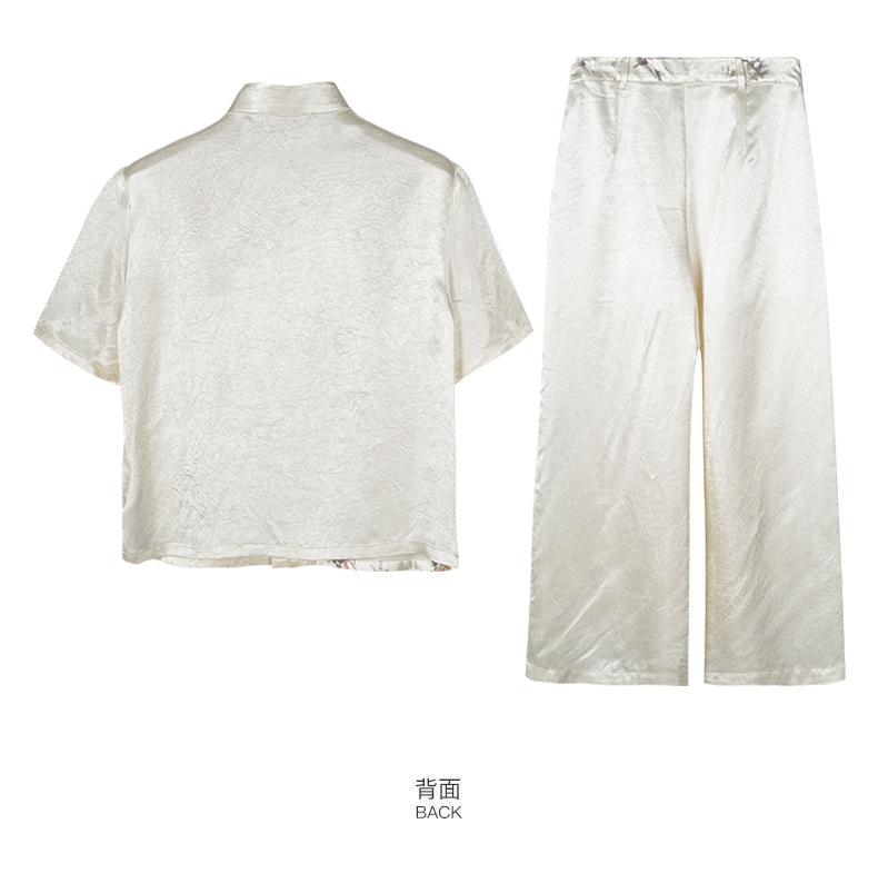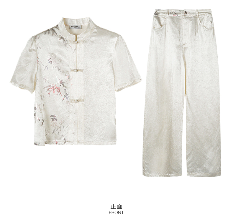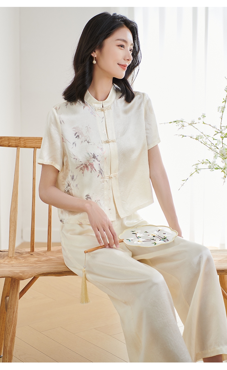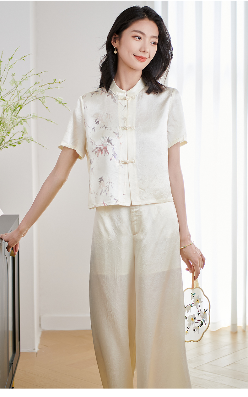 米思阳2025夏季新款新中式简约醋酸时尚套装小衫长裤两件套女2247