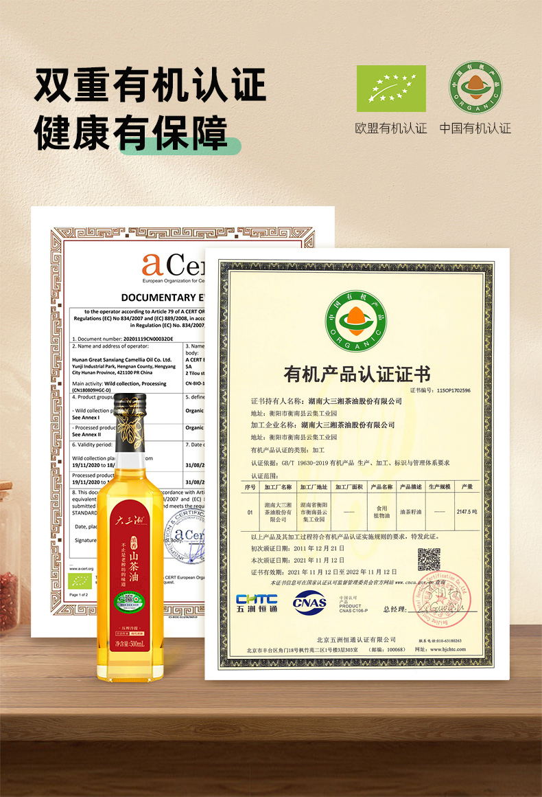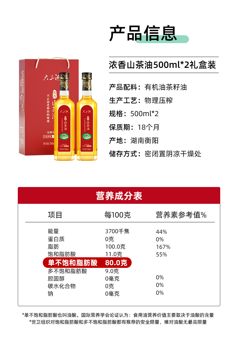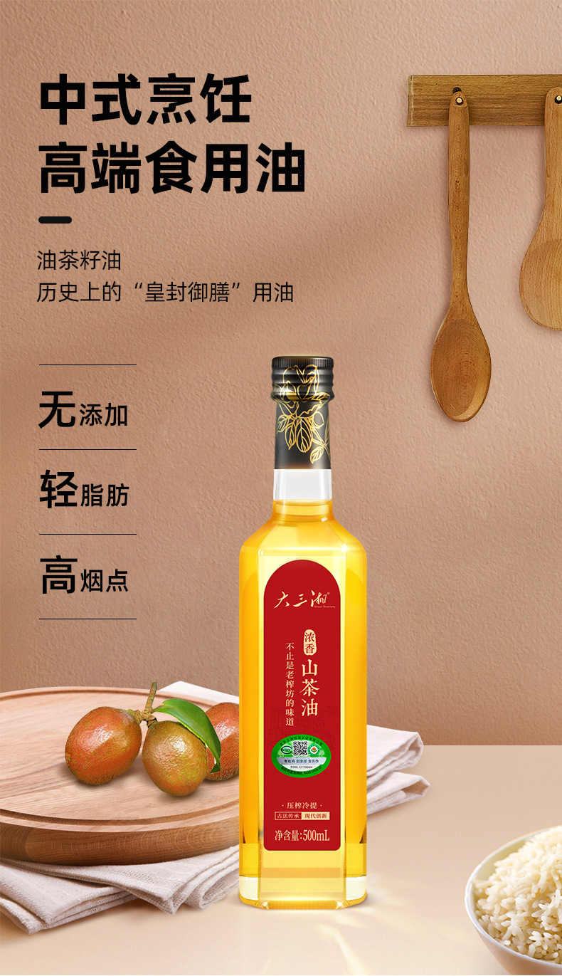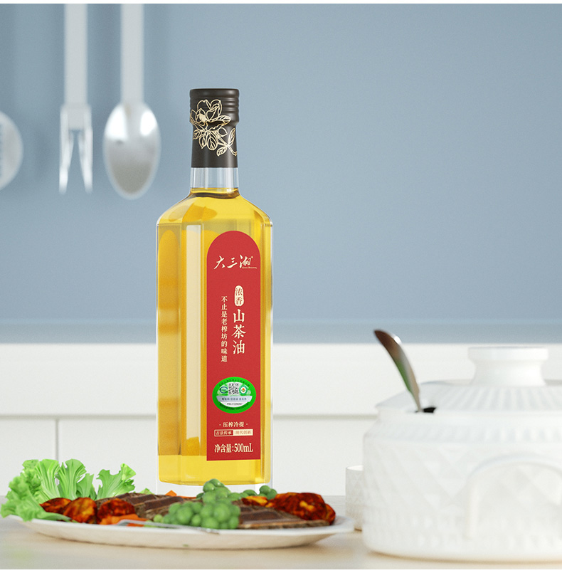 大三湘(Great Sanxiang)湖南浓香纯正山茶油有机食用油压榨茶籽油500ml*2送礼礼盒