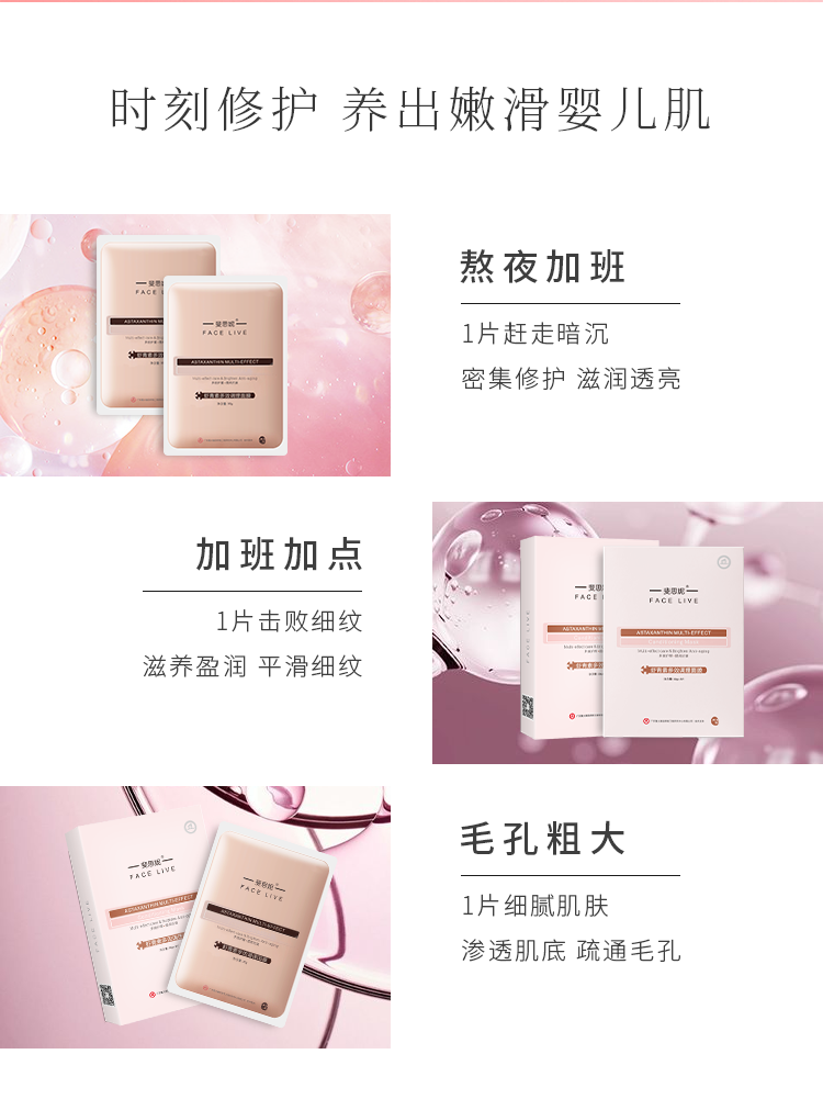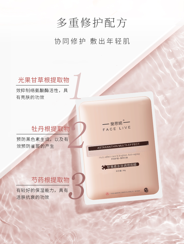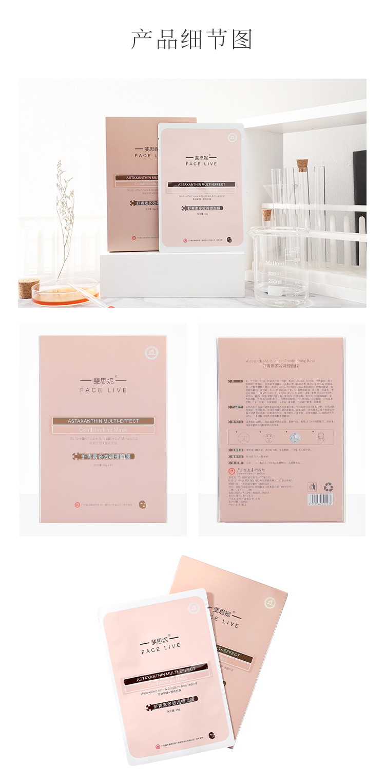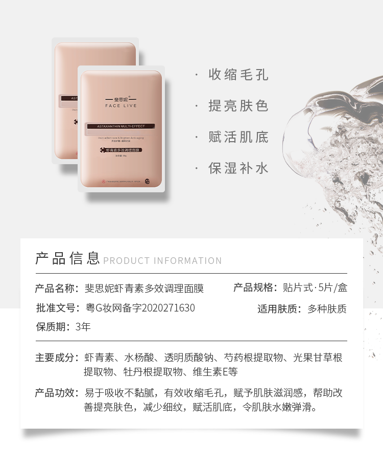 Facelive/斐思妮红膜 亮肤晒后修护舒缓虾青素补水保湿舒缓贴片 裴思妮菲思妮面膜5片装