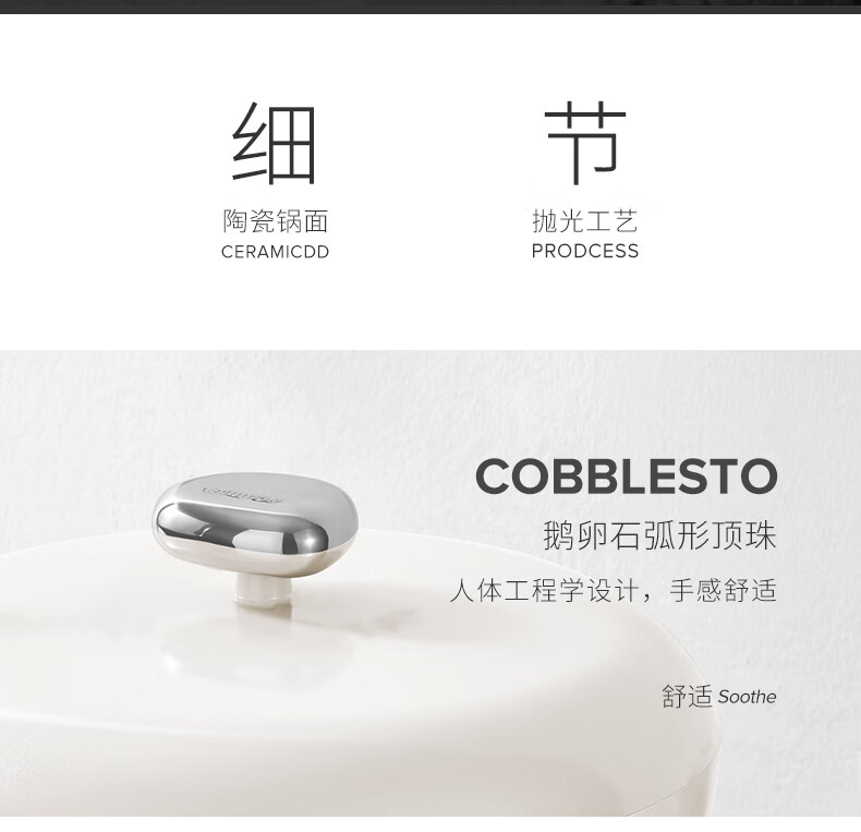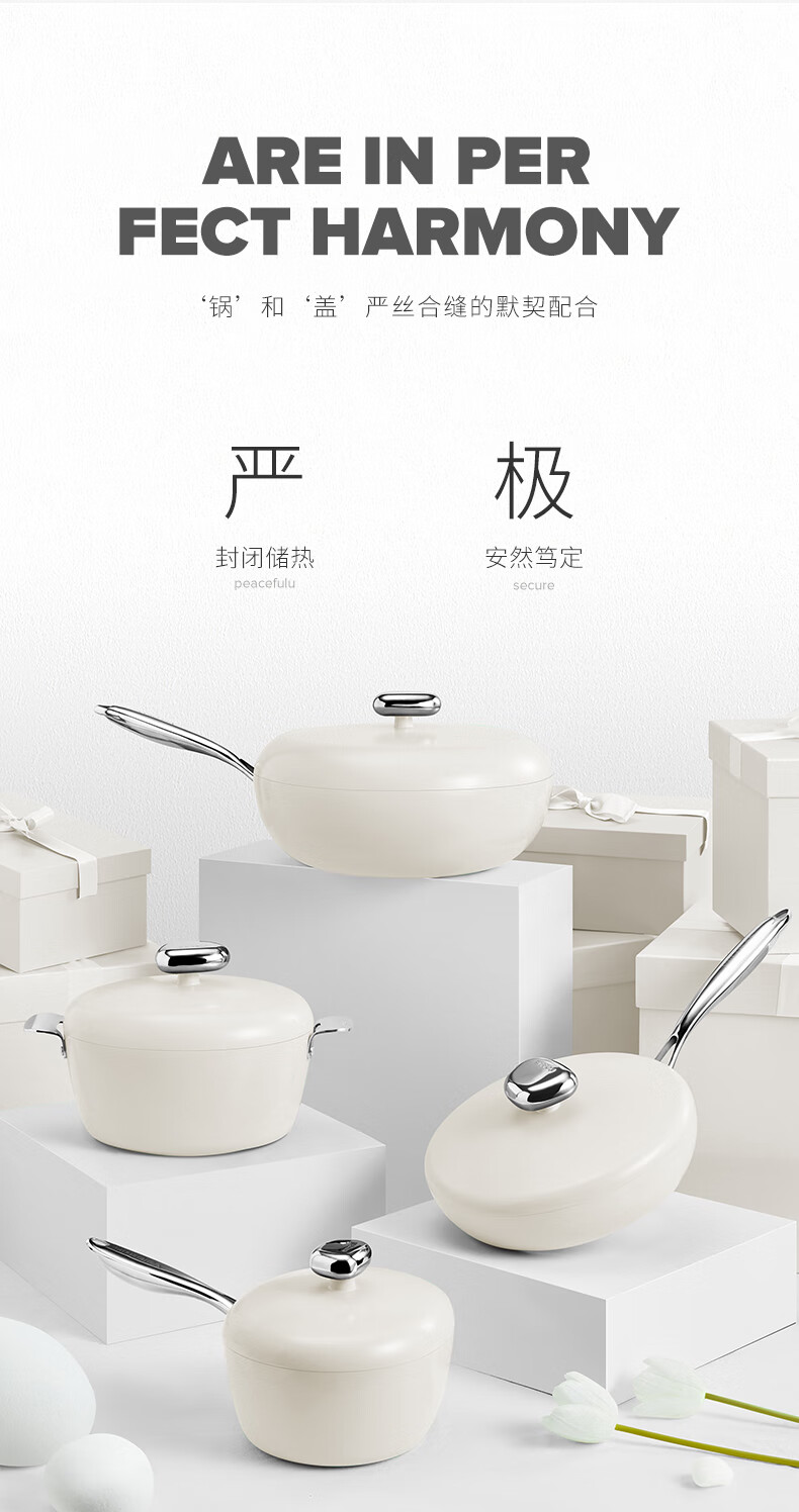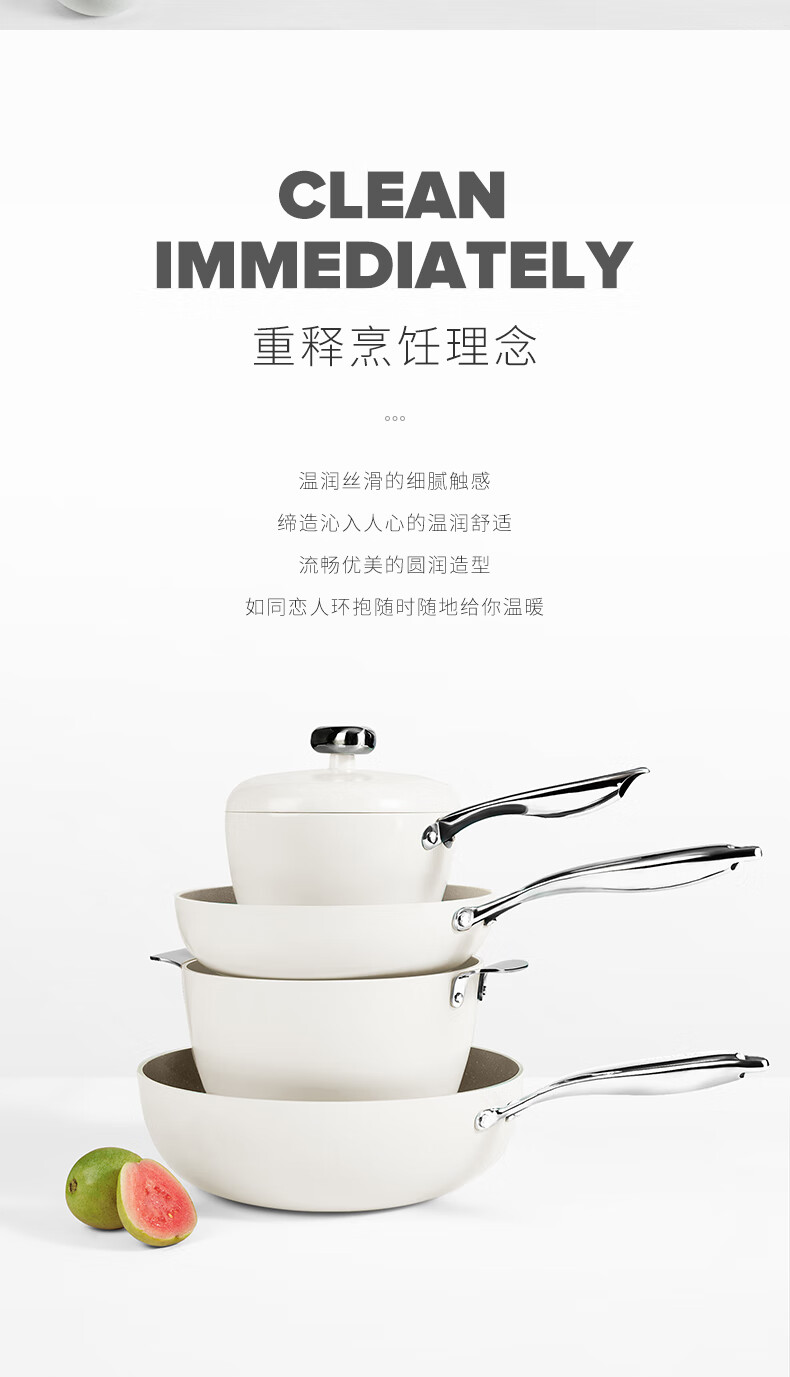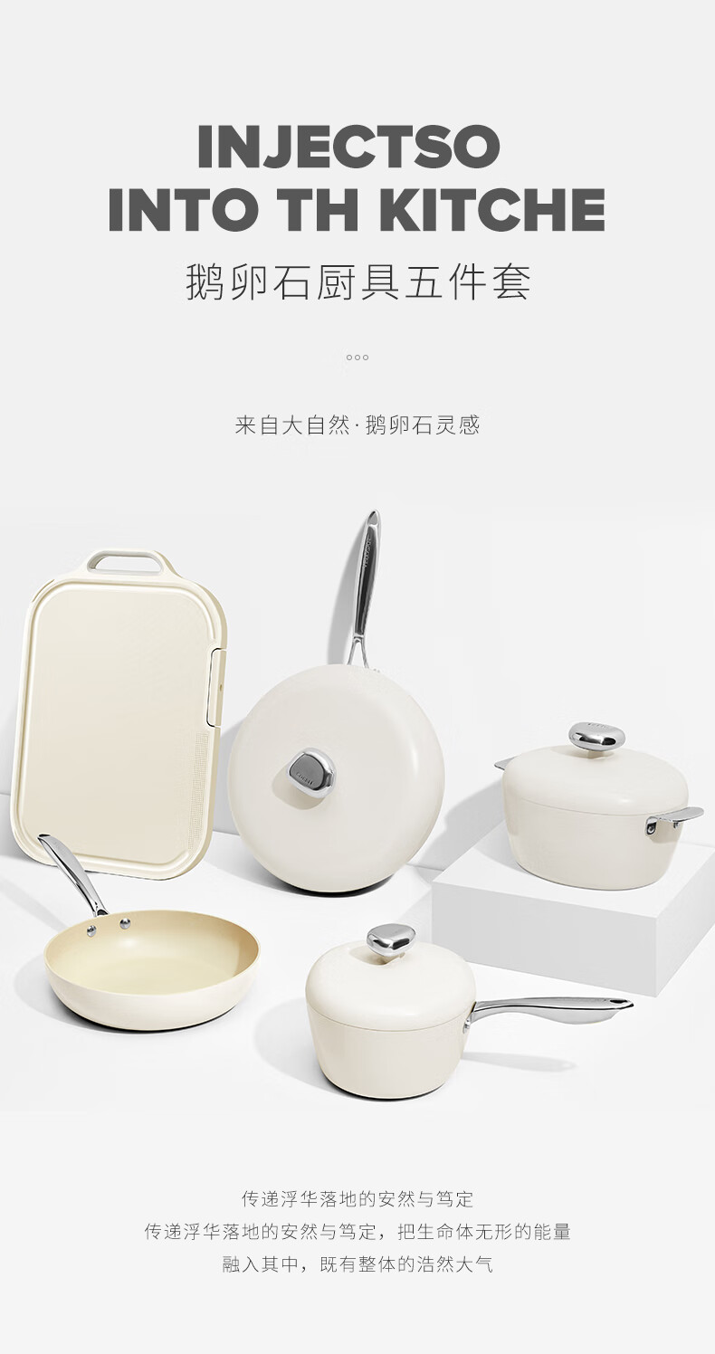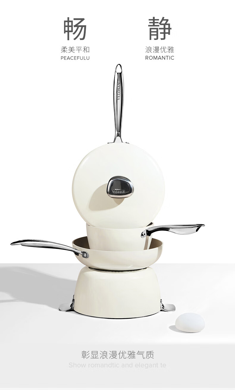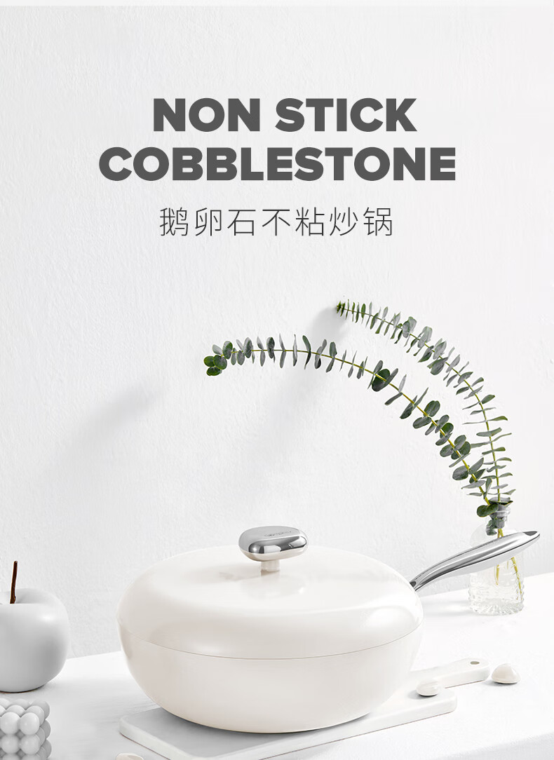 温仑山 鹅卵石白色炒锅煎锅套装VE035