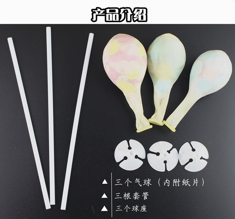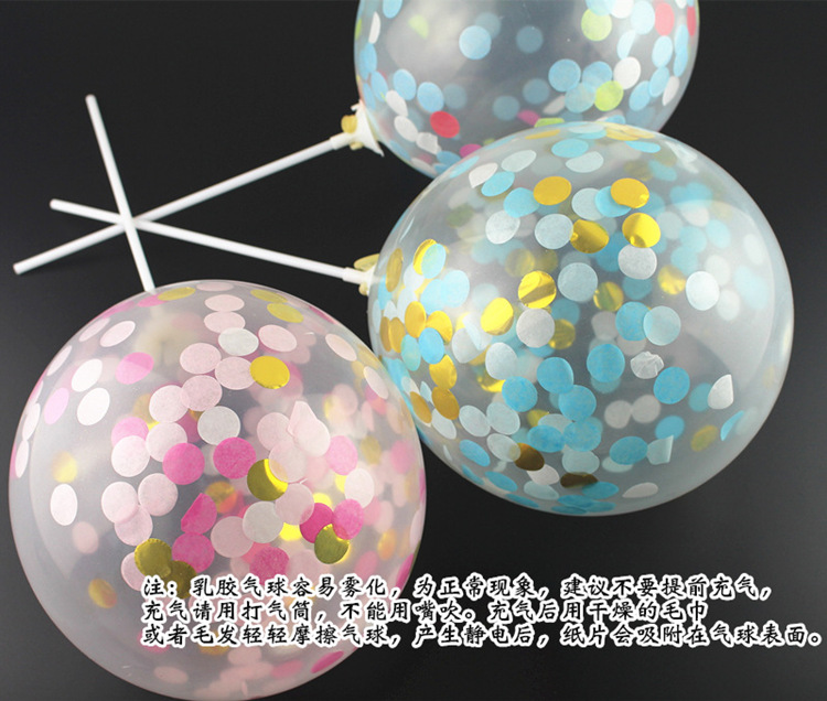 注:乳胶气球容易雾化,为正常现象,建议不要提前充气,充气请用打气筒,不能用嘴吹。充气后用干燥的毛巾或者毛发轻轻摩擦气球,产生静电后,纸片会吸附在气球表面。