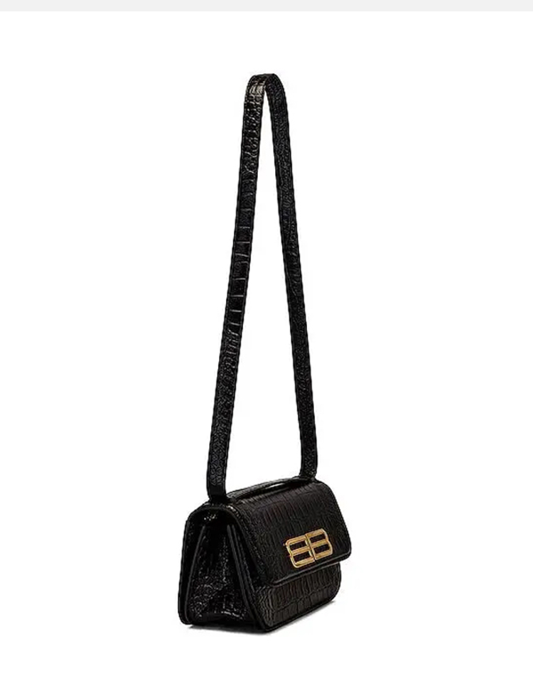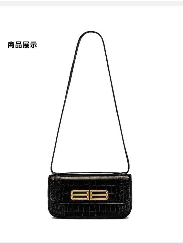 BALENCIAGA 巴黎世家 女士鳄鱼压纹 BB 金属徽标链条单肩包 黑色 674693 23ECM 1000