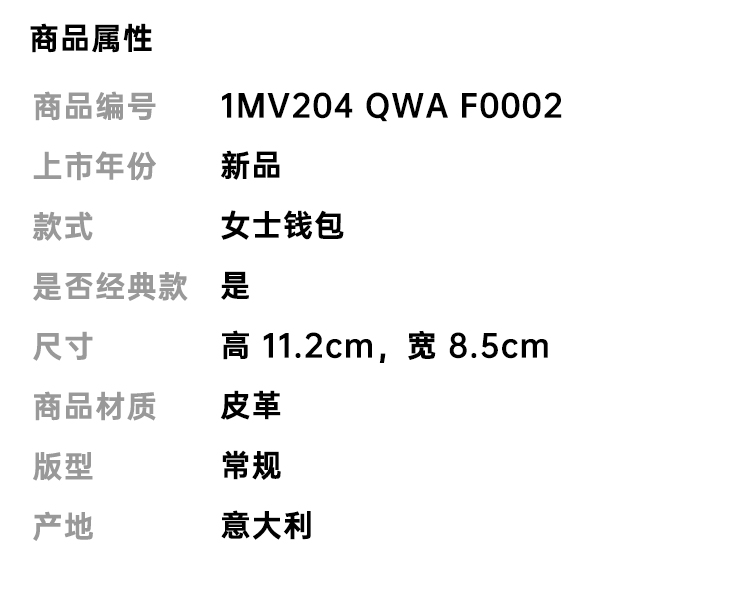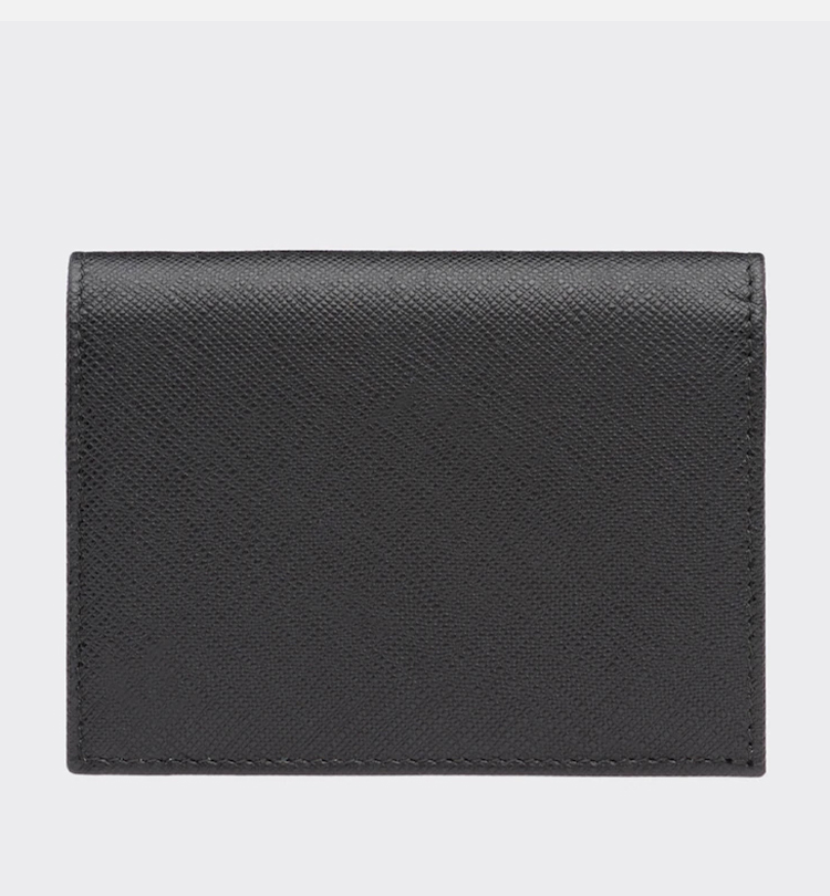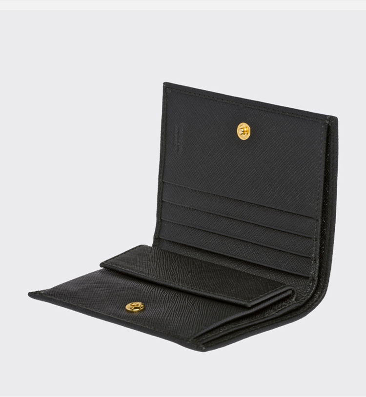 PRADA 普拉达 女士小号 Saffiano 皮革金属刻字徽标钱包 黑色 1MV204 QWA F0002