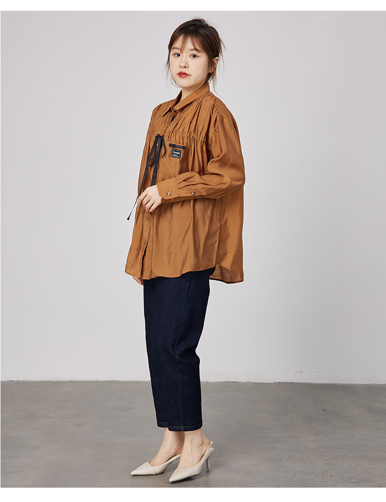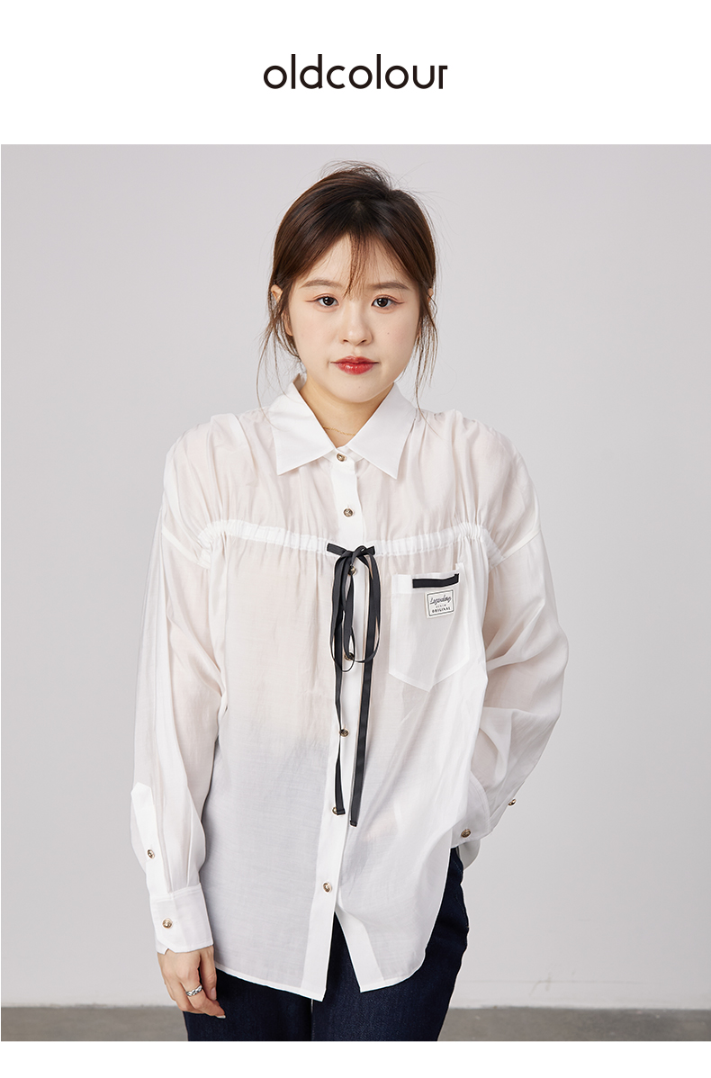 oldcolour2021秋商场同款褶皱甜美别致设计感小众衬衫女N32013206