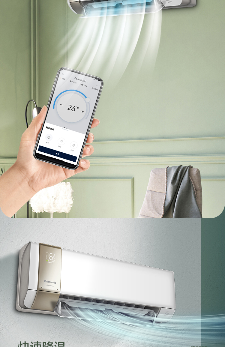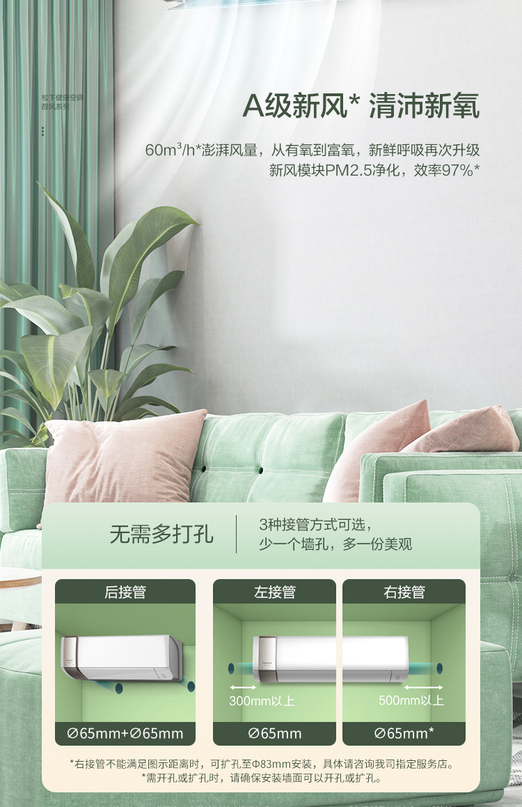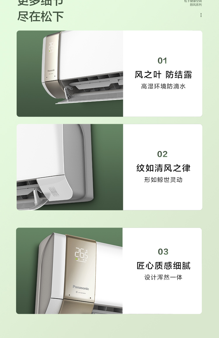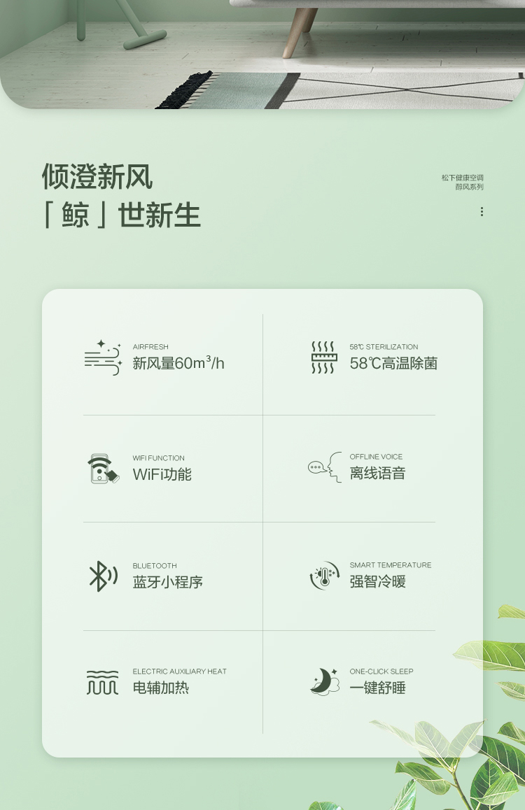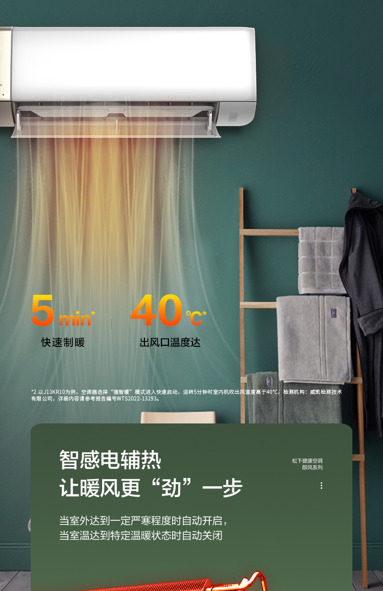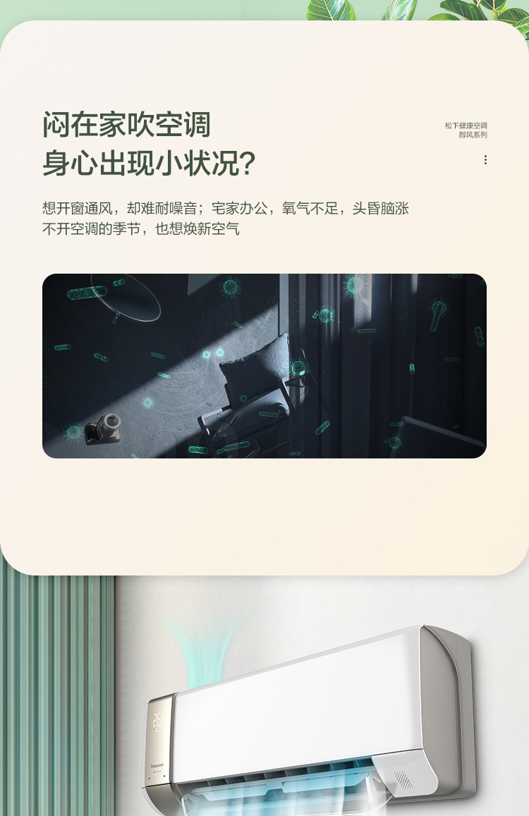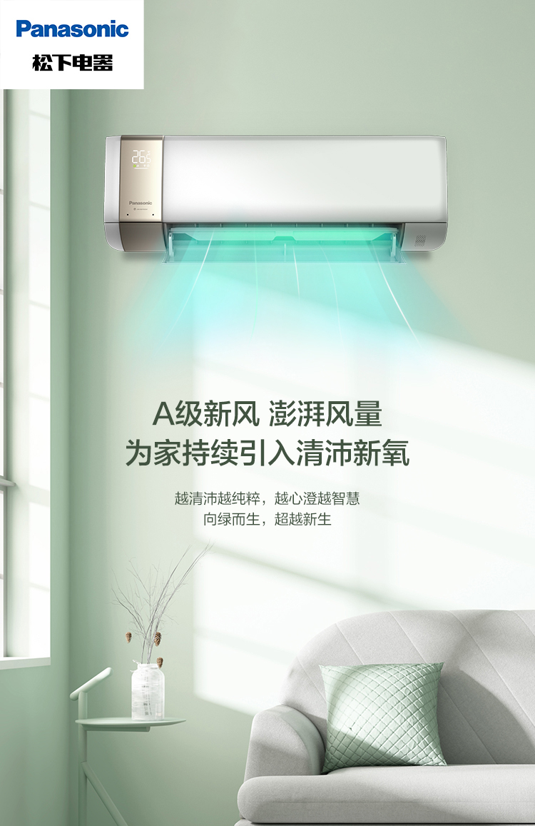 松下新风空调新一级变频冷暖离线语音除菌自清洁壁挂式挂机 杨超越同款醇风系列 【香槟金大1匹】语音智控J9AKR10