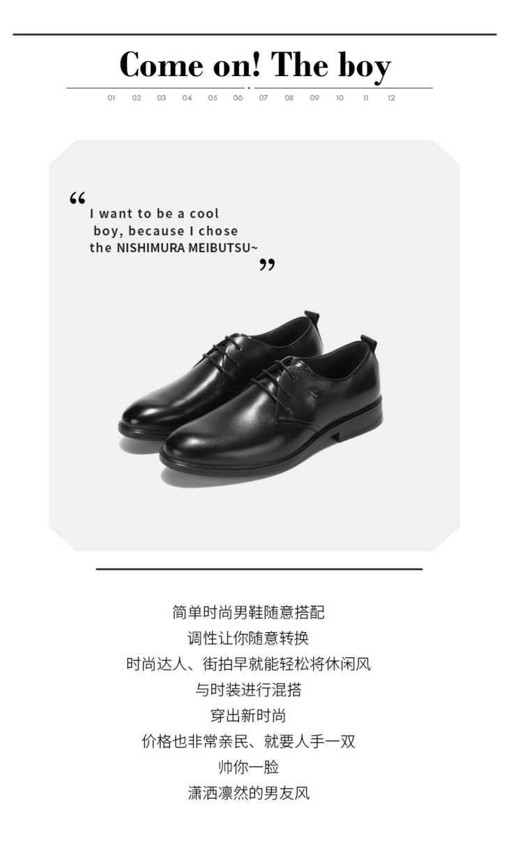西村名物牛皮英伦风平底鞋男鞋X181V11071