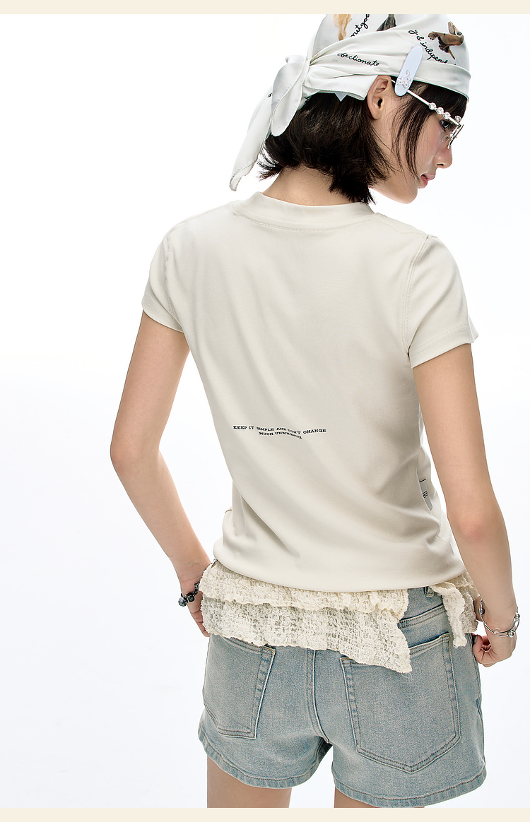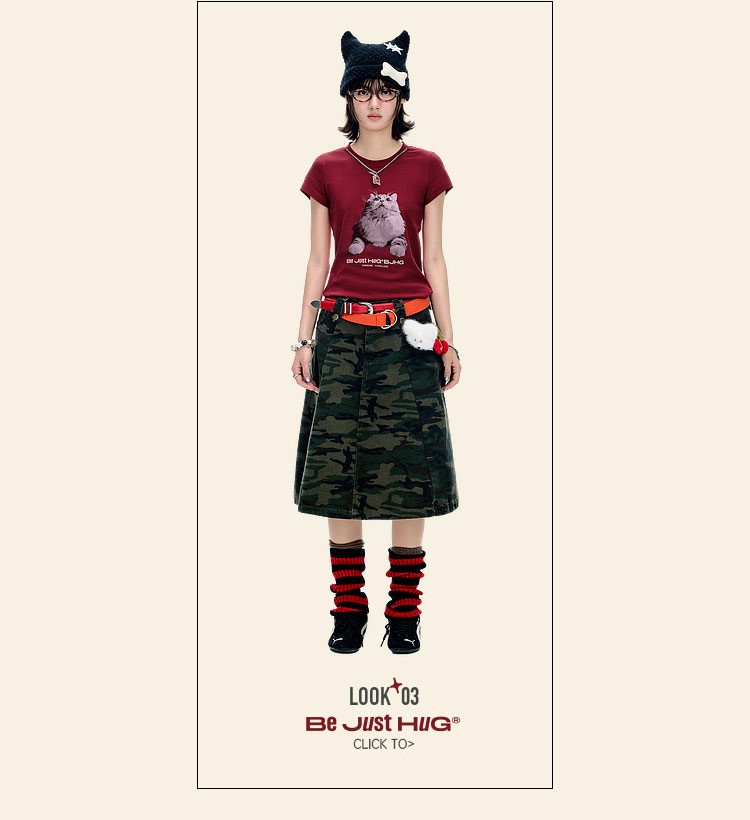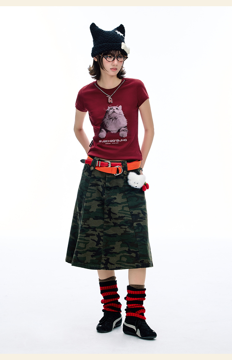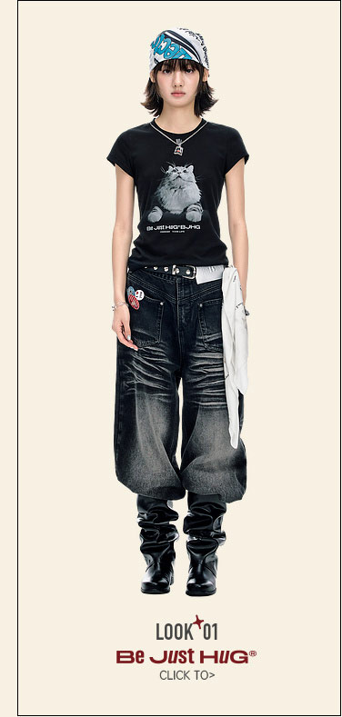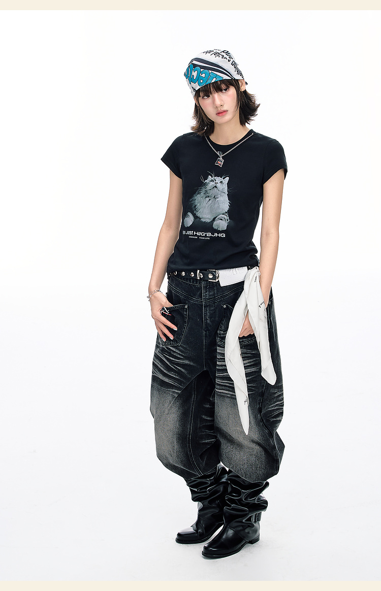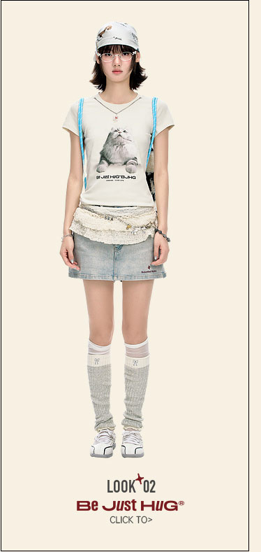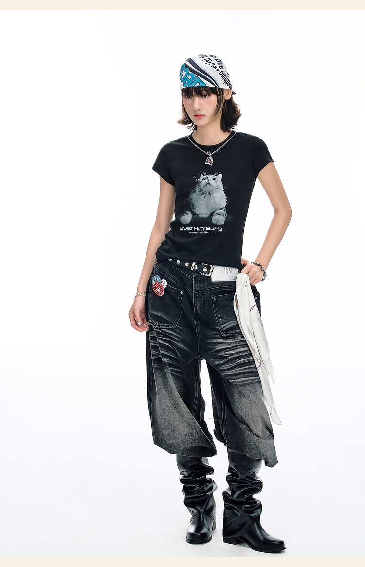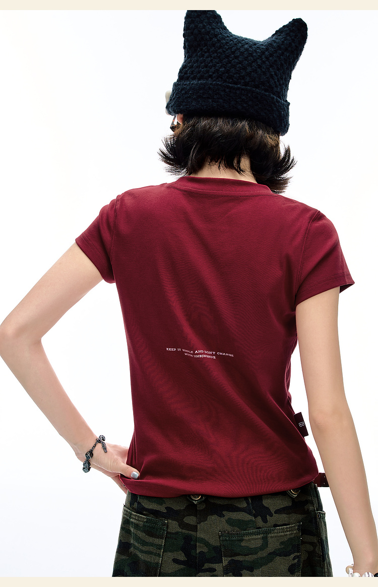BJHG不计后果小猫抓鱼T恤短袖女款夏季微弹修身半袖凉感正肩T恤女