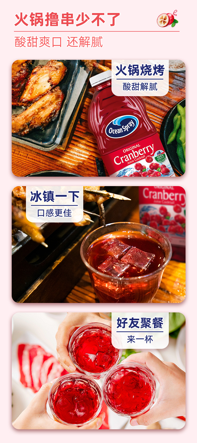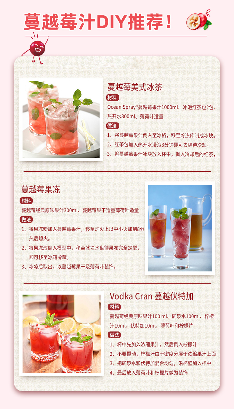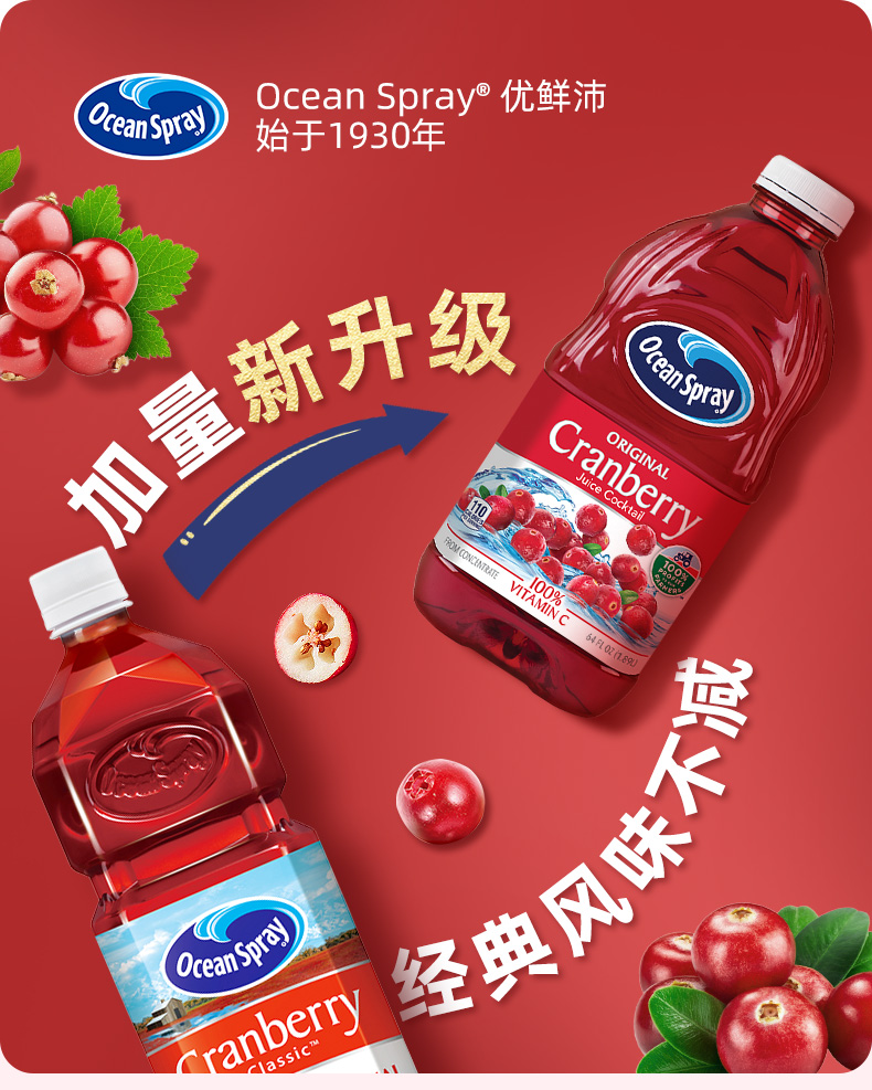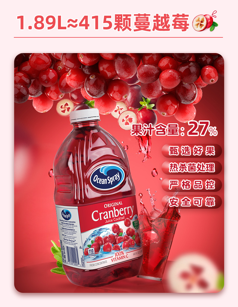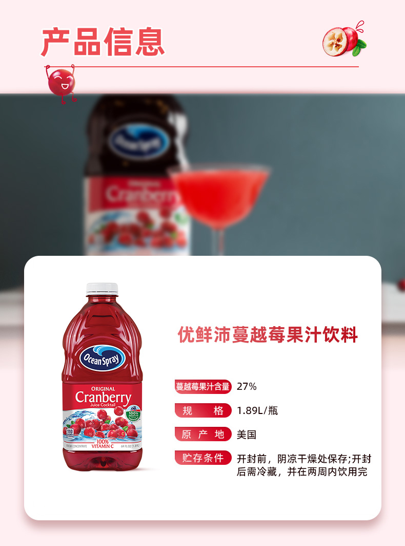 OceanSpray 优鲜沛 经典 蔓越莓 果汁 饮料 1.89L 可调鸡尾酒 节日聚会