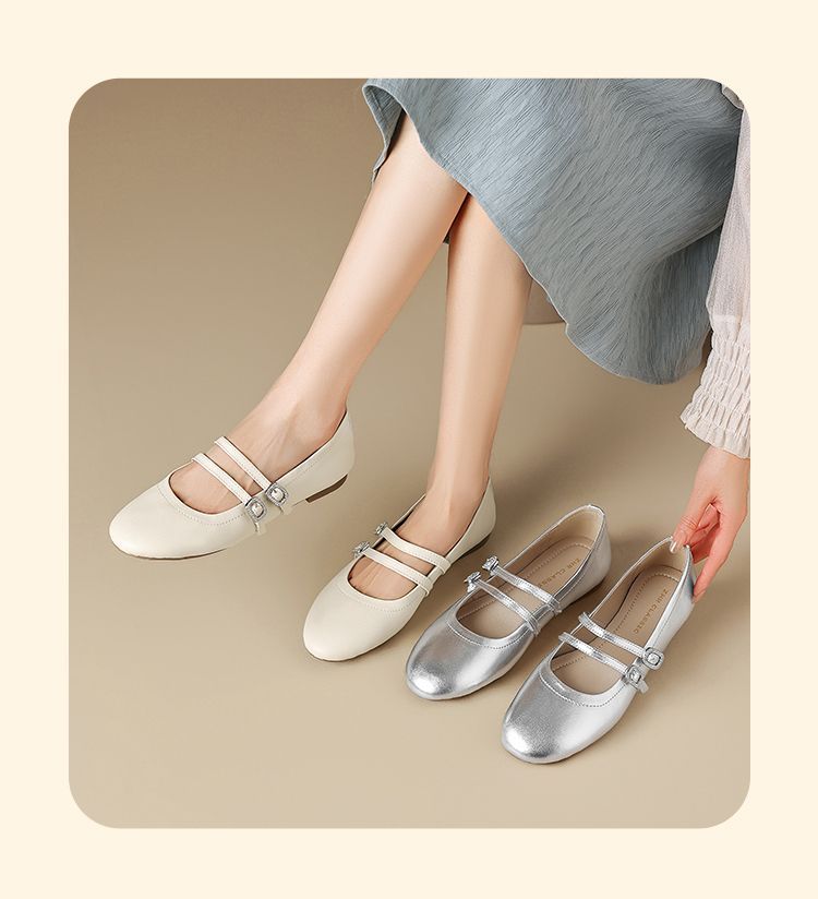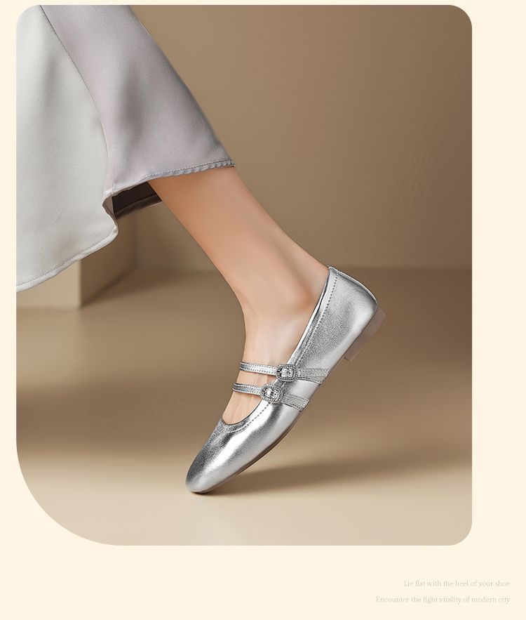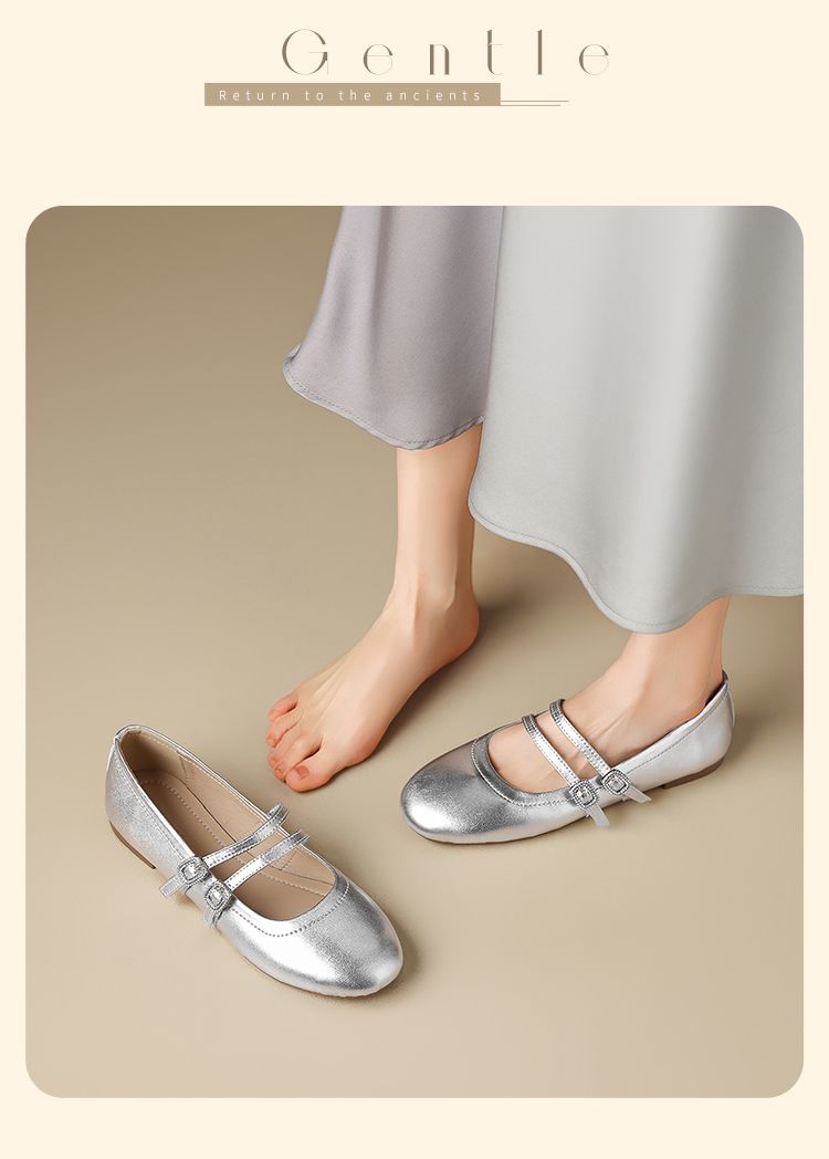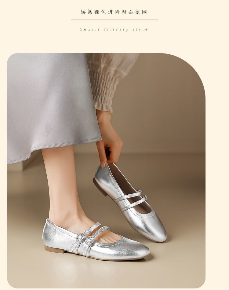 ZHR银色浅口单鞋女2025新款复古法式玛丽珍鞋气质平底ins单鞋耐磨