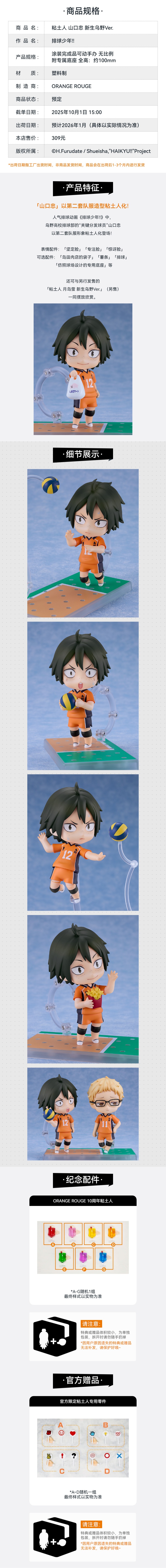 【GSC预售定金】粘土人 山口忠 新生乌野Ver. 排球少年!!