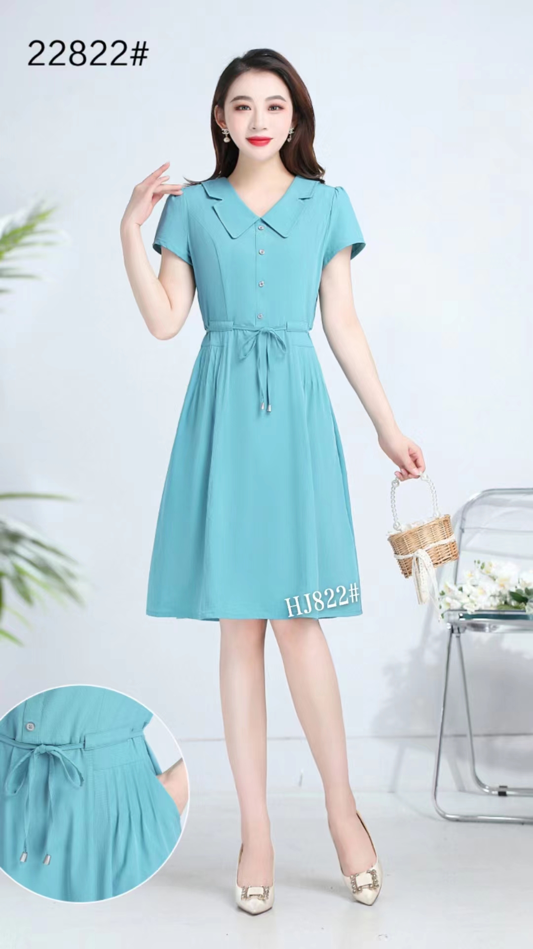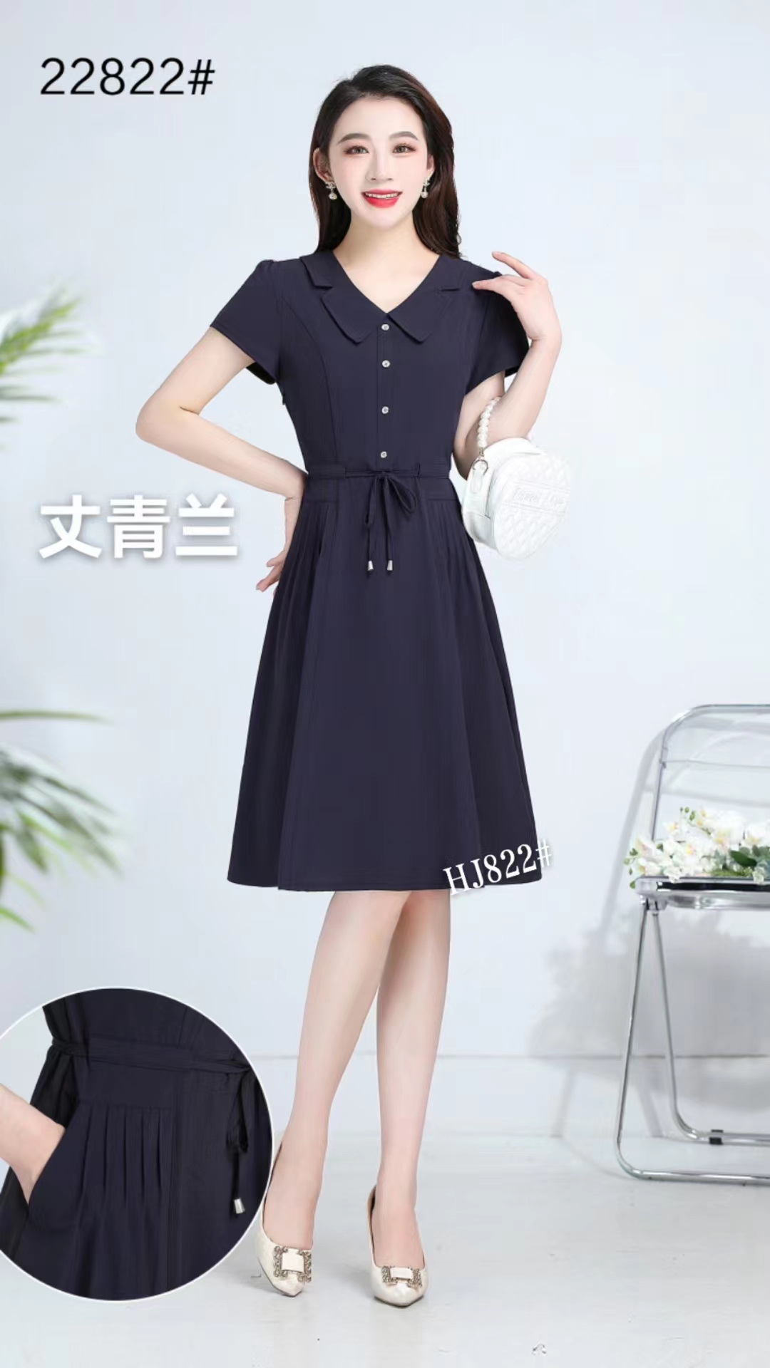 黄金连衣裙今年的大爆款,穿着时尚减龄,简洁大方的翻领设计,彰显女人的高雅气质,尺码2✘到5✘从100斤穿到150斤颜色胡兰色和藏青色