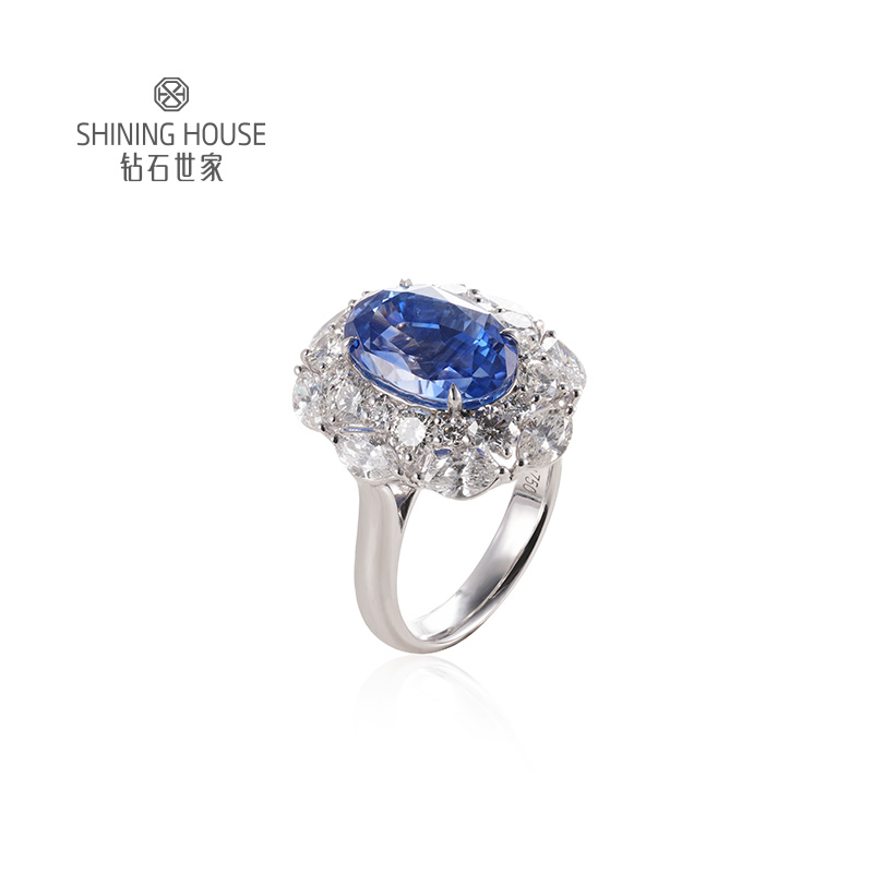 【蓝宝石戒指】钻石世家 18K金蓝宝石镶钻戒指 高级设计珠宝系列 每一颗宝石都是大自然的宝物 深邃浓郁的幽兰光芒 丝绒静谧的高雅之美