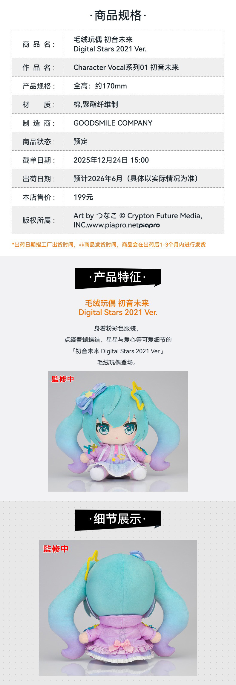 【GSC预售定金】毛绒玩偶 初音未来 Digital Stars 2021 Ver.