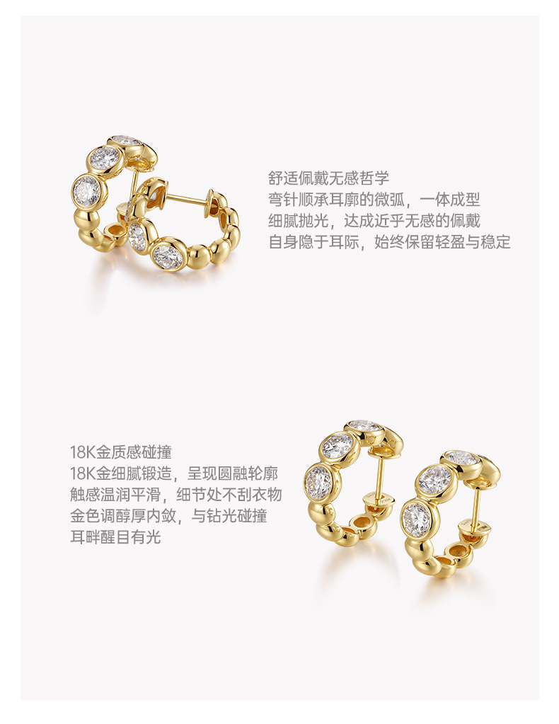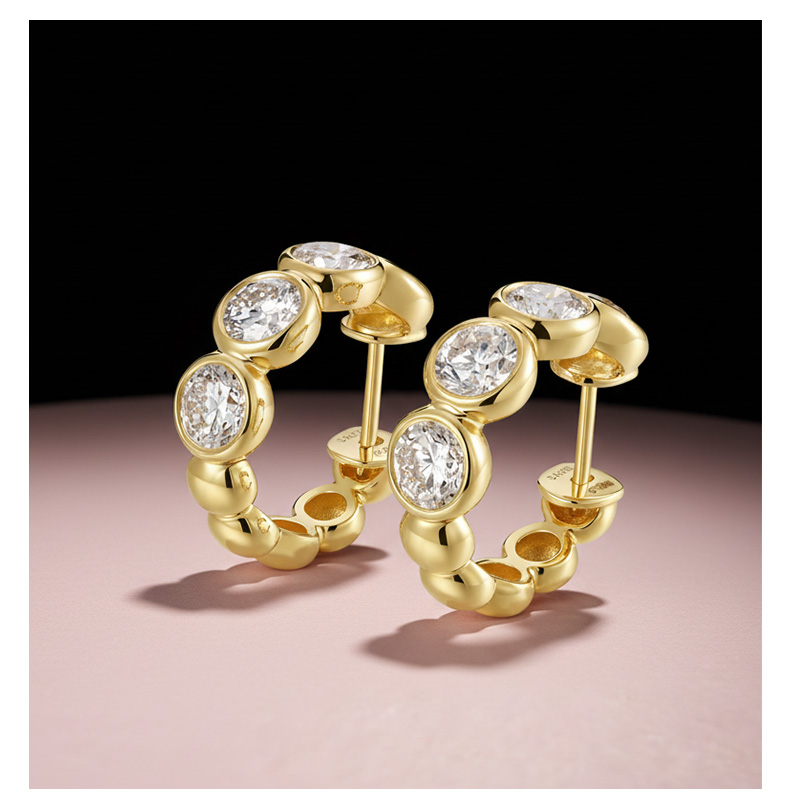 ShiningHouse[培育] 18k金钻石耳饰 圆钻形2克拉钻人工真钻人造钻石K金耳圈豪华钻石排钻耳饰耳环悦己送礼臻选【此商品不支持7天无理由退货退款】预计3日发货