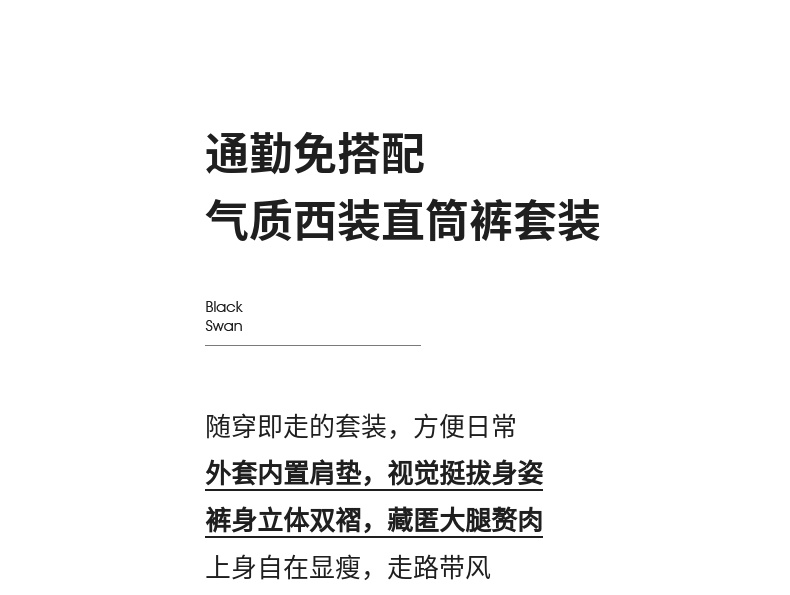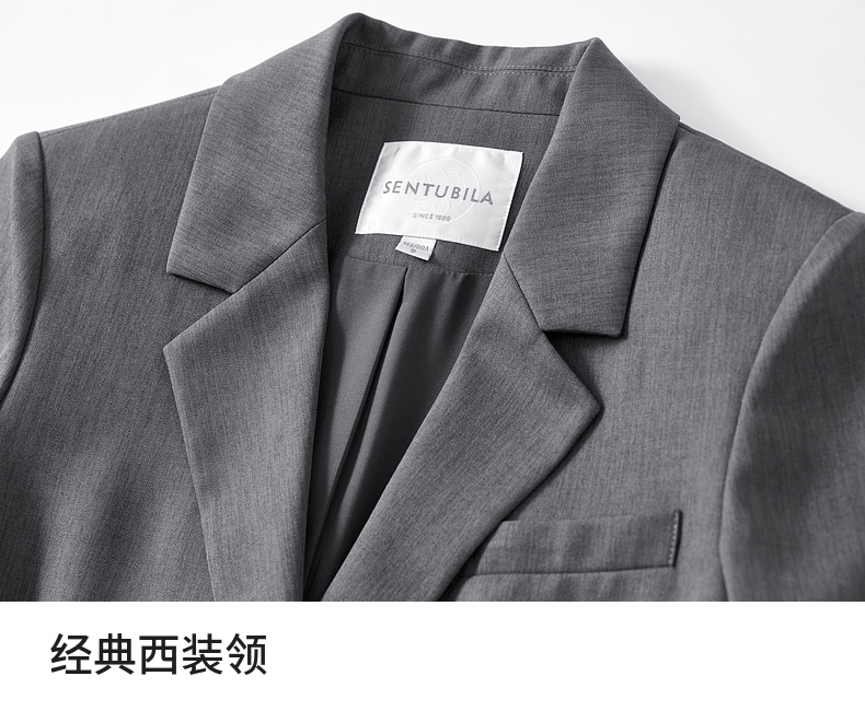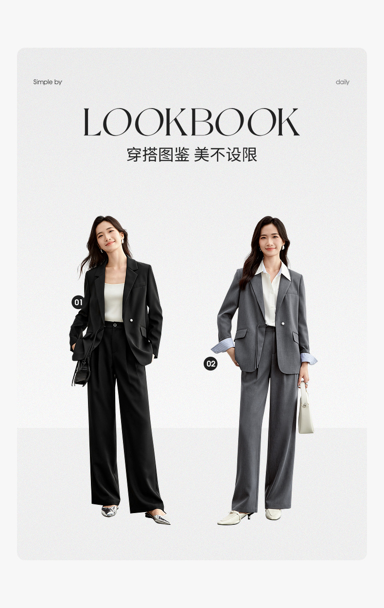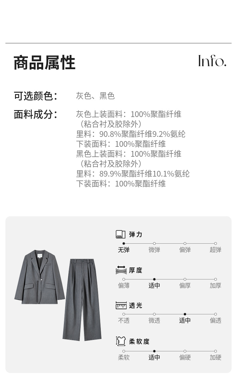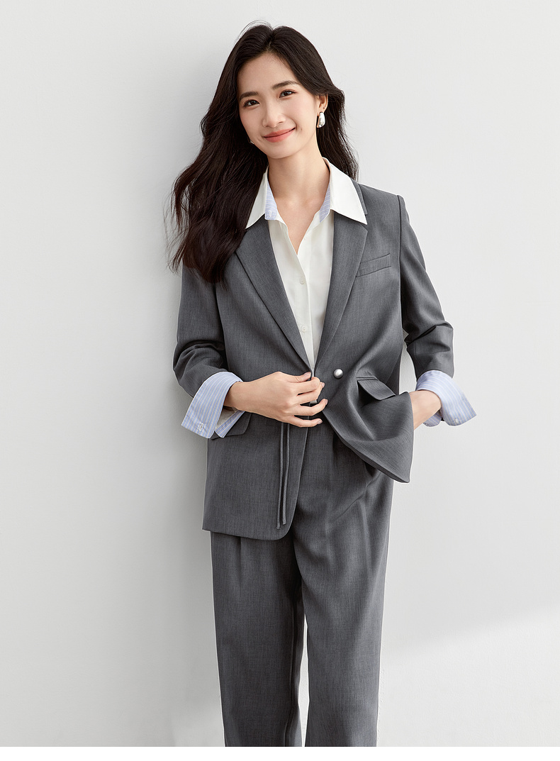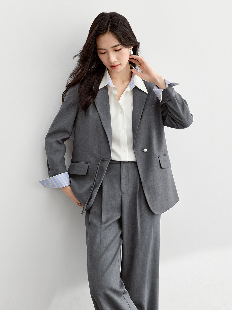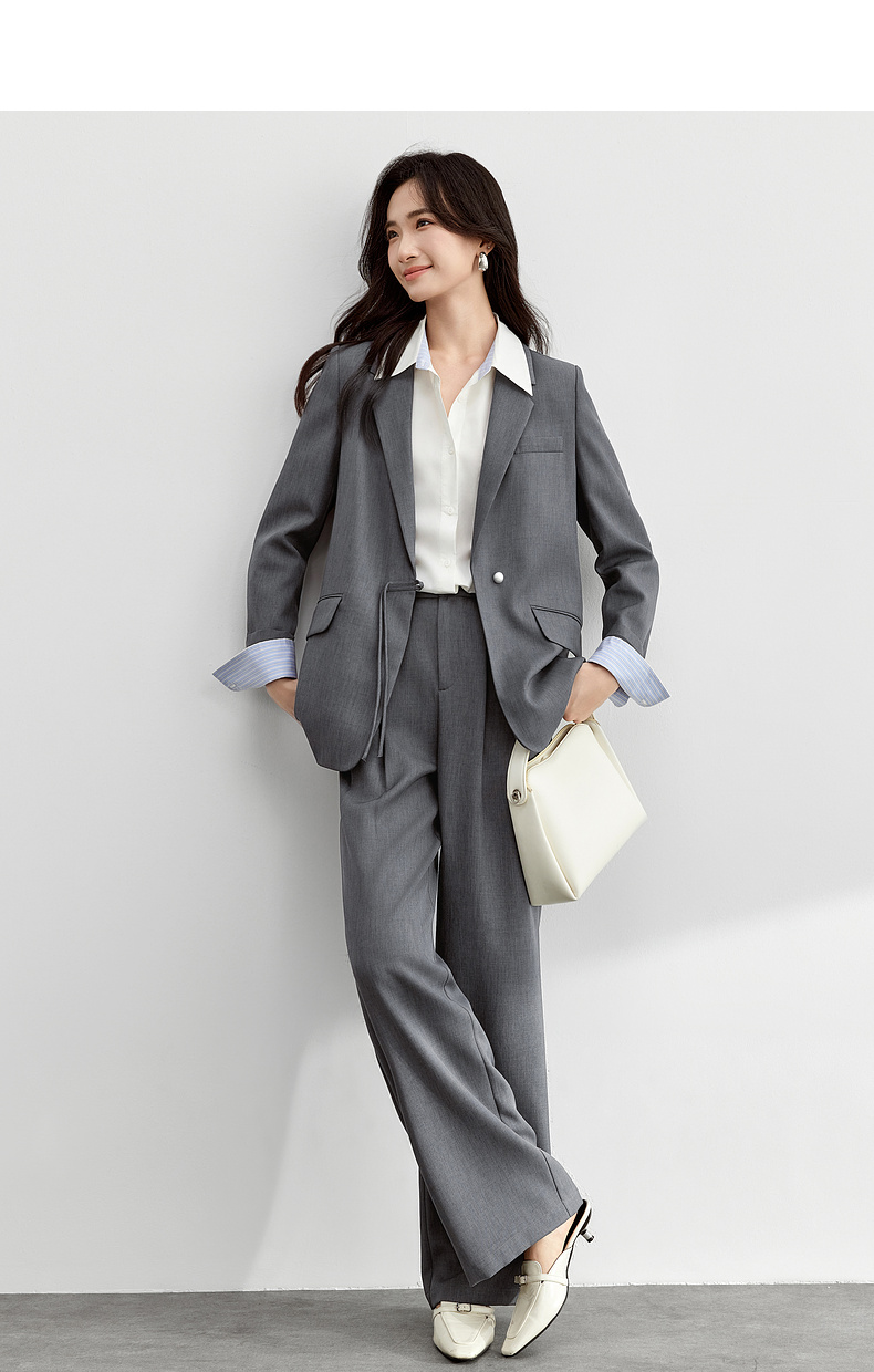 【尚都比拉】通勤国风长尾一粒扣肩垫西装外套立体双褶后腰松紧垂感长裤套装-151Z58367