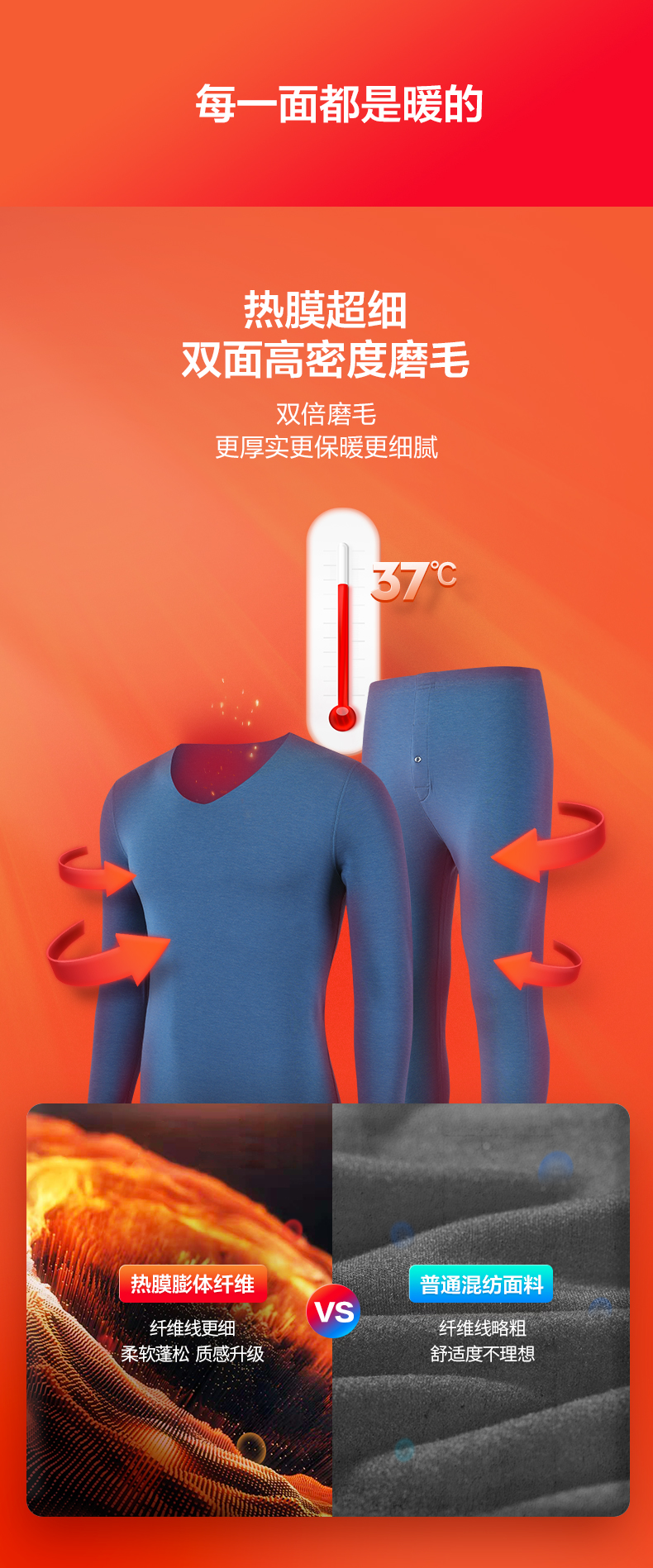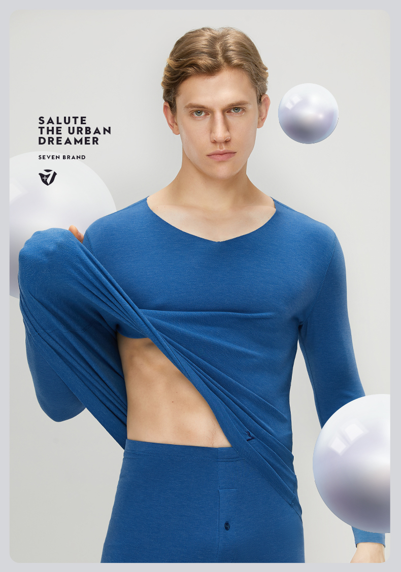 【特价】【套装】柒牌保暖套装男士保暖内衣打底衣高弹舒适圆领热膜磨毛秋衣秋裤 119F72150