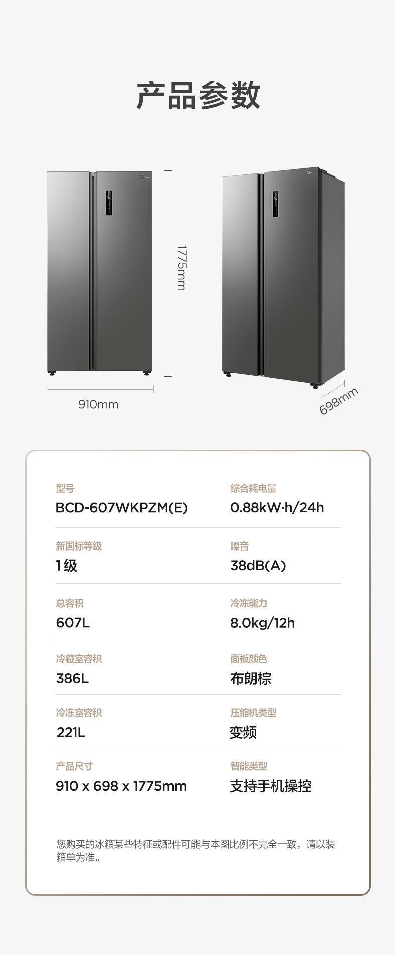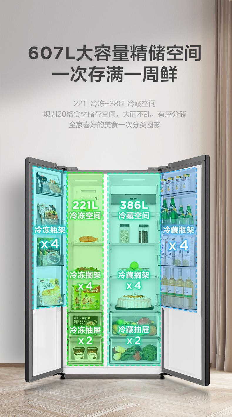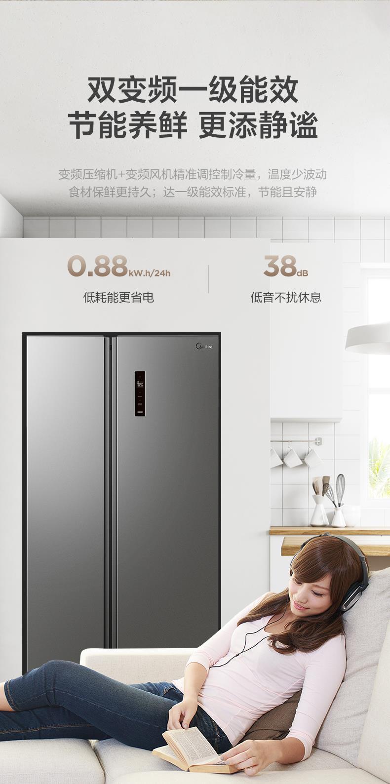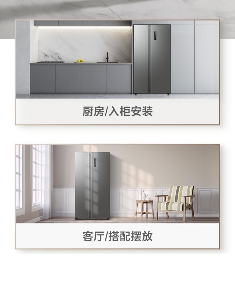 美.的607L对开双开门大容量风冷无霜变频超薄嵌入式家用电冰箱