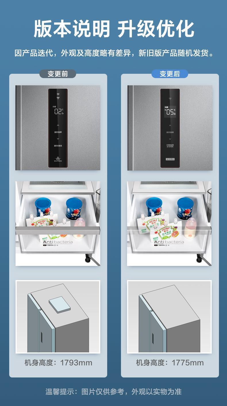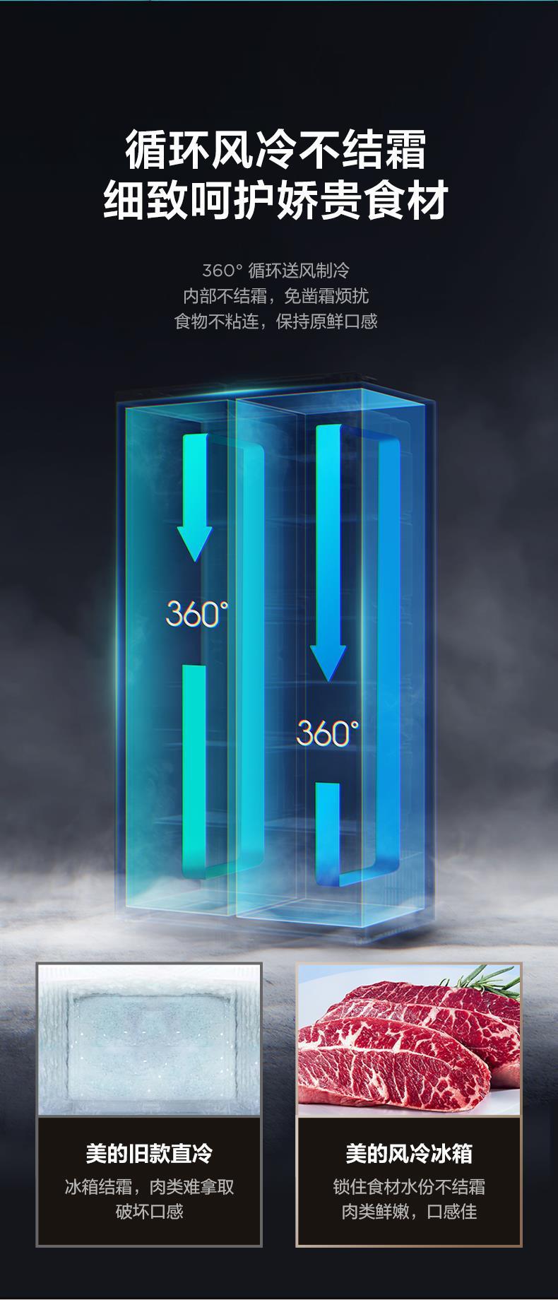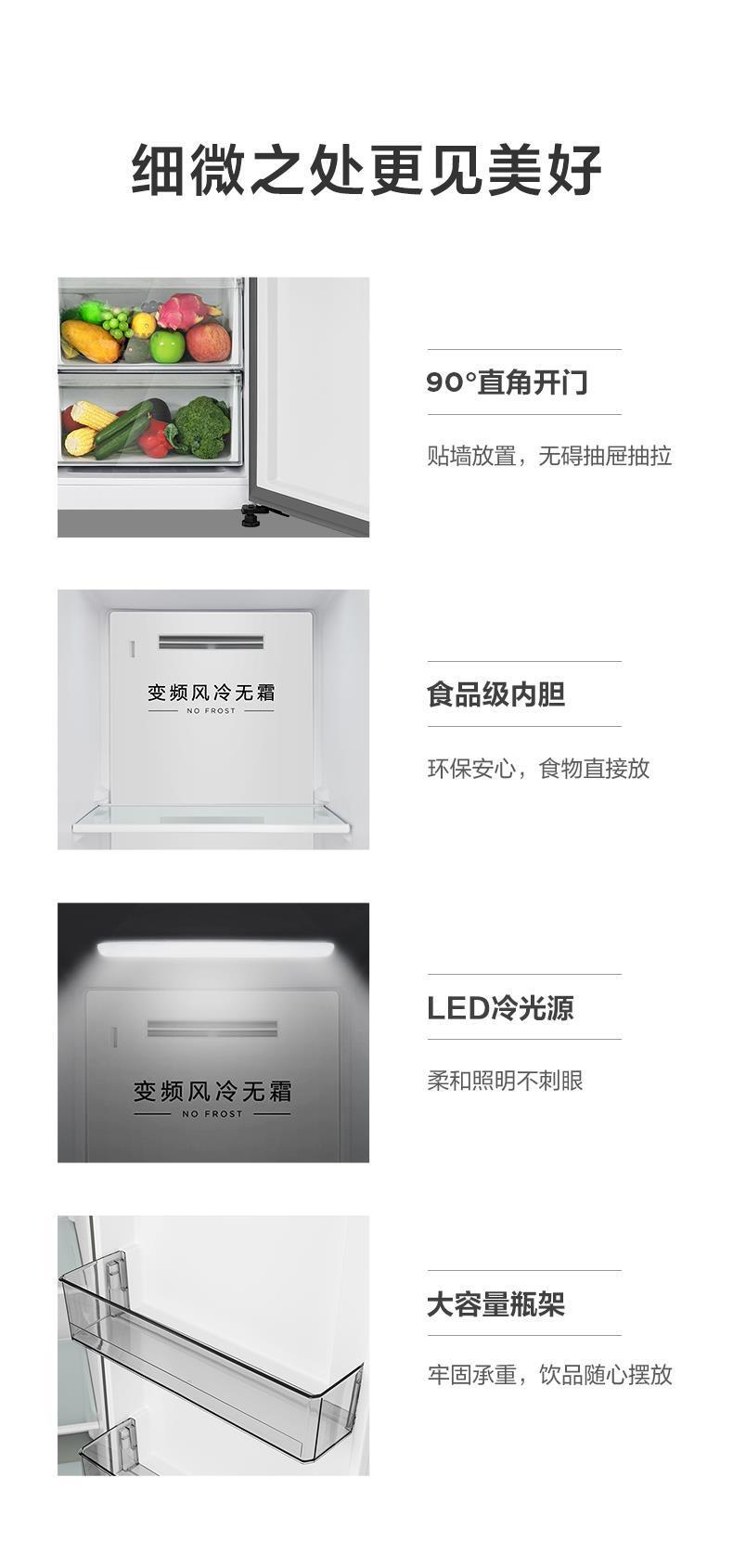美.的607L对开双开门大容量风冷无霜变频超薄嵌入式家用电冰箱