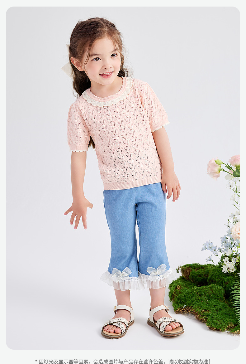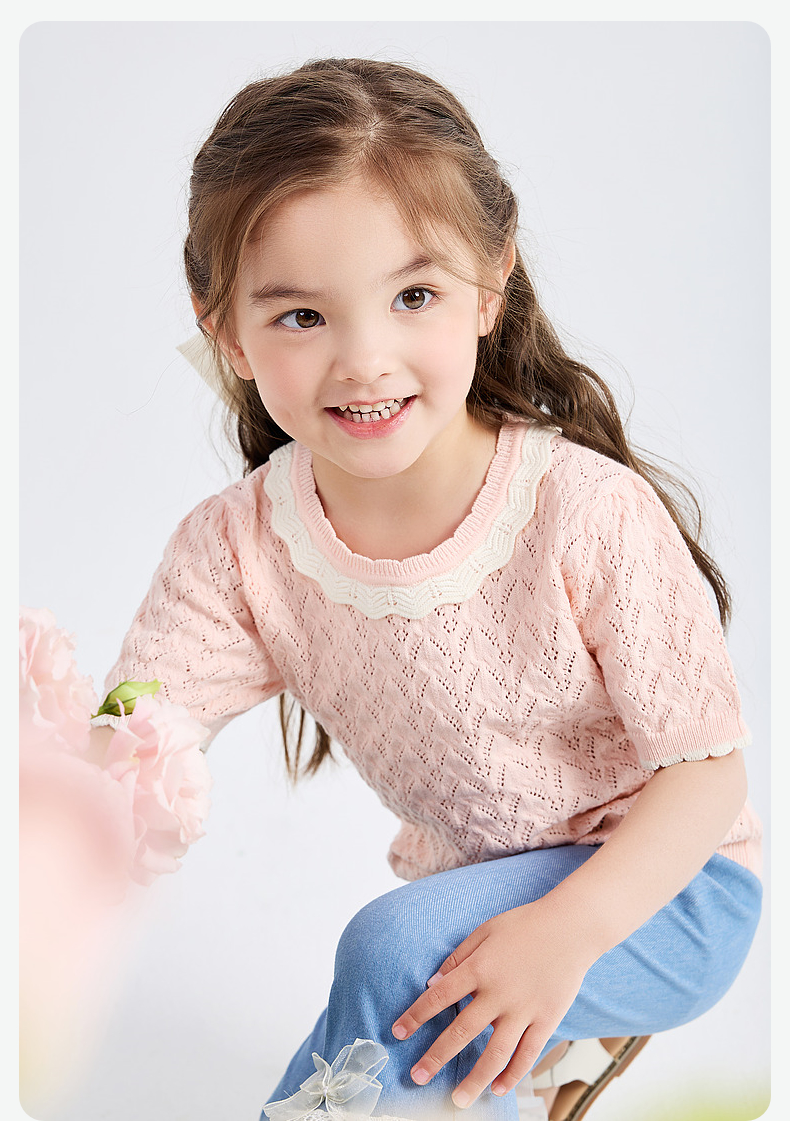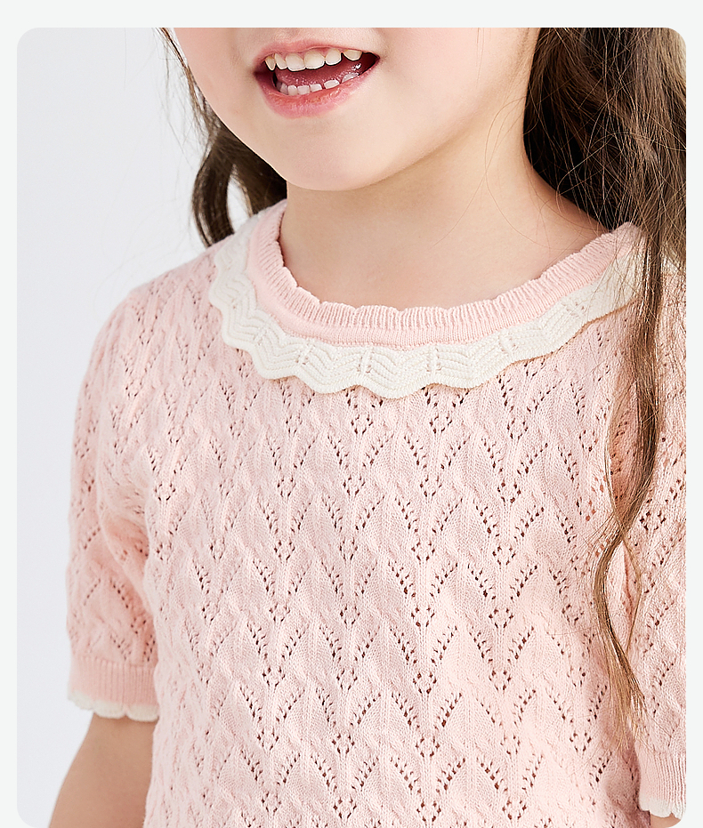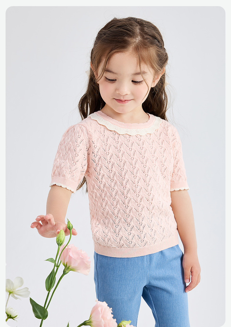 笛莎Deesha 童装2024夏季新款时尚镂空毛织T恤