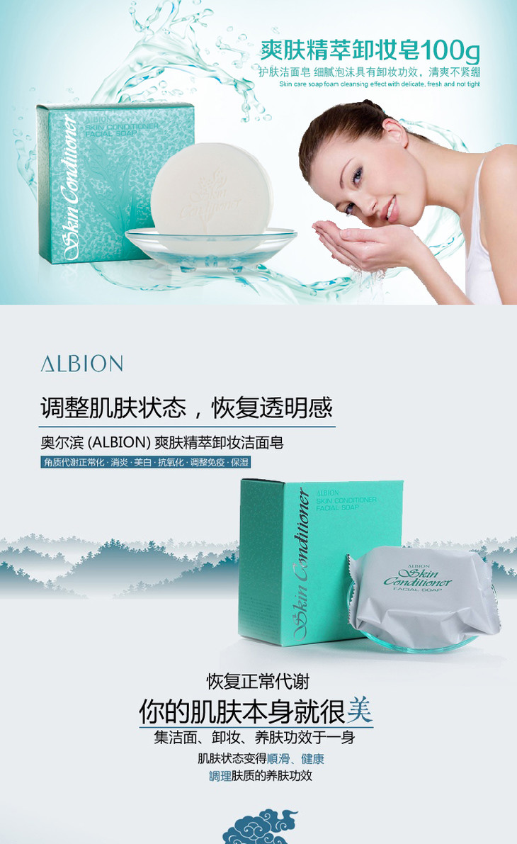 【一般贸易】【专柜版】奥尔滨爽肤精萃卸妆皂 健康皂 100g