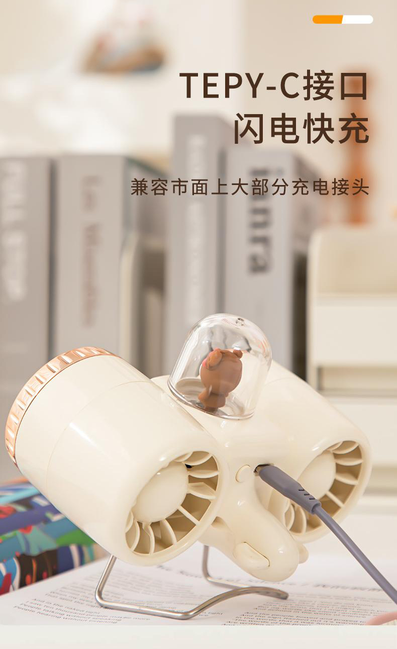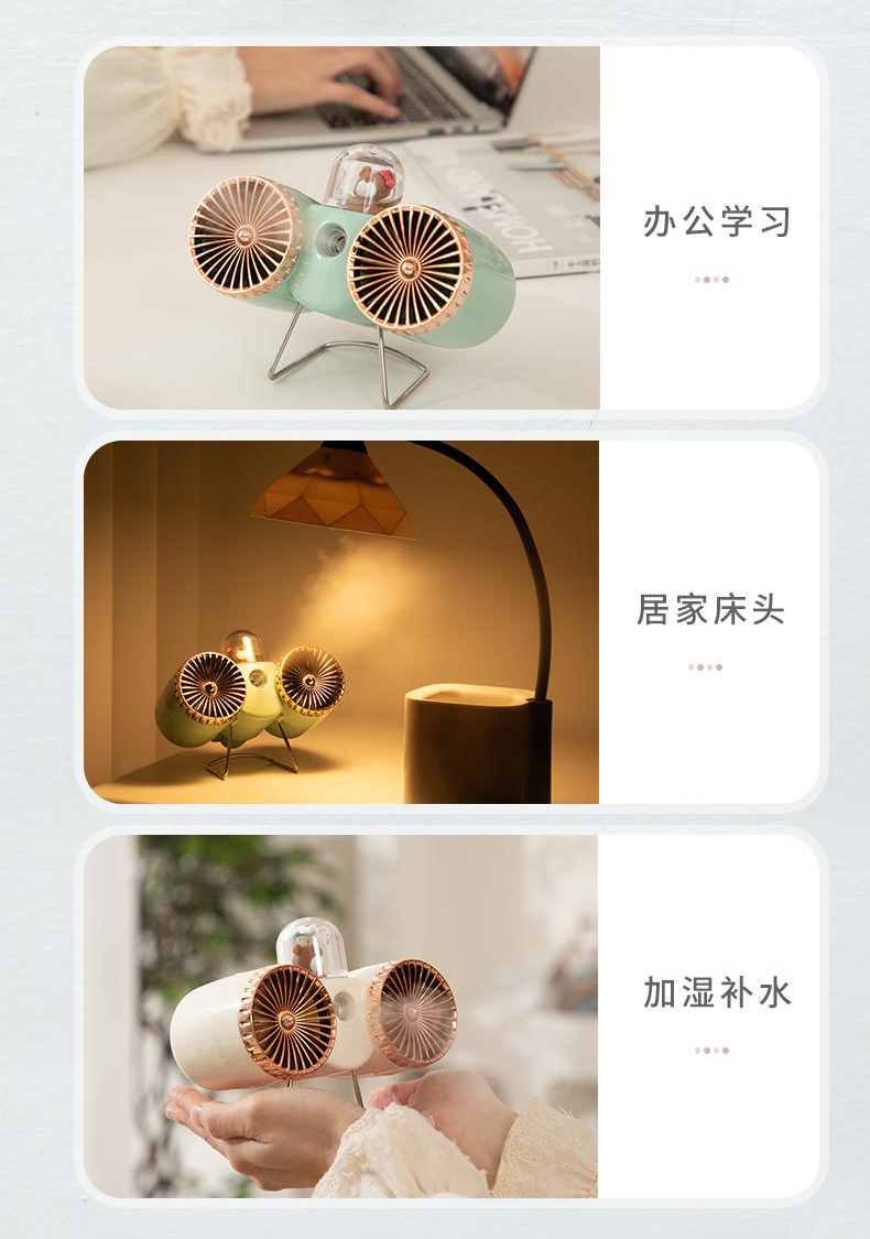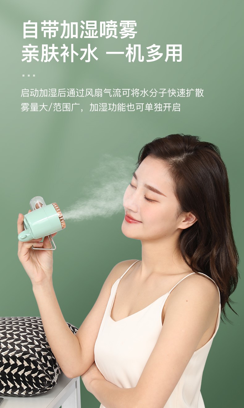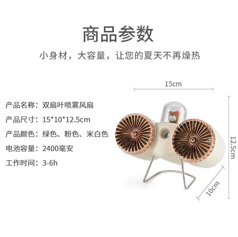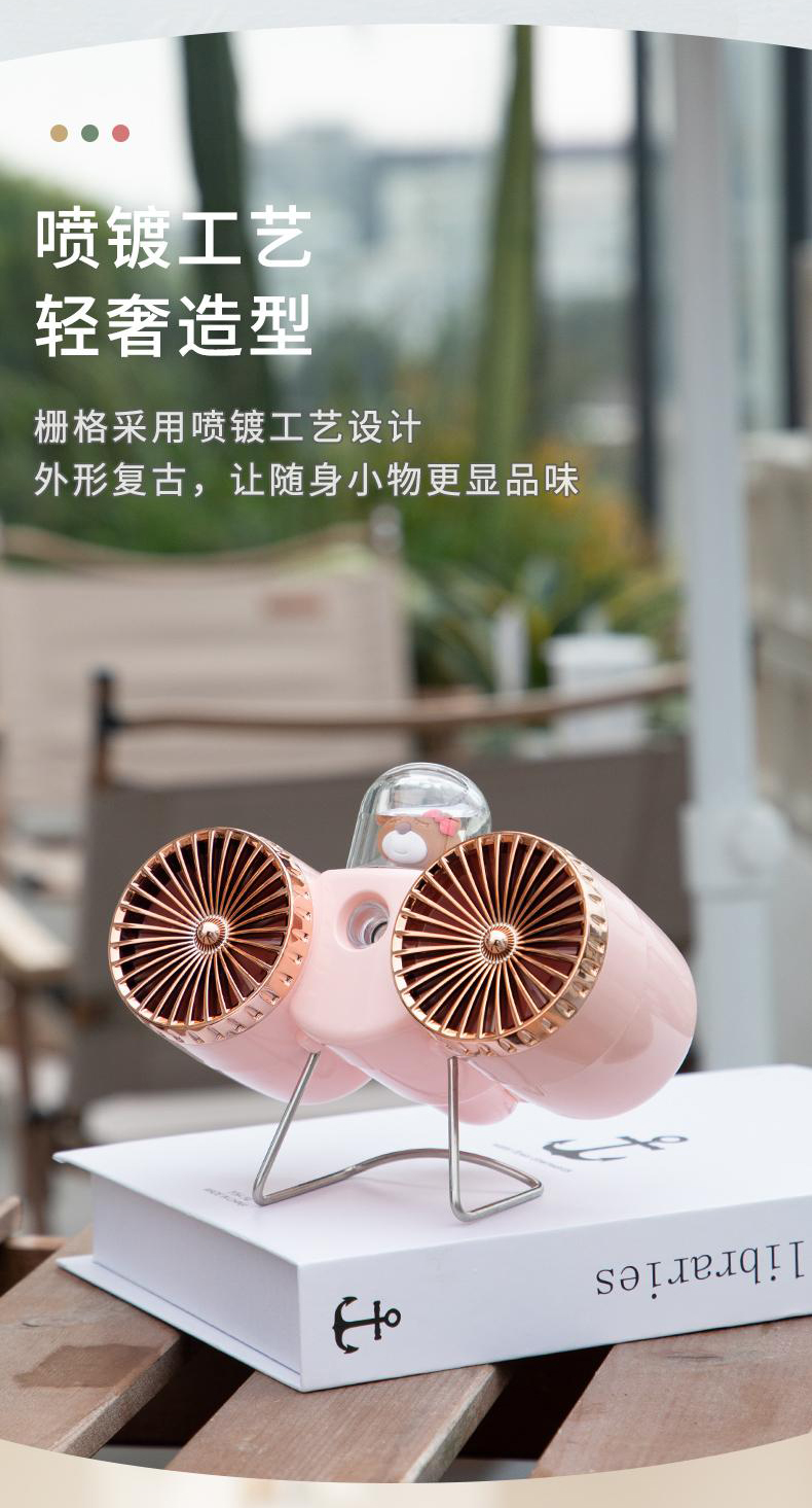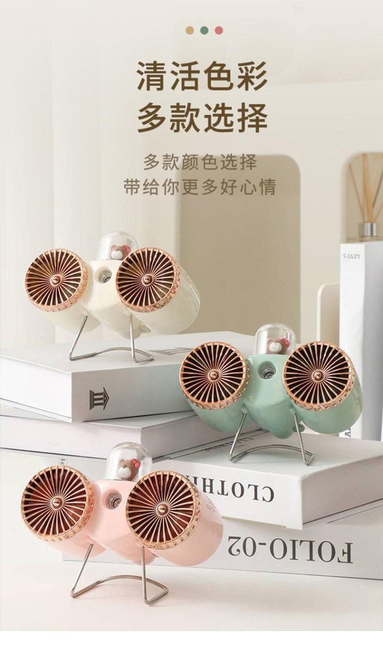赠驱蚊手环|双扇叶风扇 三档风力双倍清凉 加湿器小夜灯 补水保湿 桌面办公神器小风扇