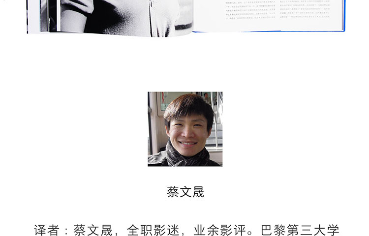 译者:蔡文晟,全职影迷,业余影评。巴黎第三大学电影学硕士,巴黎第十大学电影学博士,巴黎高等师范学院青年客座教授,现为湖北经济学院新媒体系副教授,重点研究王家卫、荣格与法国迷影暨影评史。译有《迷影:创发一种观看的方法,书写一段文化的历史 1944—1968》(2021年)、《蔡明亮的十三张脸:华语电影研究的当代面孔》(2021年)、《电影导演的电影理论》(2019年)、《吻:唇与身体之密语》(2016年)、《电影编剧:来自法国的锦囊妙计》(2015年)等书。