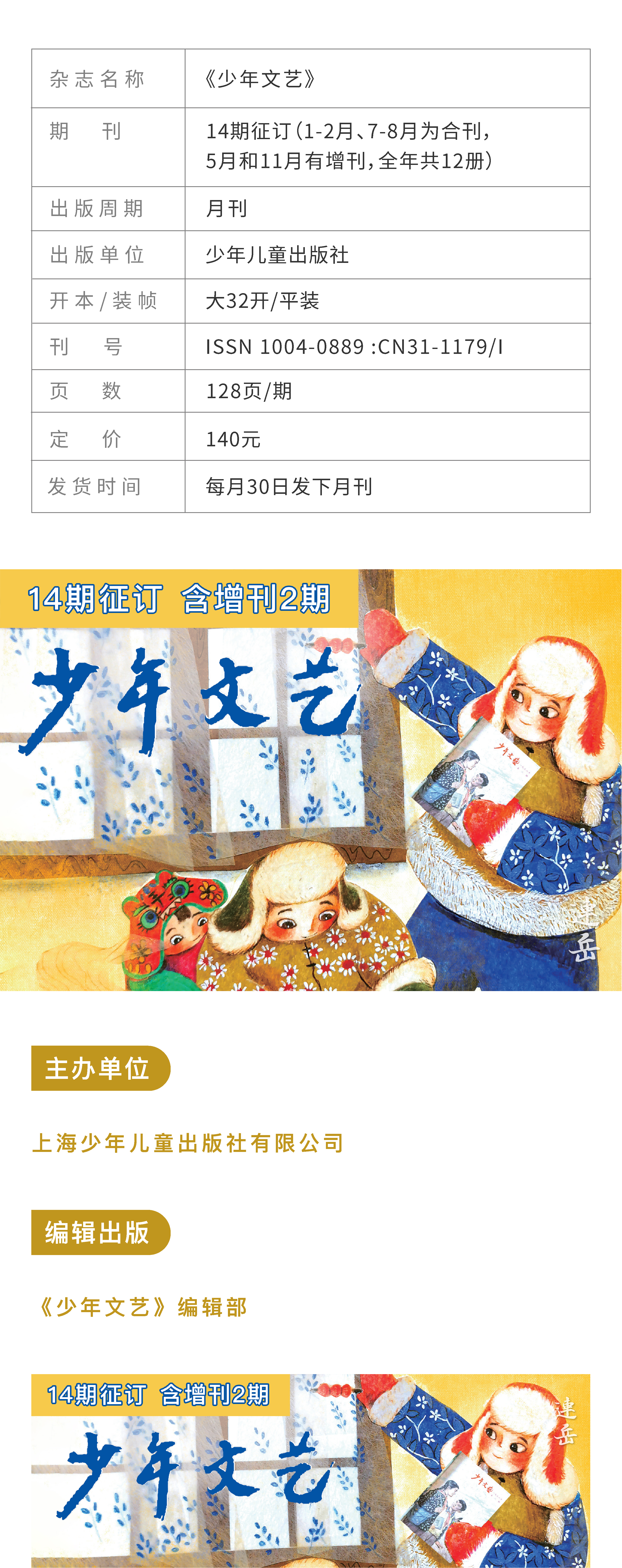 《少年文艺》14期征订 (含增刊2期,全年12册)