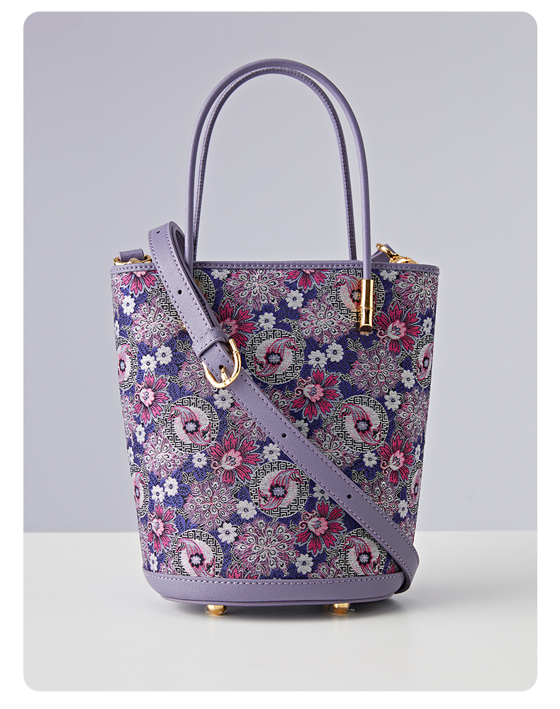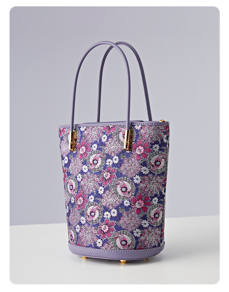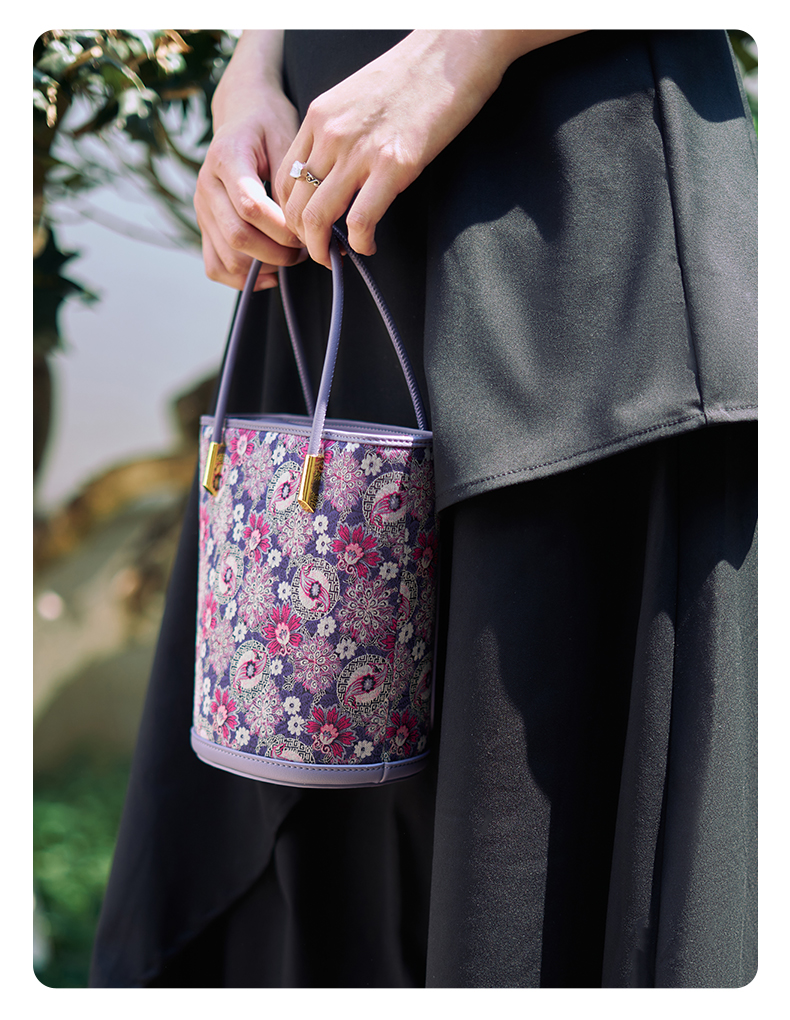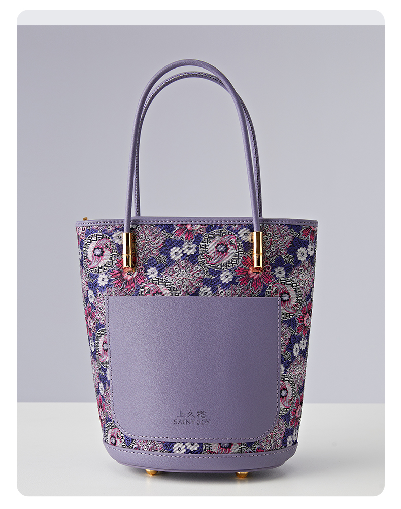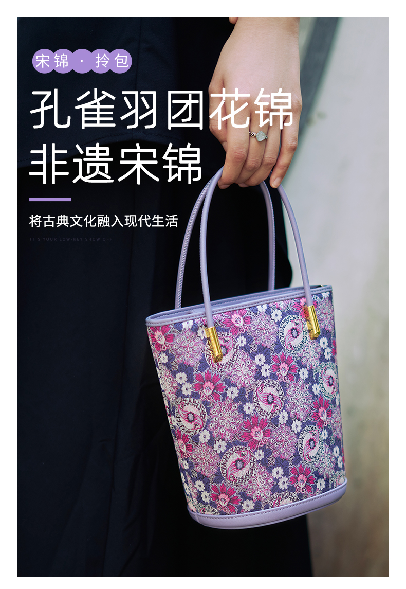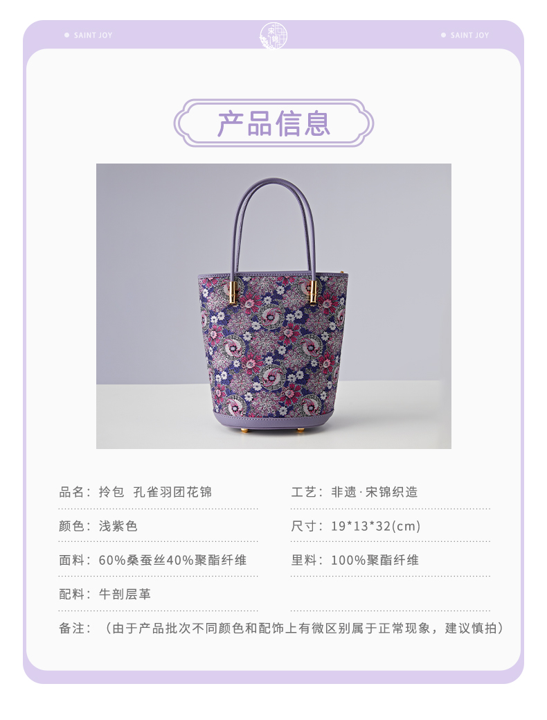 SAINTJOY/上久楷 宋锦拎包 孔雀羽团花锦 手拎包 BWS24A0105-E(不含礼盒包装)