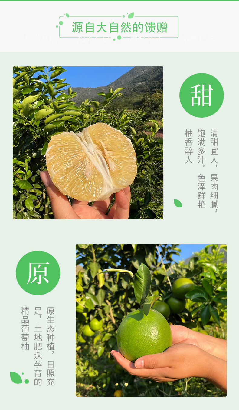 【新鲜采摘! 福建翡翠葡萄柚 】产地阳光充足,天然水源丰富,生态果园,远离城市污染,营养丰富,馥郁果味香气,爆甜青黄皮柚子新鲜水果L