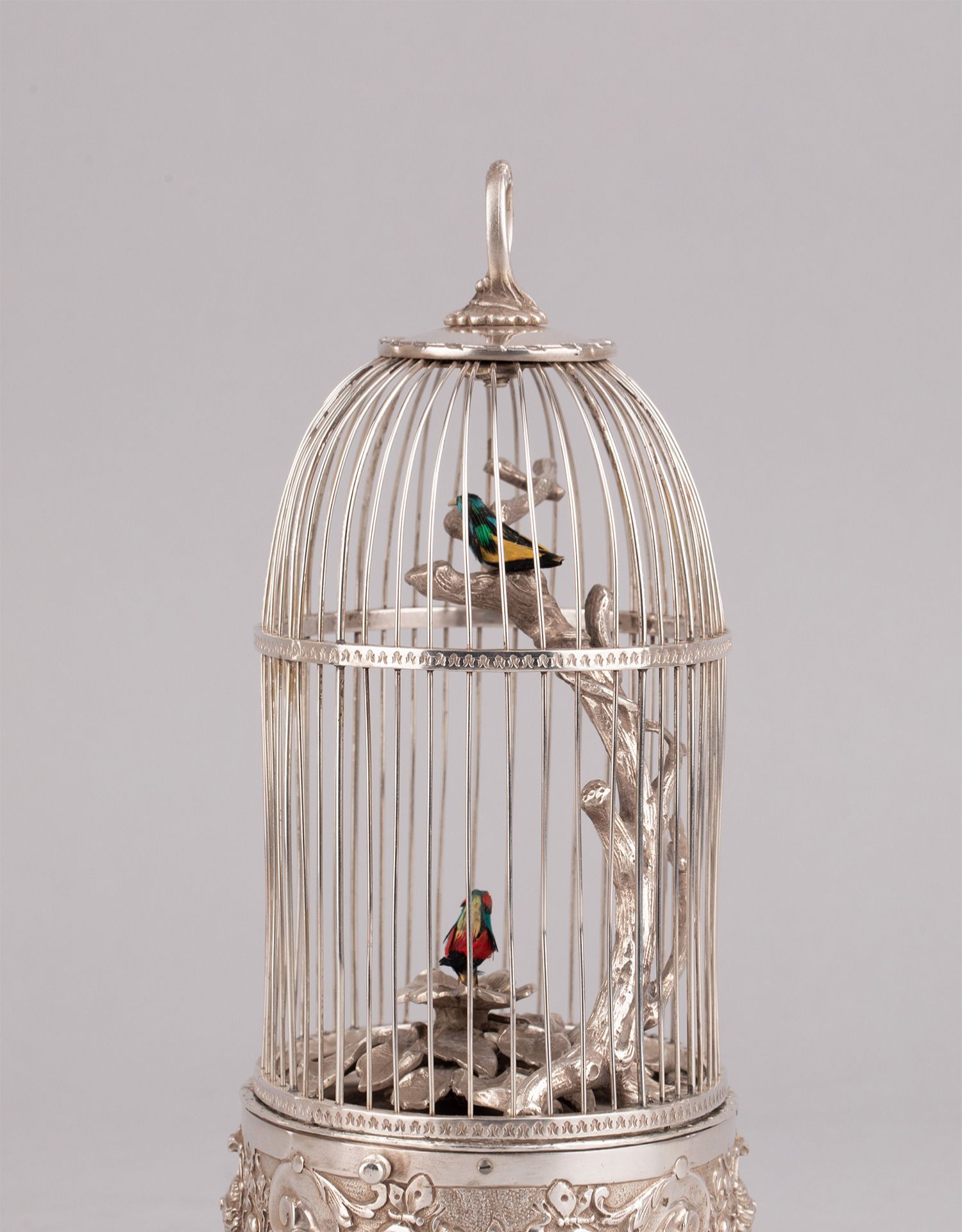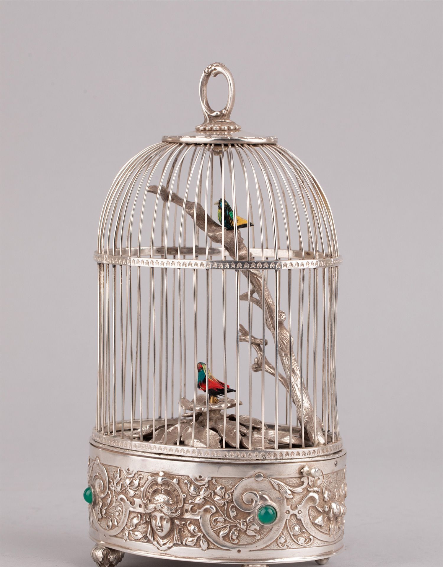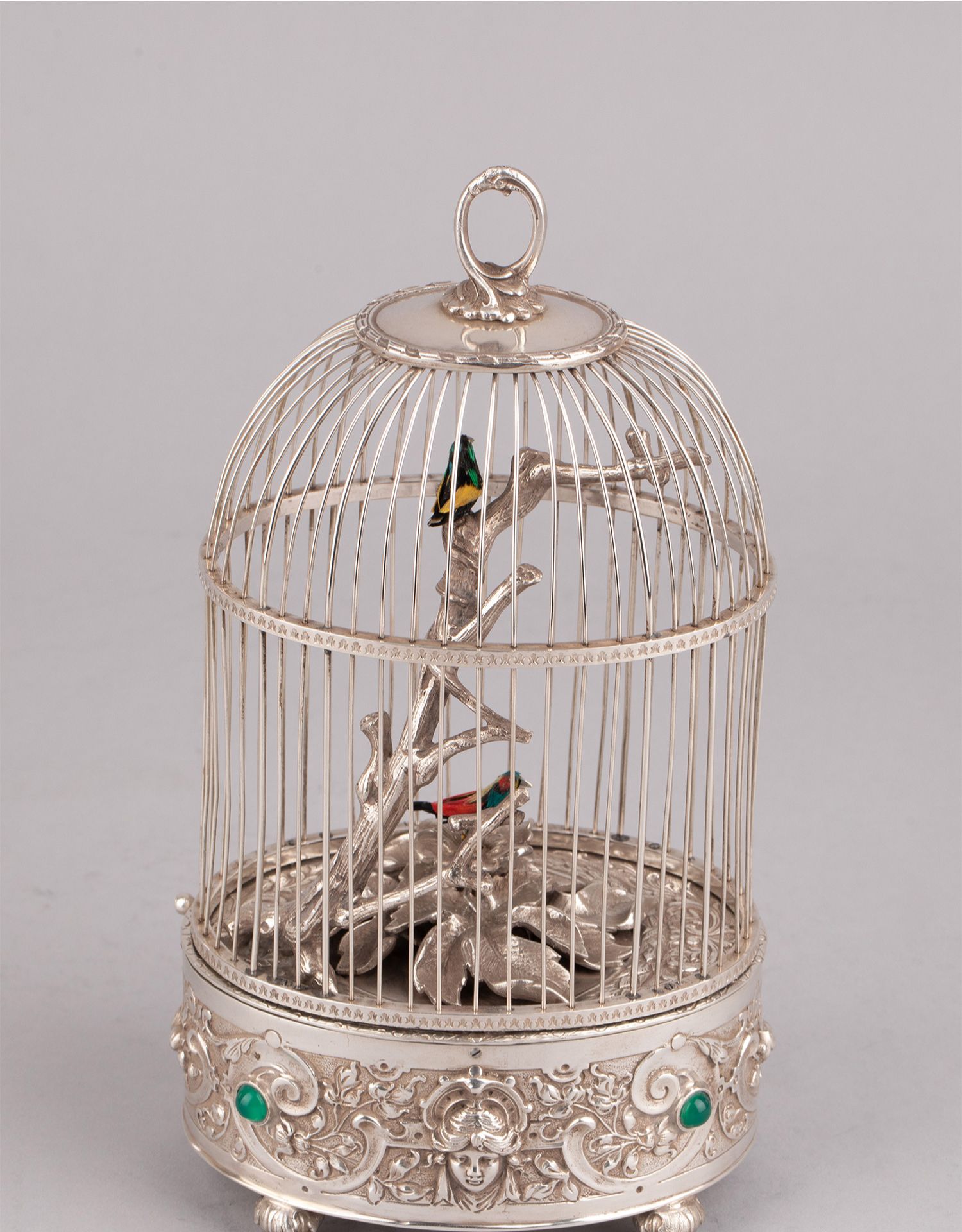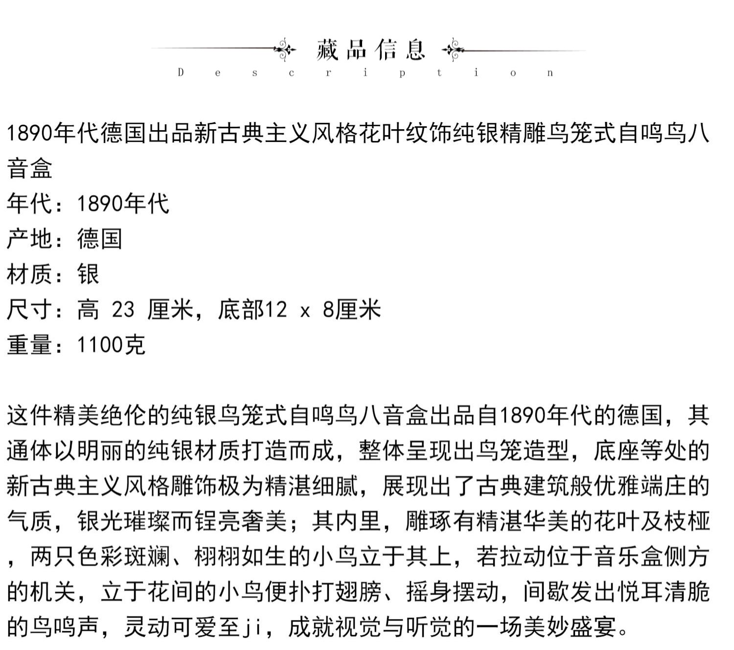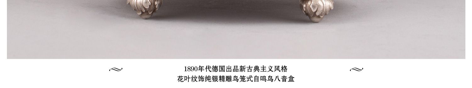 独角鹿西洋古董德国新古典主义花叶纹纯银精雕鸟笼式自鸣鸟八音盒
