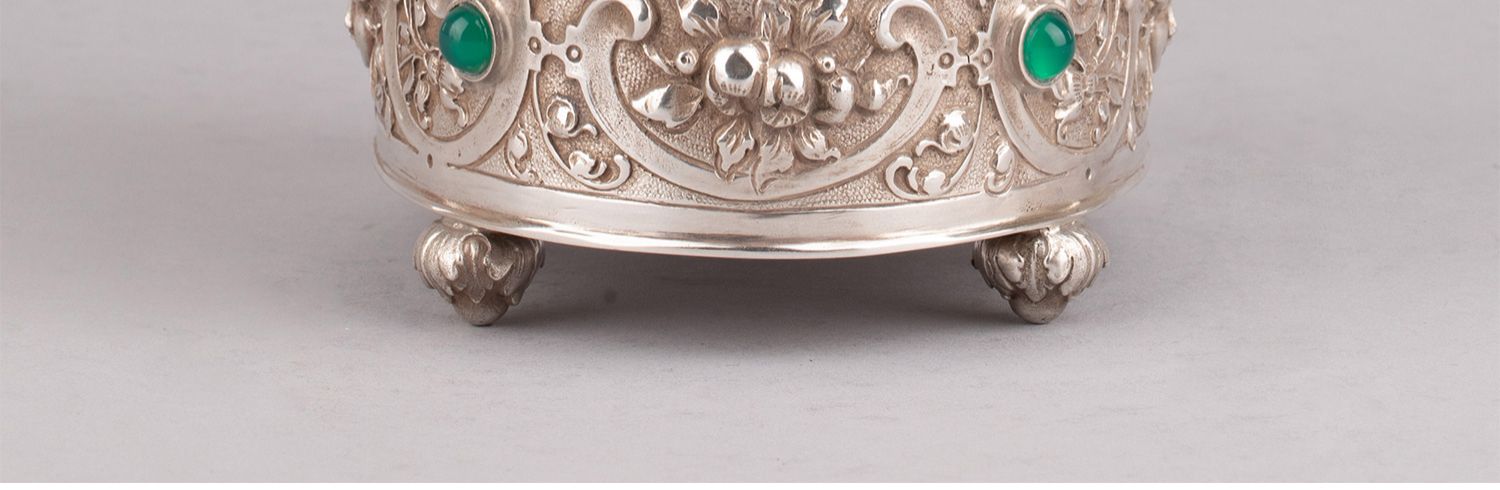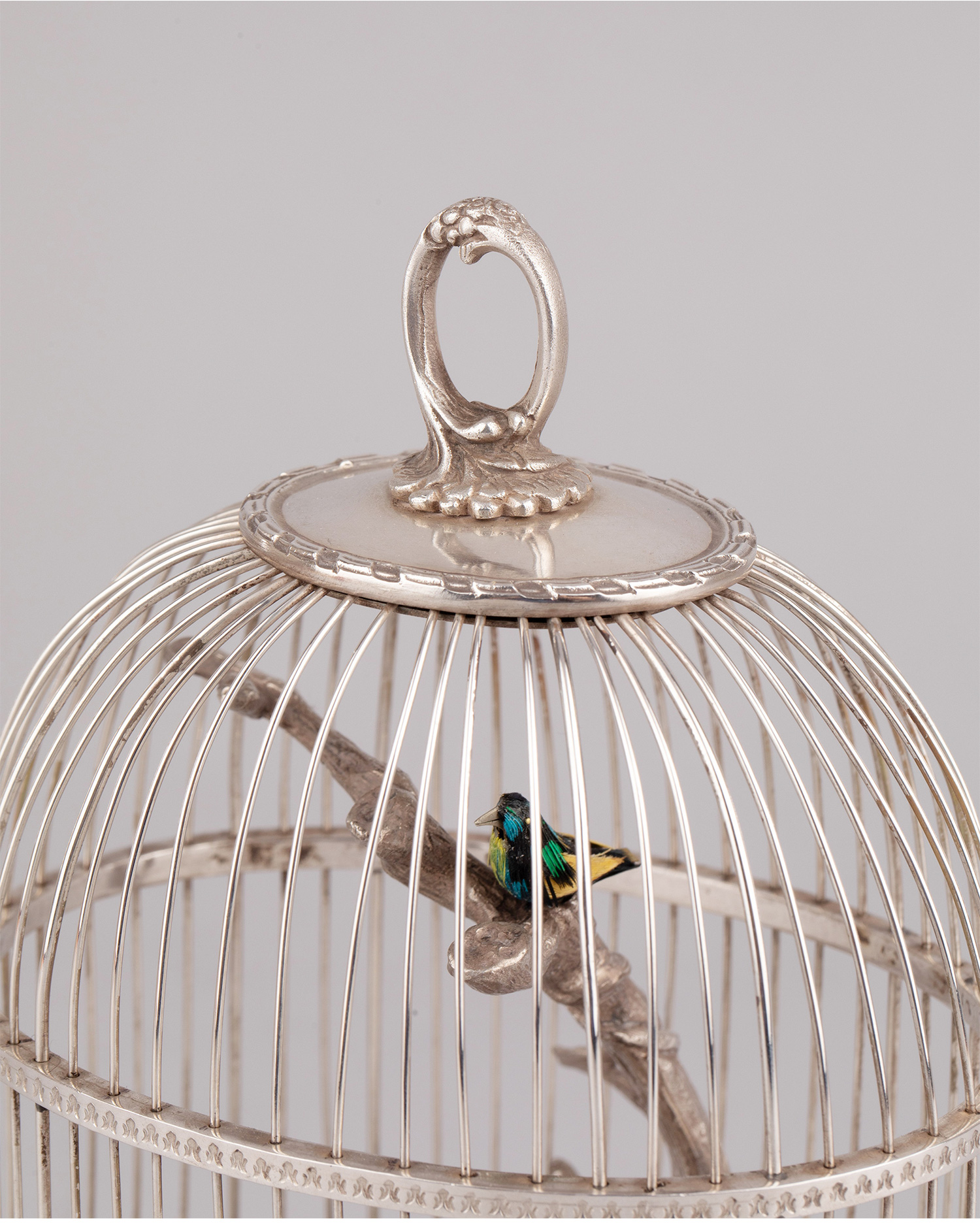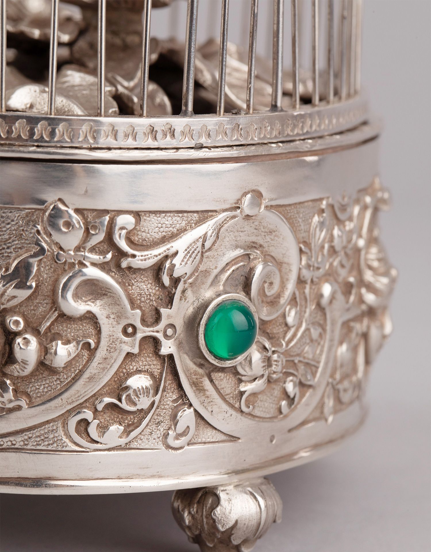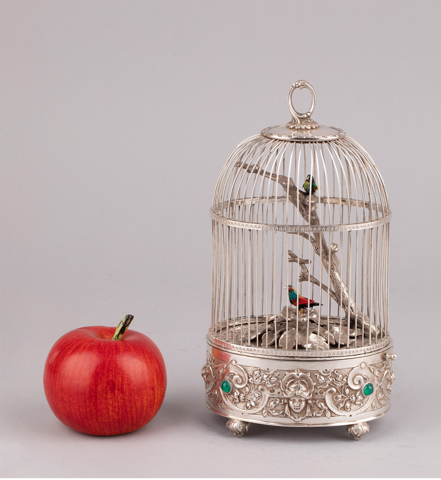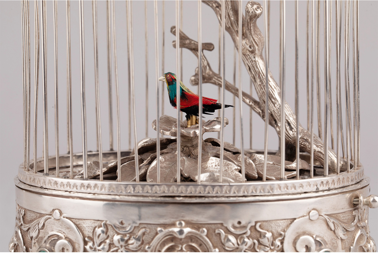 独角鹿西洋古董德国新古典主义花叶纹纯银精雕鸟笼式自鸣鸟八音盒