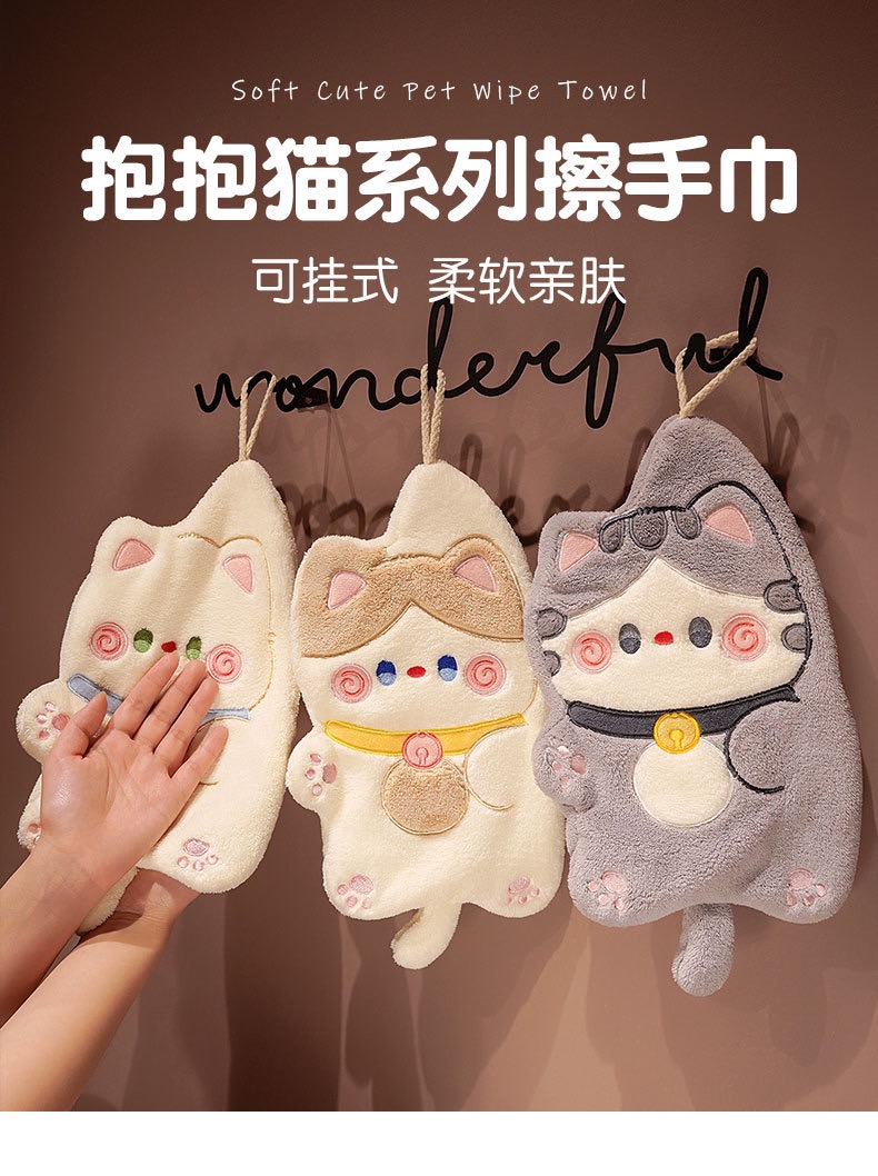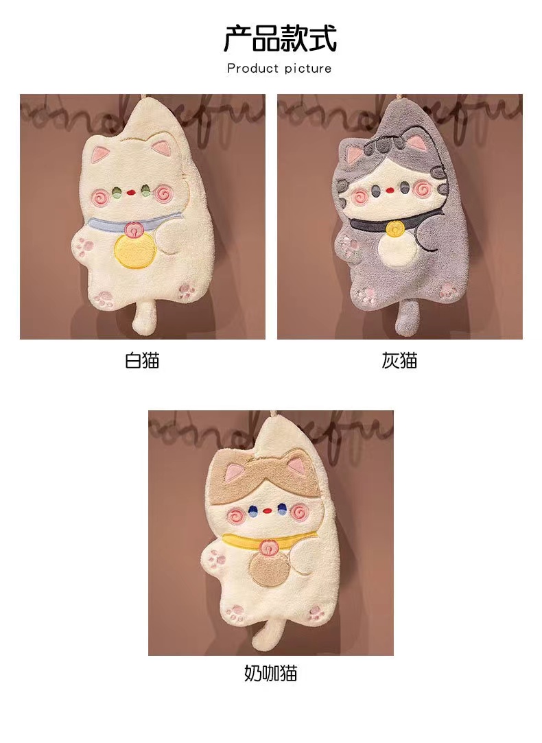 卡通猫咪擦手巾1条(颜色随机)