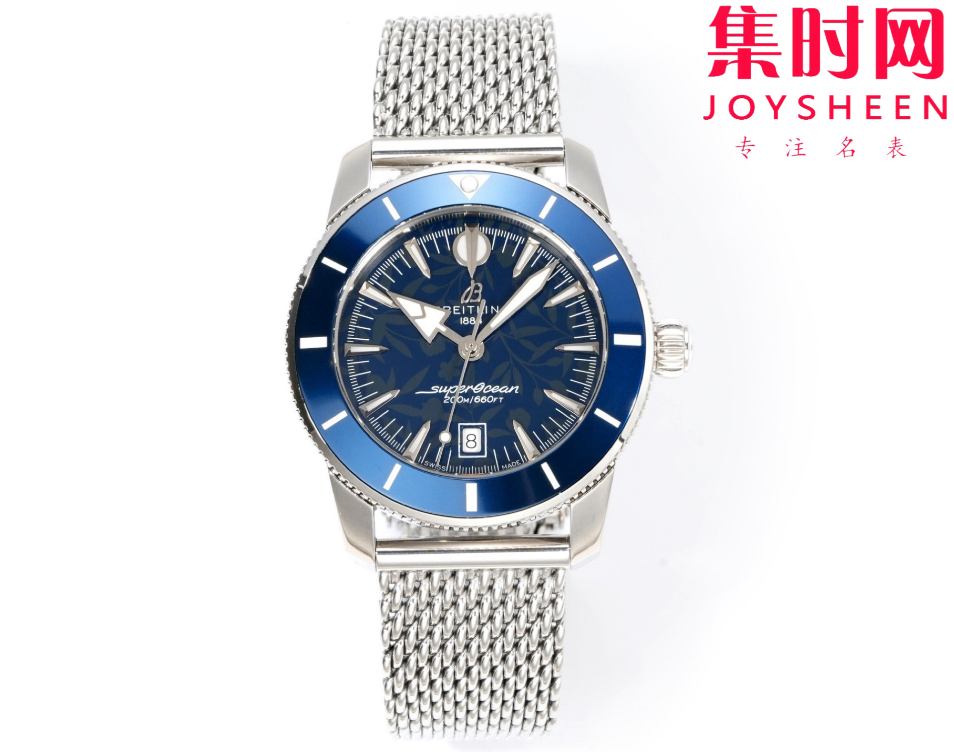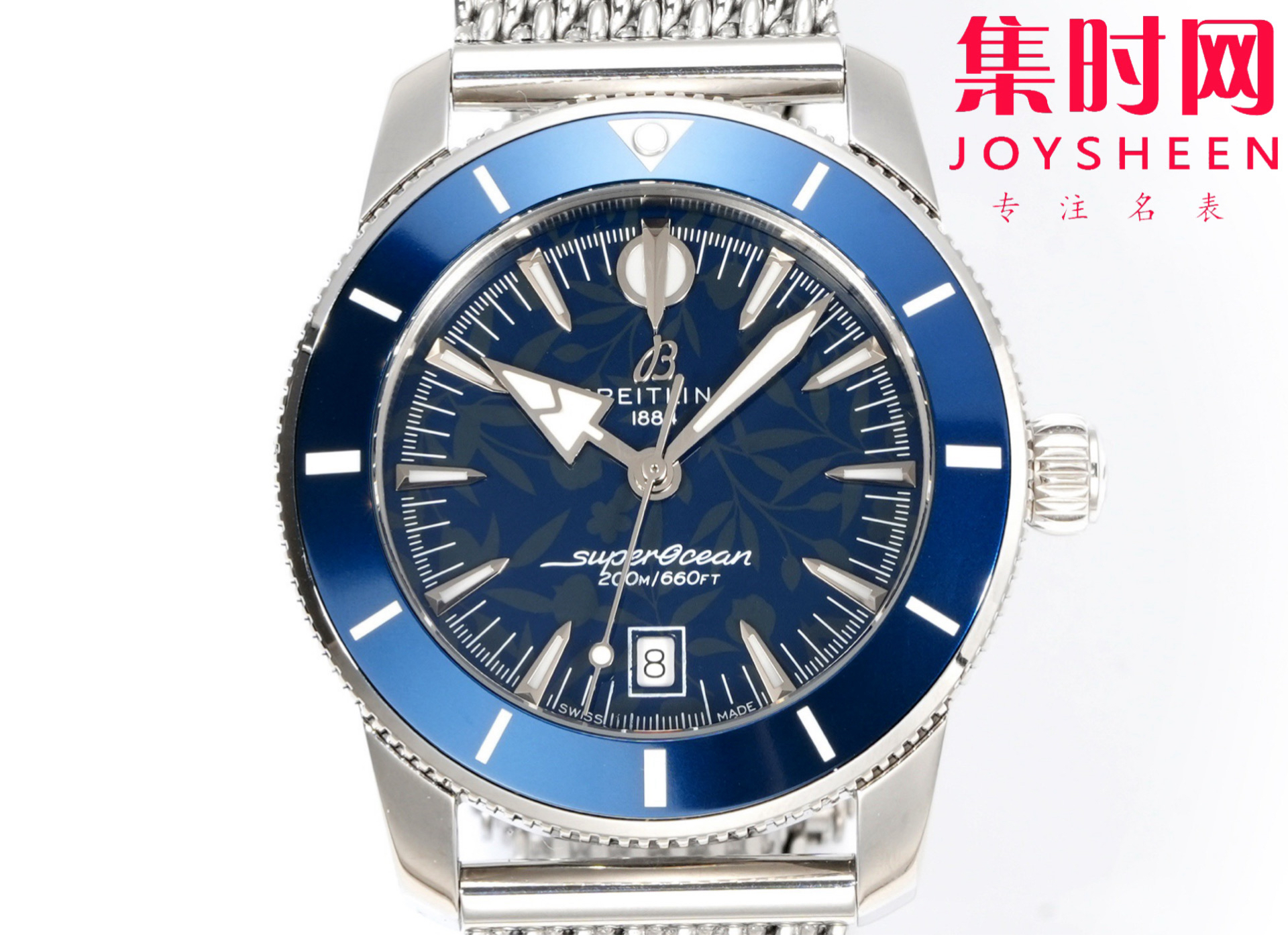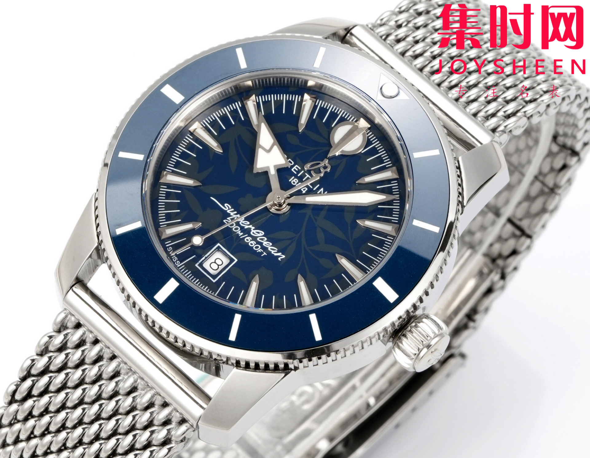 BLS百年灵 超级海洋文化系列 男士腕表 表径42mm 米兰钢带款 为穿梭于海浪与海滨之间打造。超级海洋文化系列,新款超级海洋文化腕表不仅承袭了原款腕表的独特之处,而且还做出了进一步的提升。该系列引入了B31自动上链机械机芯,这是百年灵首款自制大三针机芯。陶瓷镶嵌表圈具备卓越的防刮性能,一体化的金属编织表链或橡胶编织表带紧密贴合表壳,搭配折叠式表扣,既呈现出无缝连接的外观,又能确保防水性能。6点钟位置设计低调的日期显示窗,以及沿袭原款设计的标志性指针(包括箭形时针和矛形分针),共同确保了腕表的易读性和平衡性,无论水上水下。
