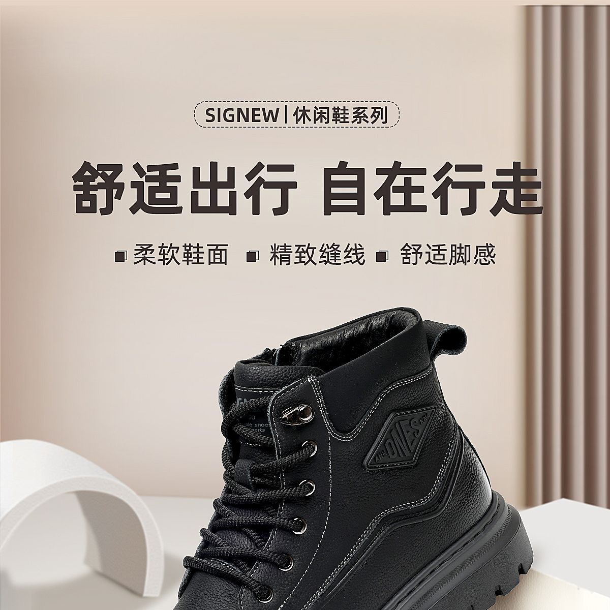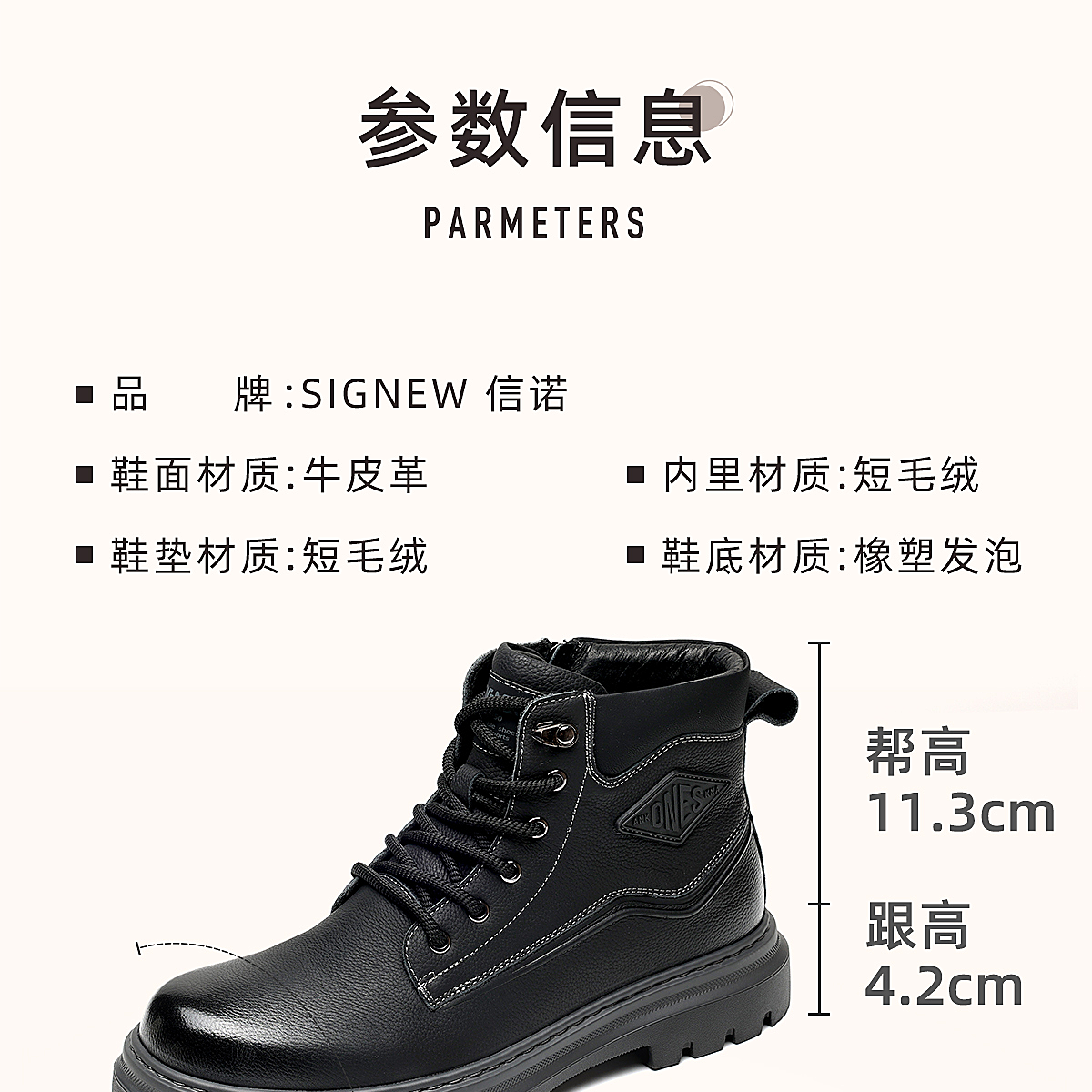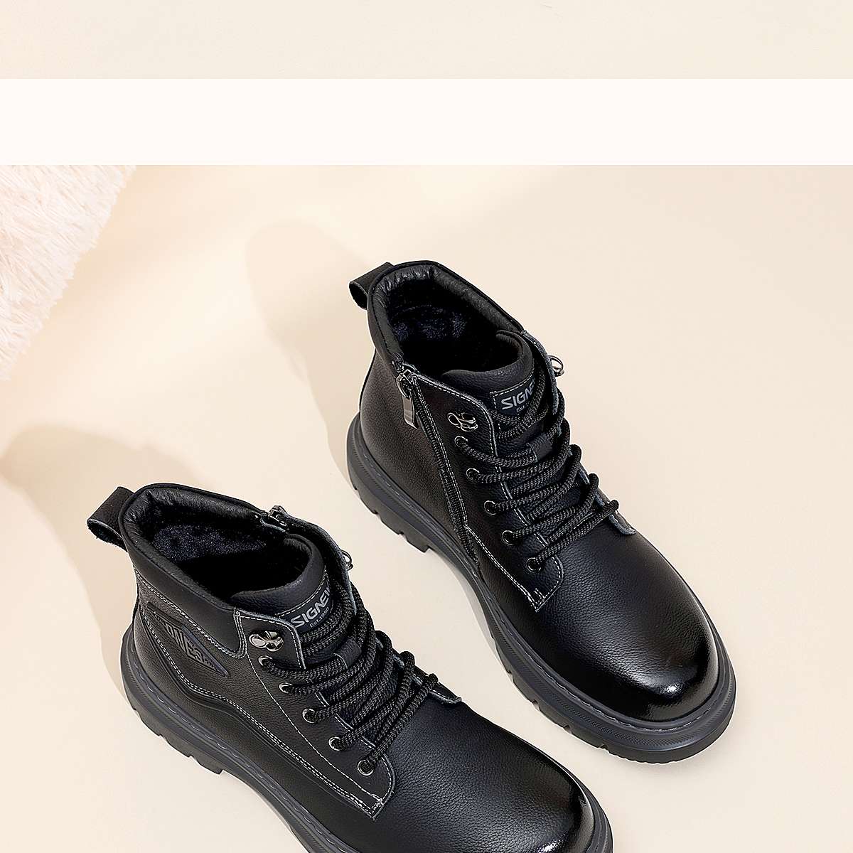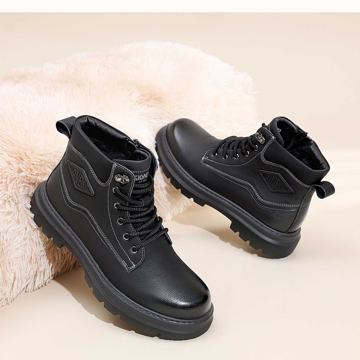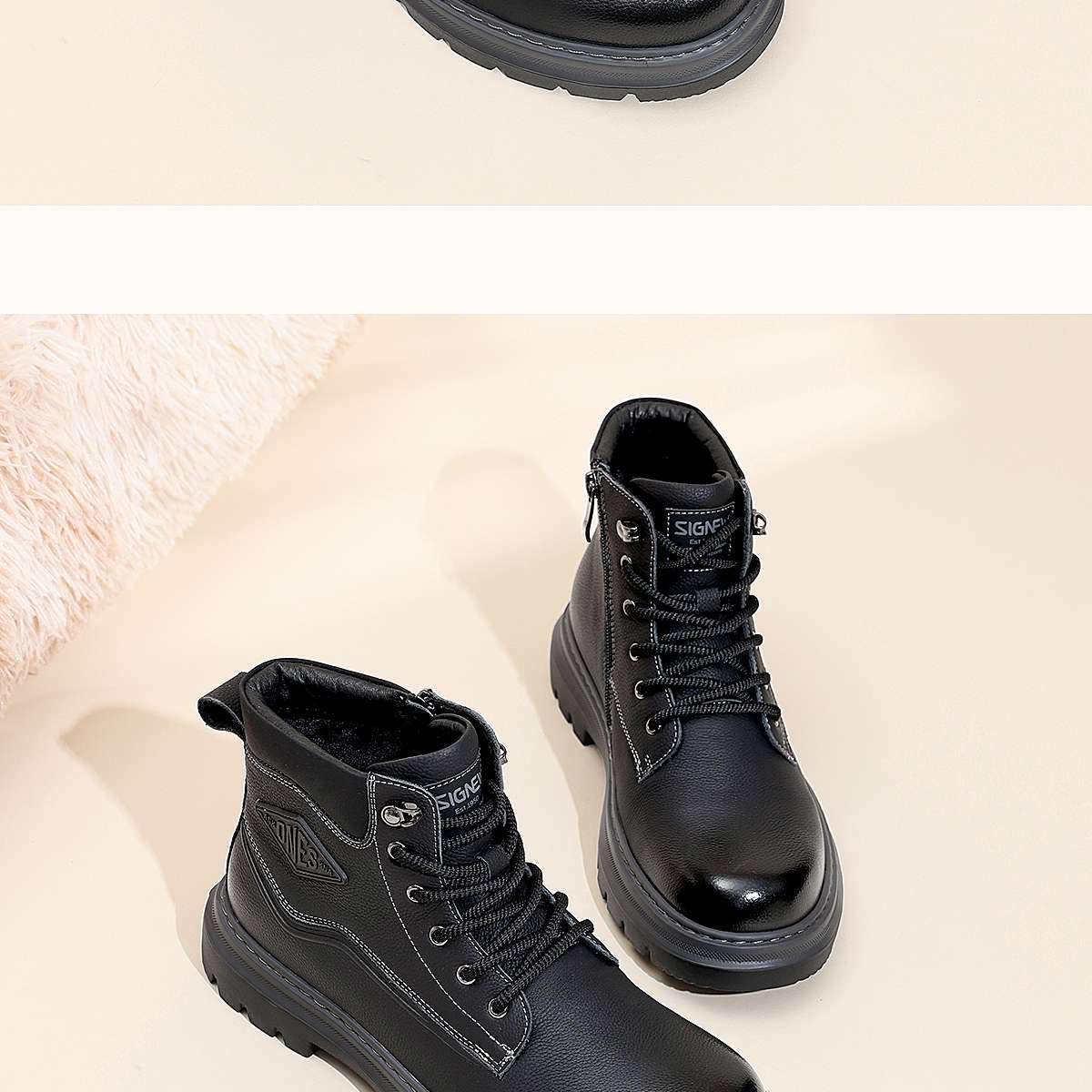 男士时尚高帮棉鞋加绒保暖皮鞋英伦风马丁靴真皮短靴2025冬季新款N5M063-237Z