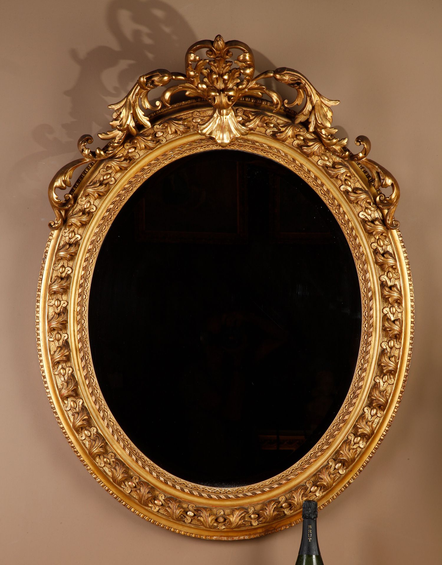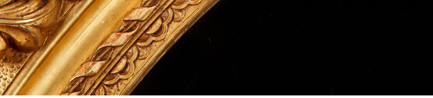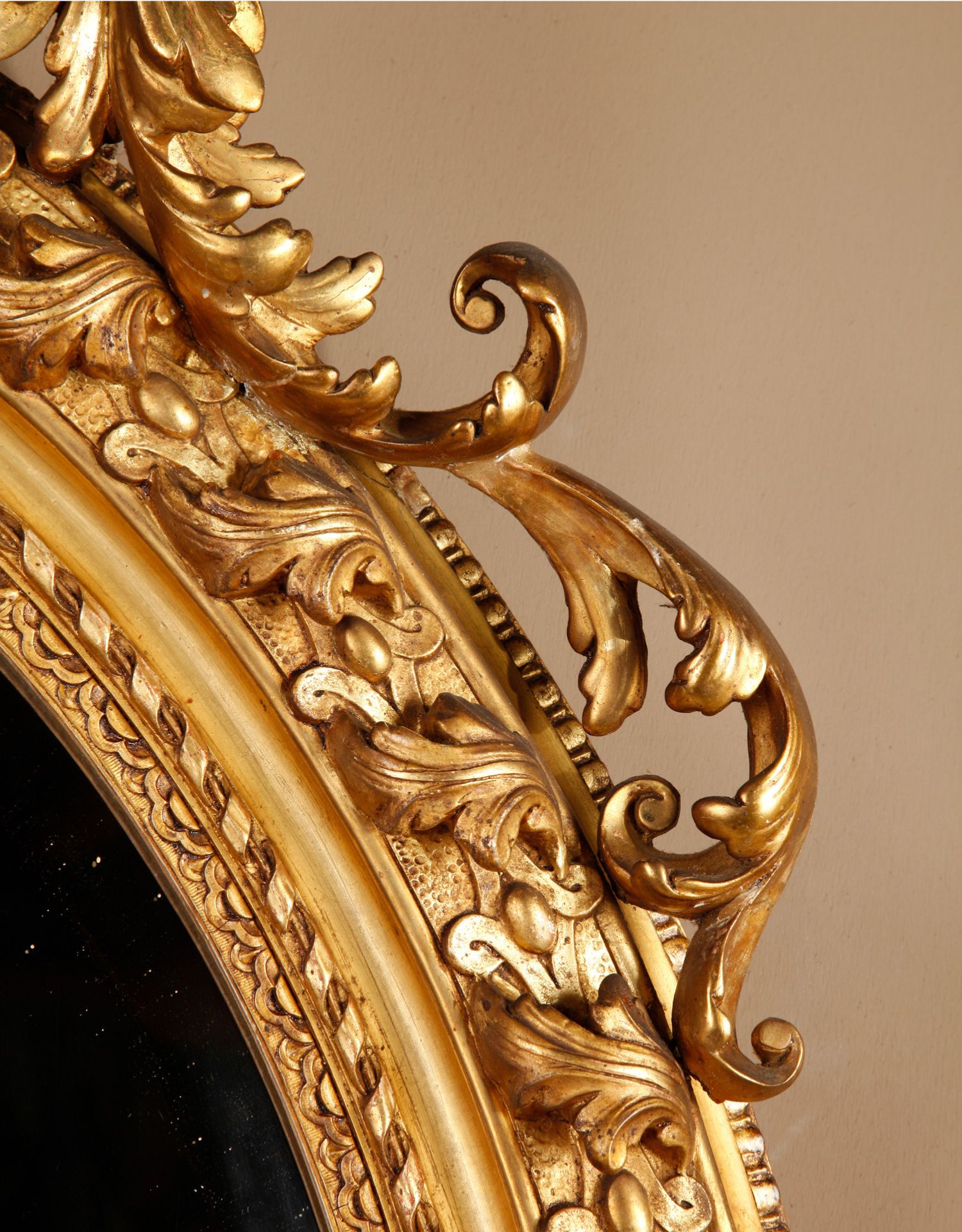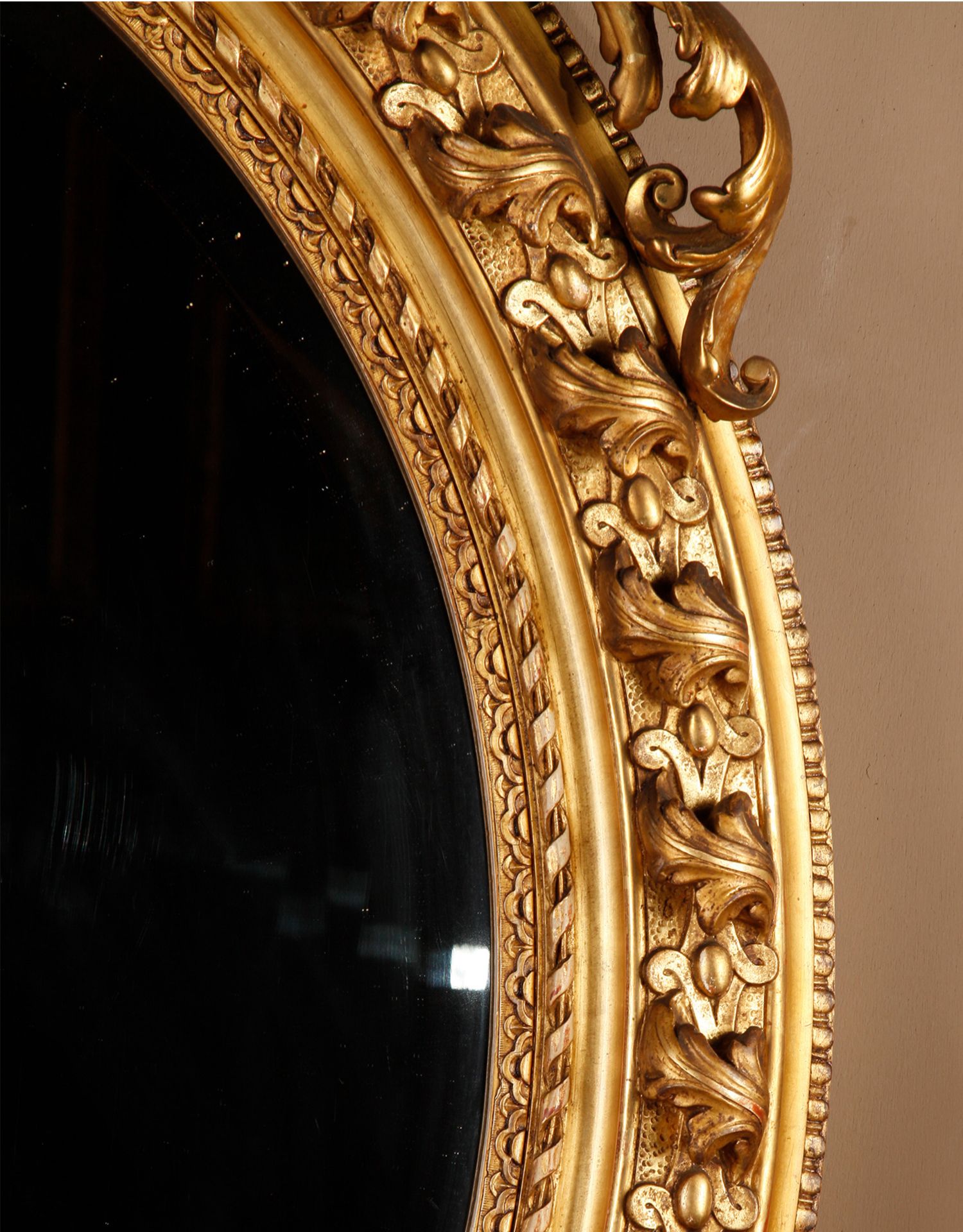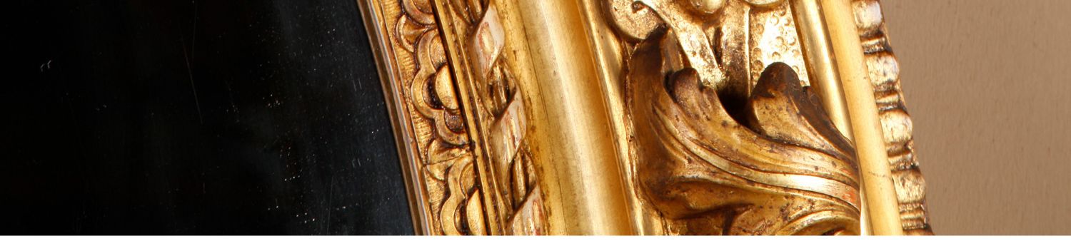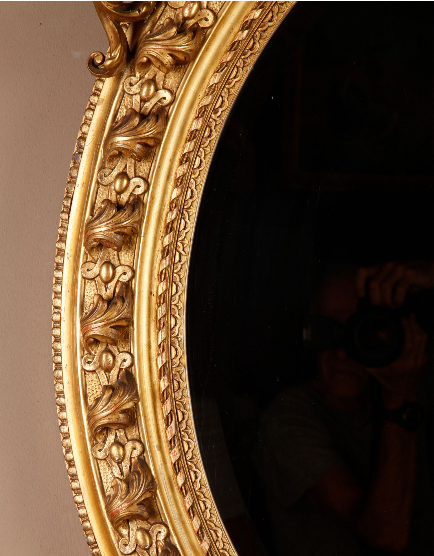 独角鹿西洋古董法国路易十六古典茛苕雕饰木胎灰墁鎏金椭圆形挂镜
