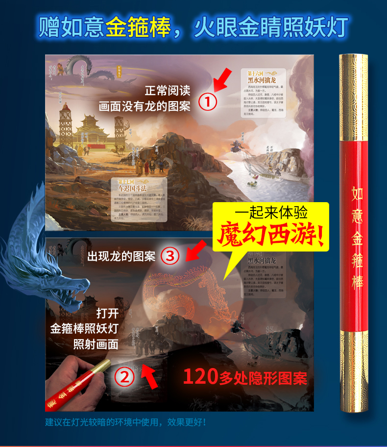 【3岁+】《西游记全景长卷》(全2册)有声故事沉浸式体验阅读亲子探秘互动游戏 赠送如意金箍棒 +火眼金睛照妖灯