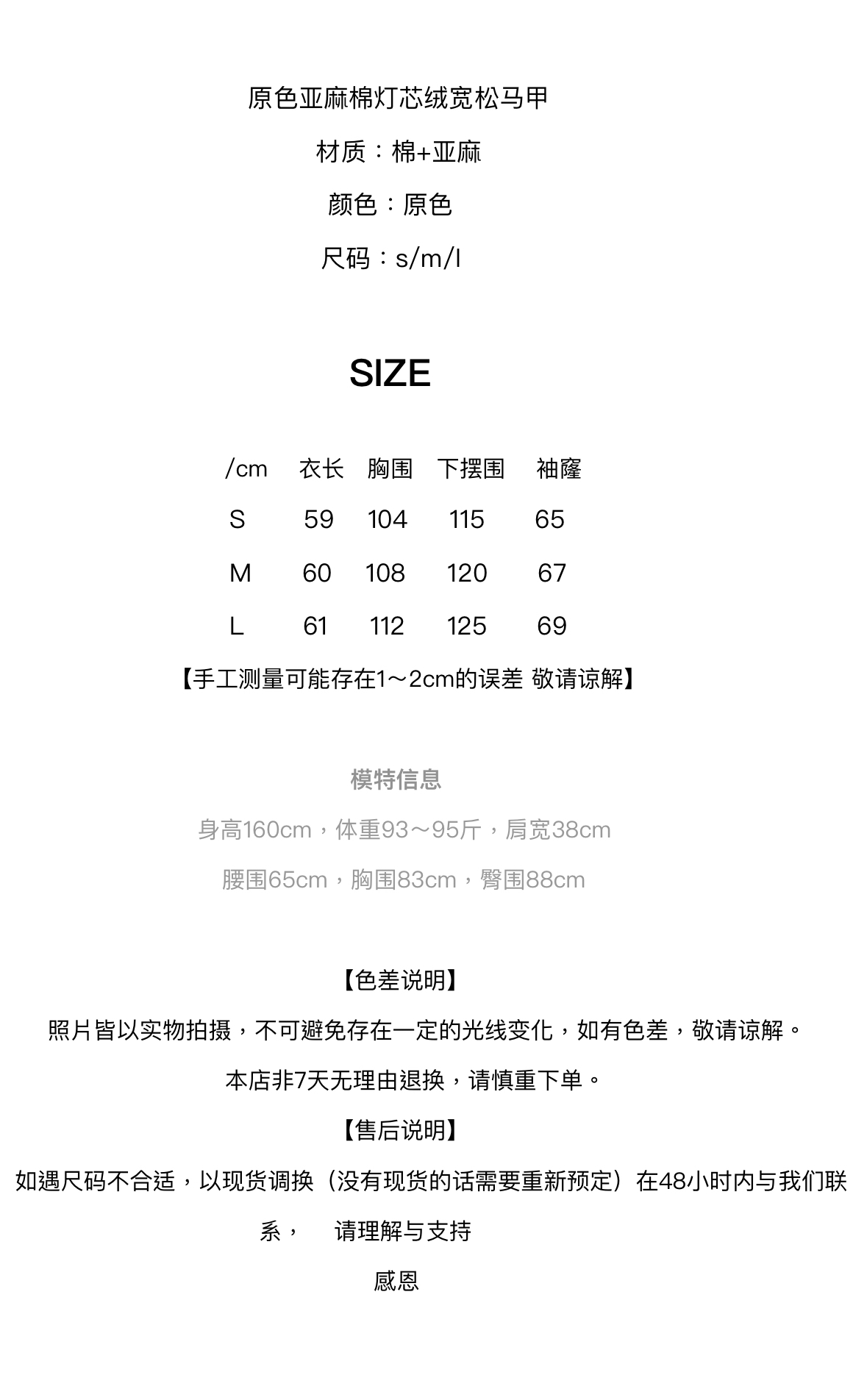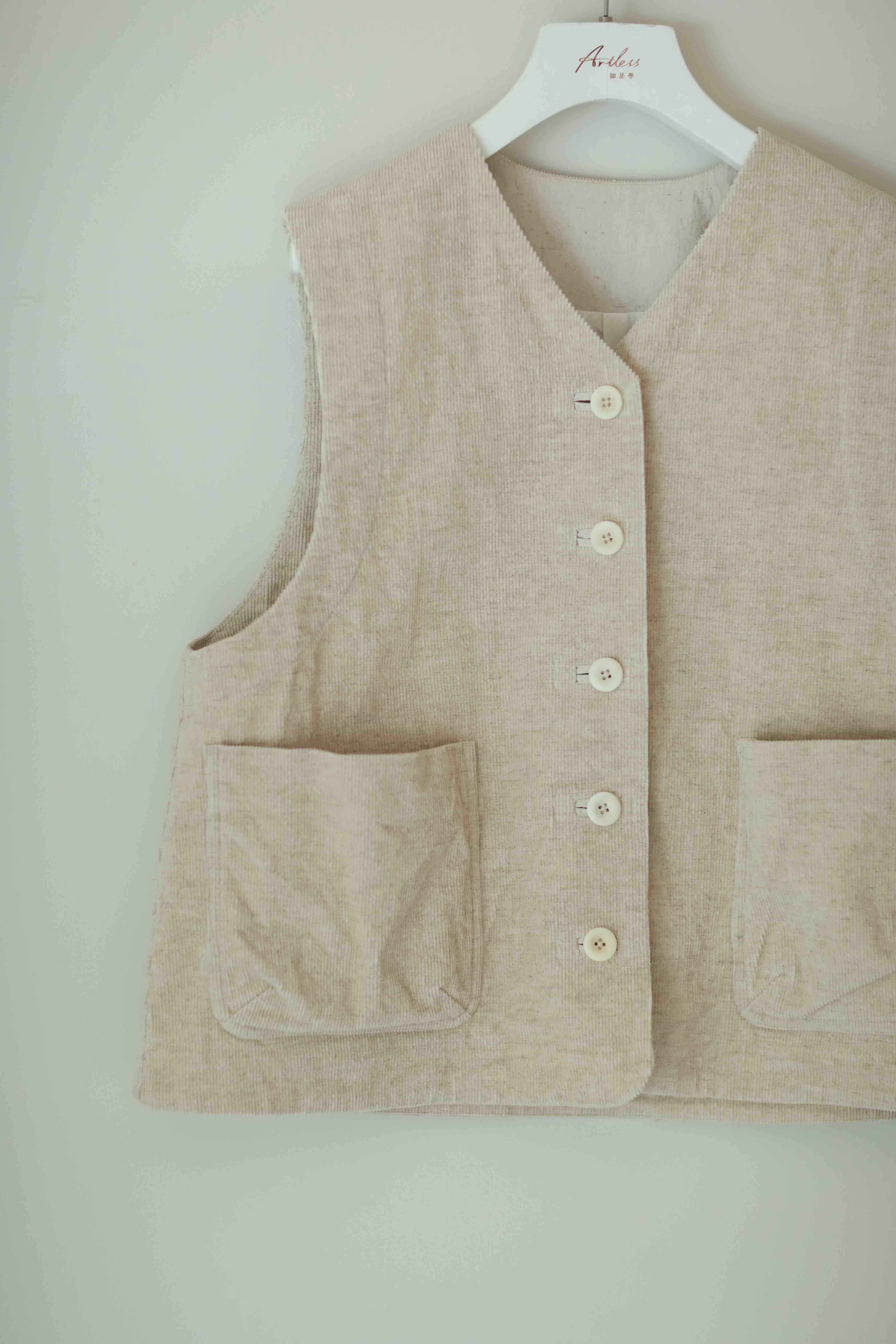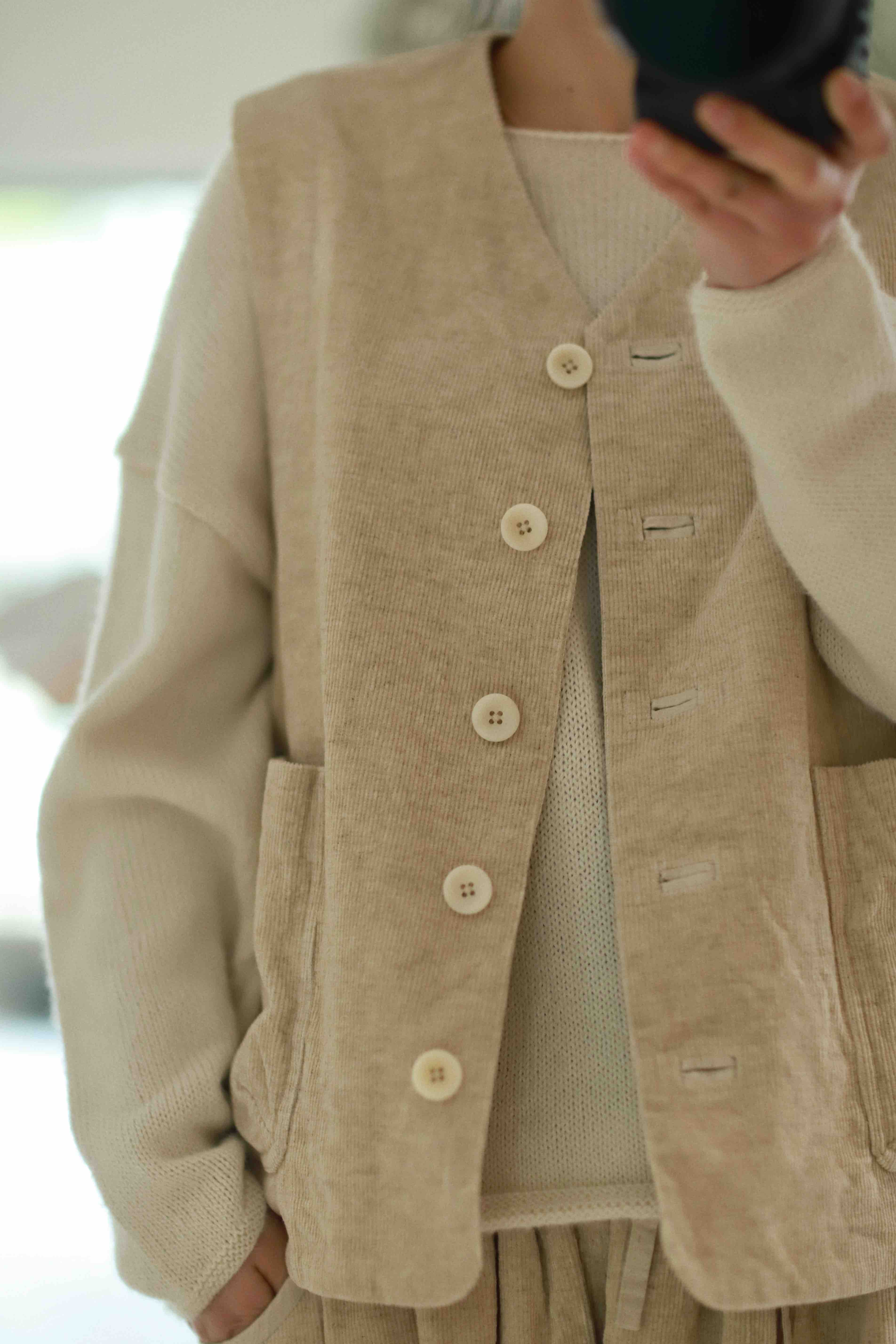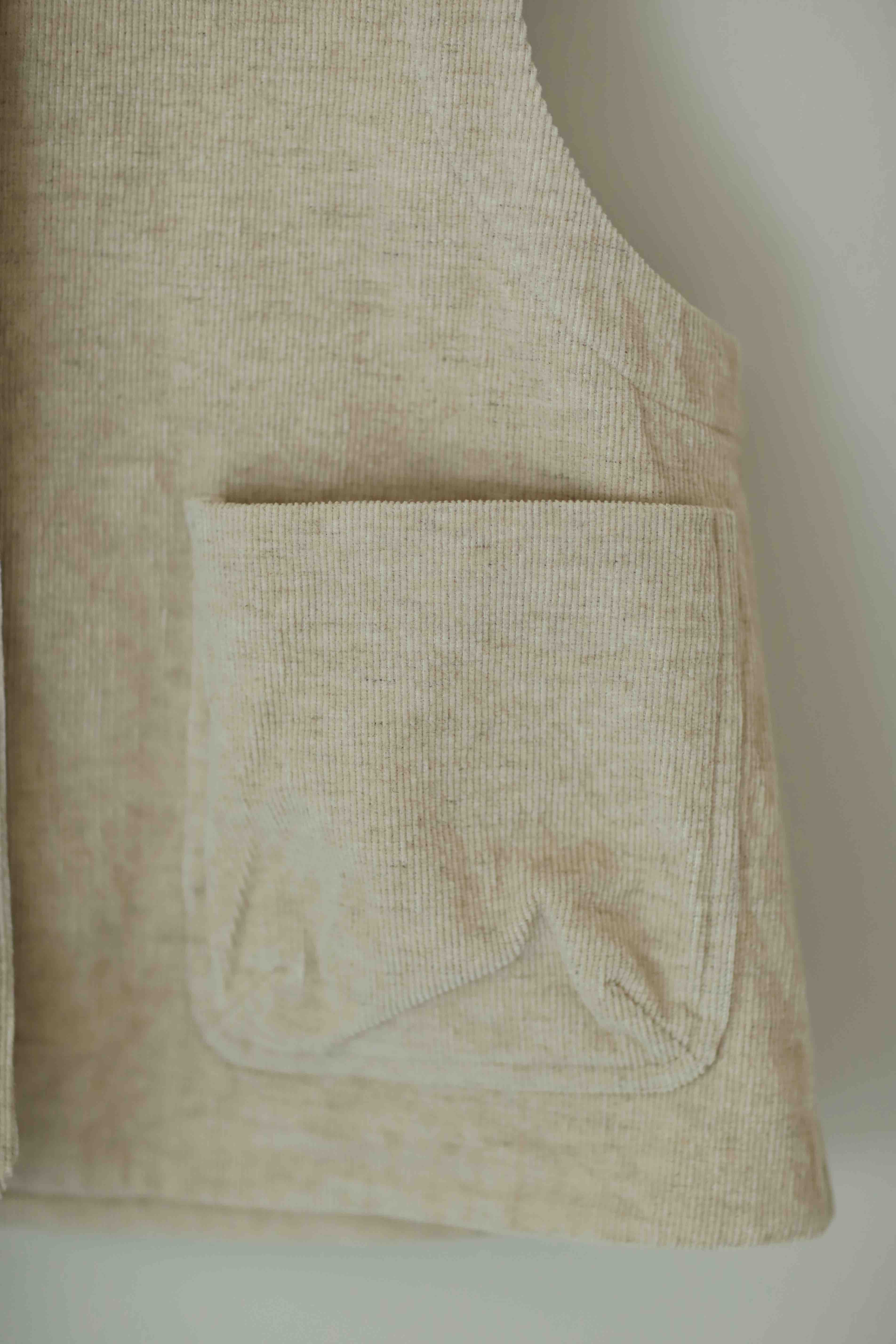 黄阿福|原色亚麻棉灯芯绒宽松马甲