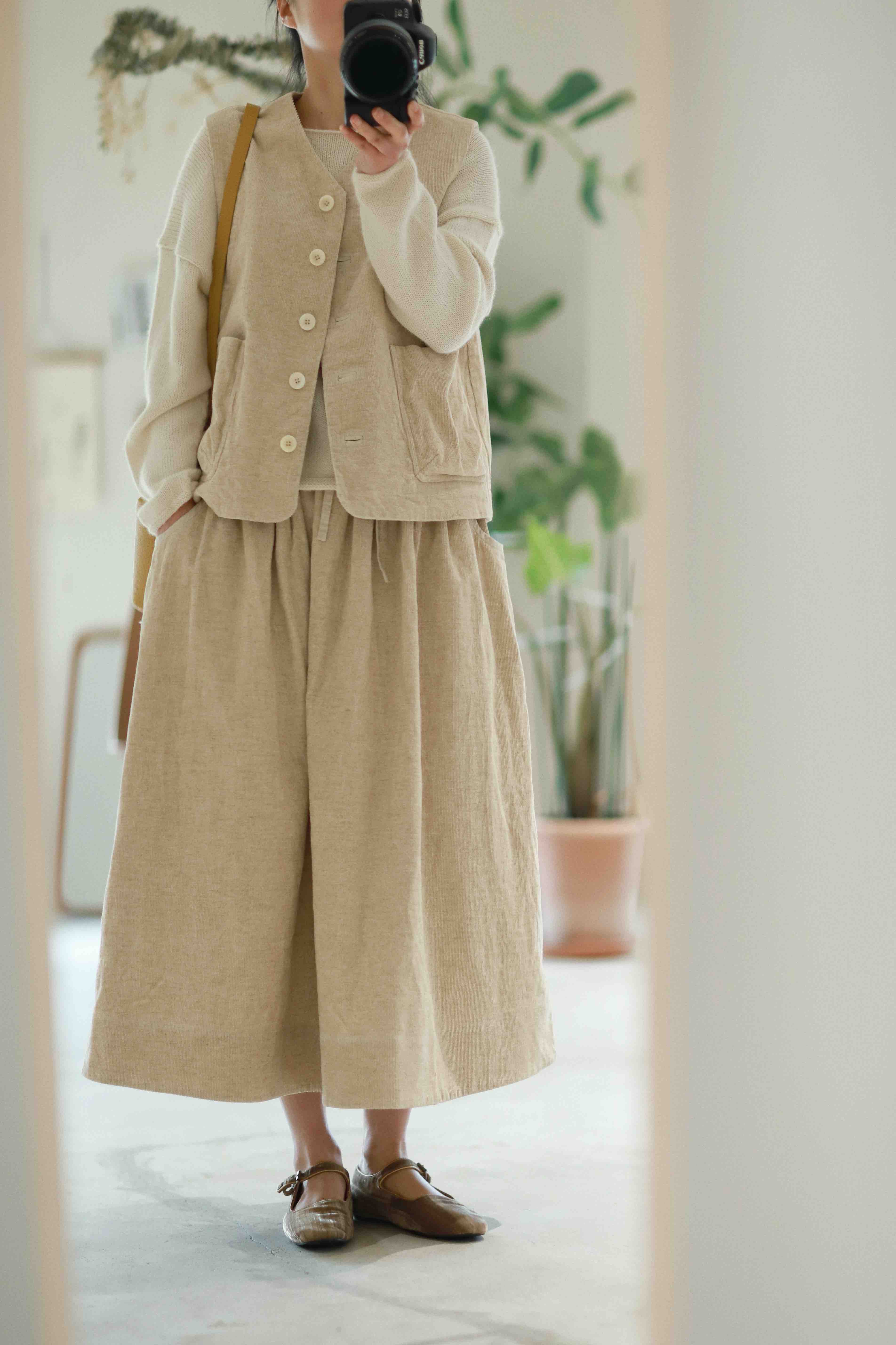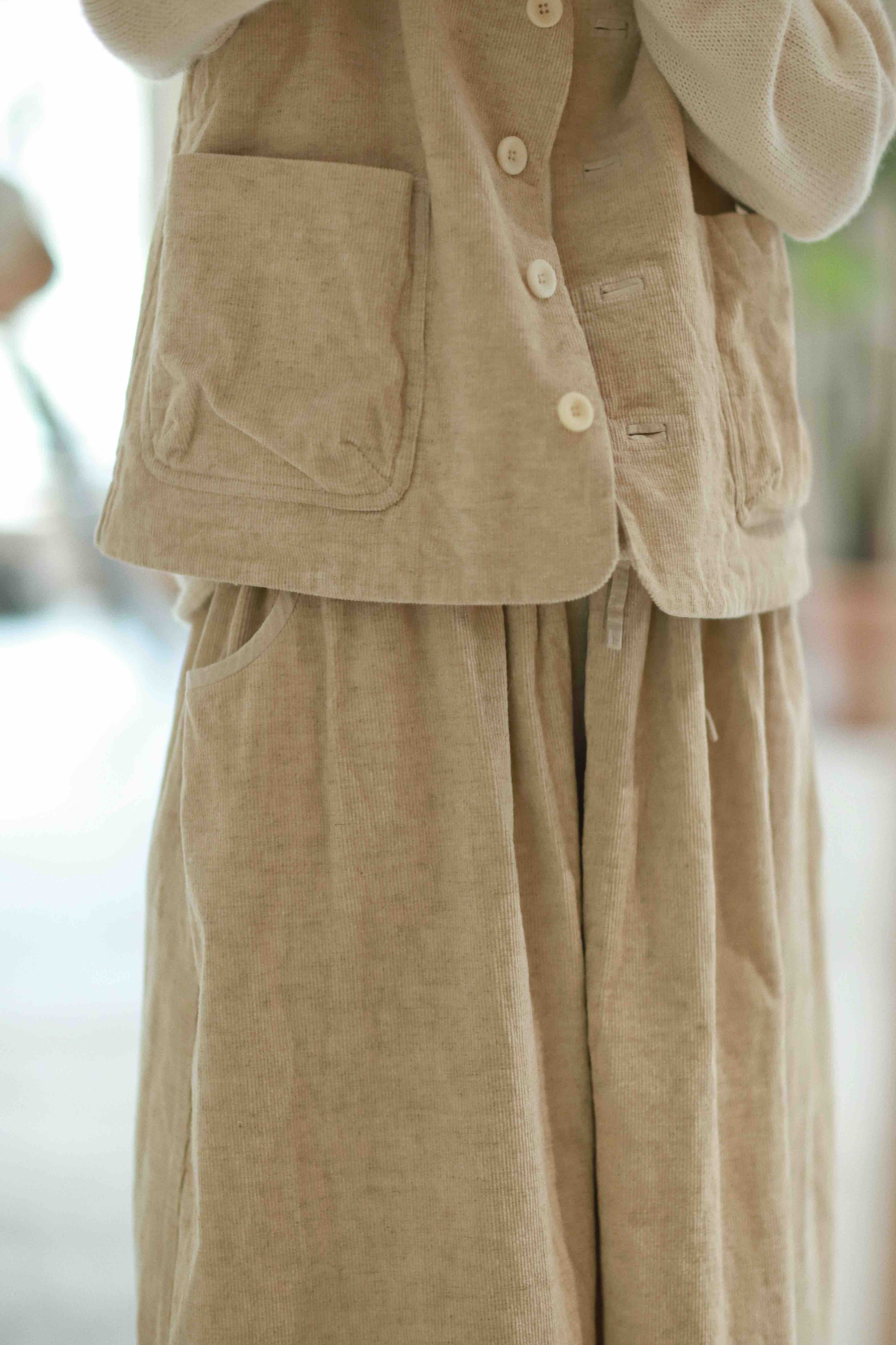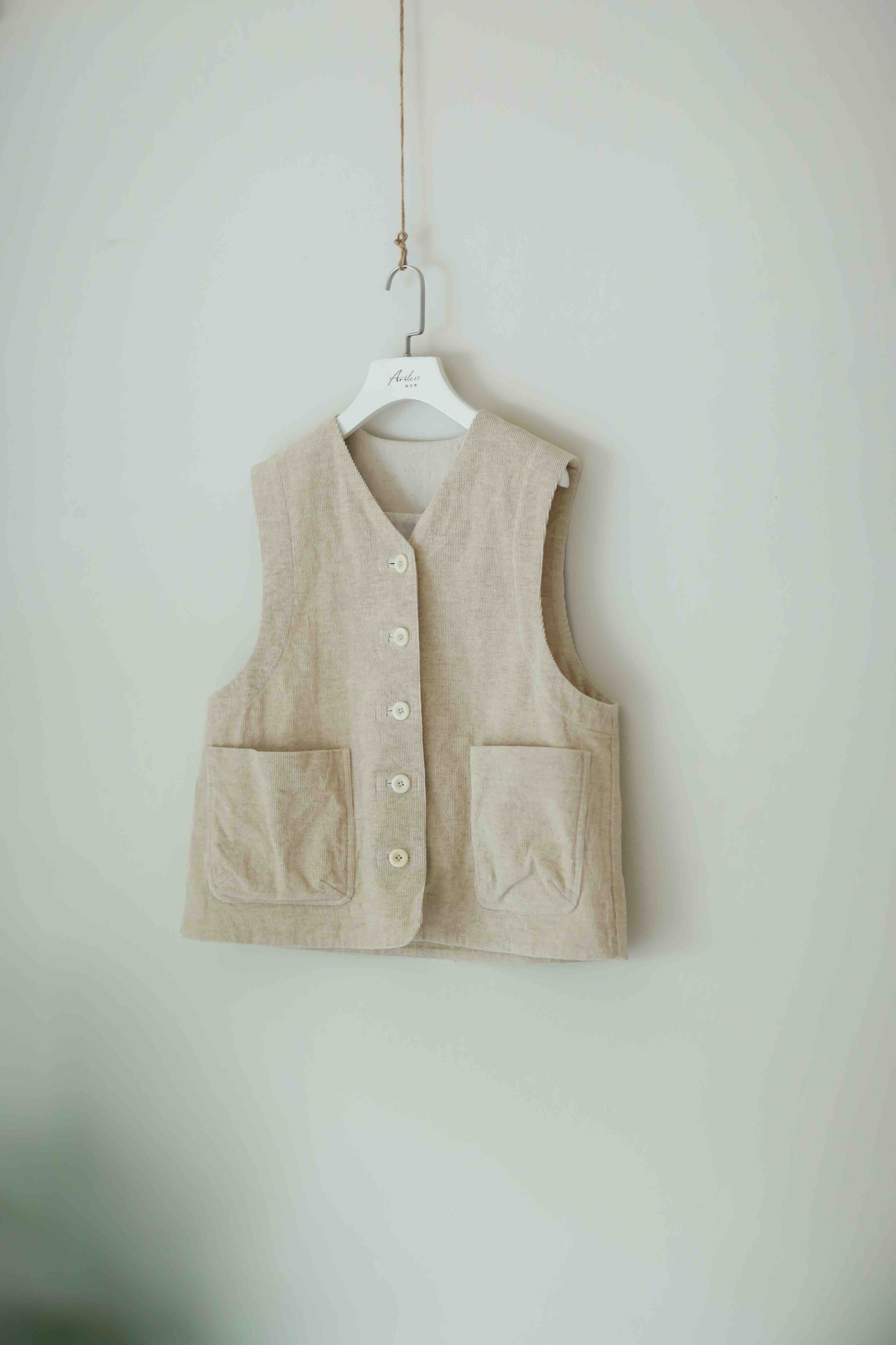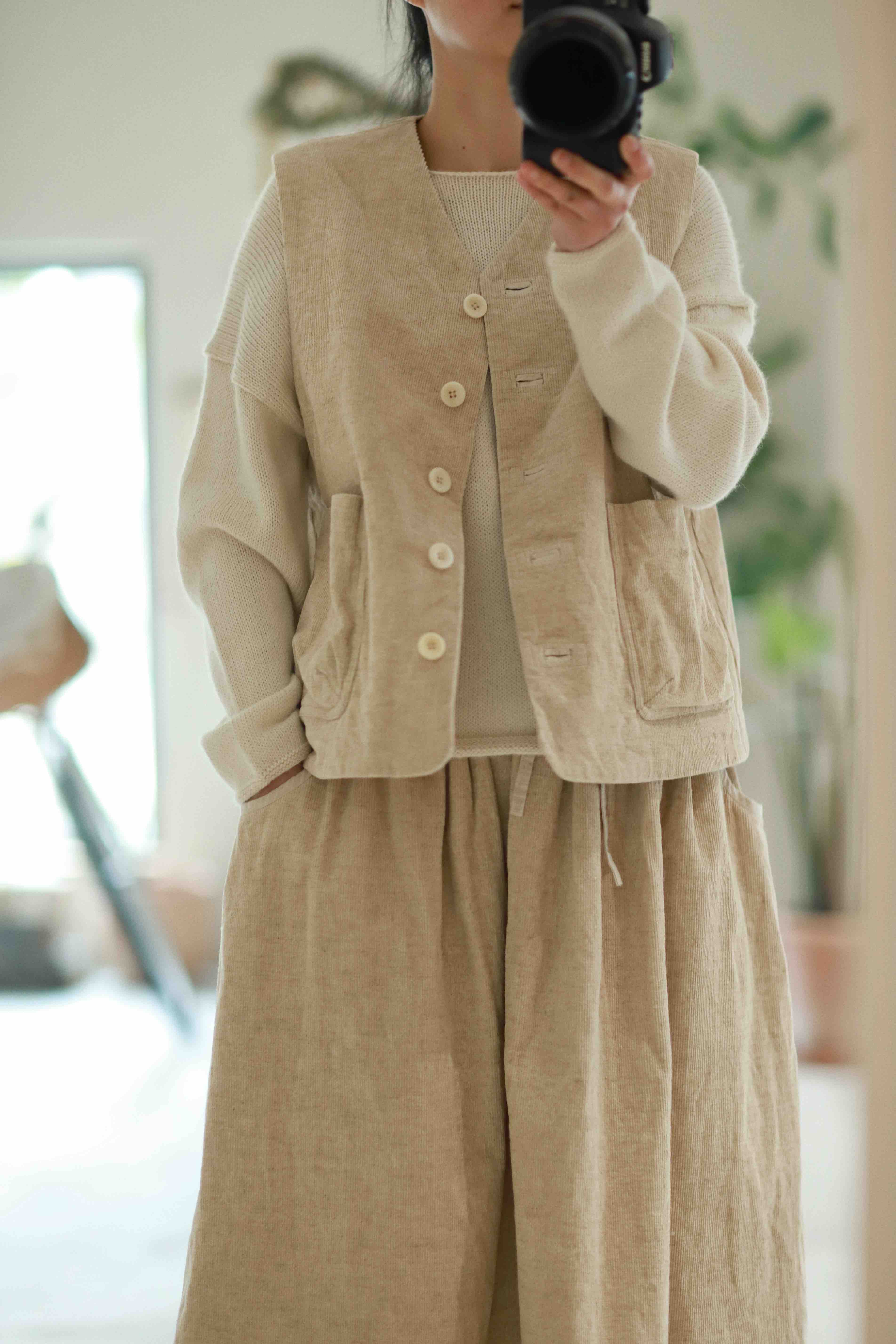 黄阿福|原色亚麻棉灯芯绒宽松马甲