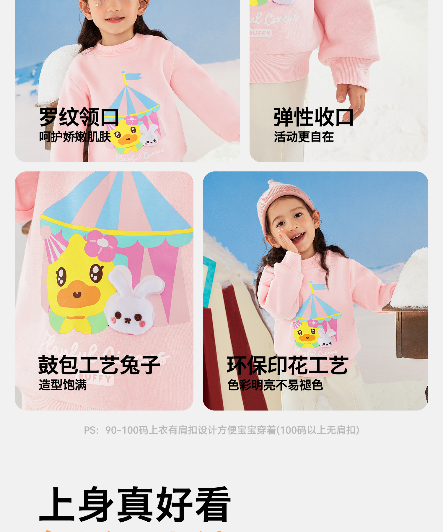 【抗菌加绒】B.Duck小黄鸭童装冬季圆领卫衣90-130 FF5631072