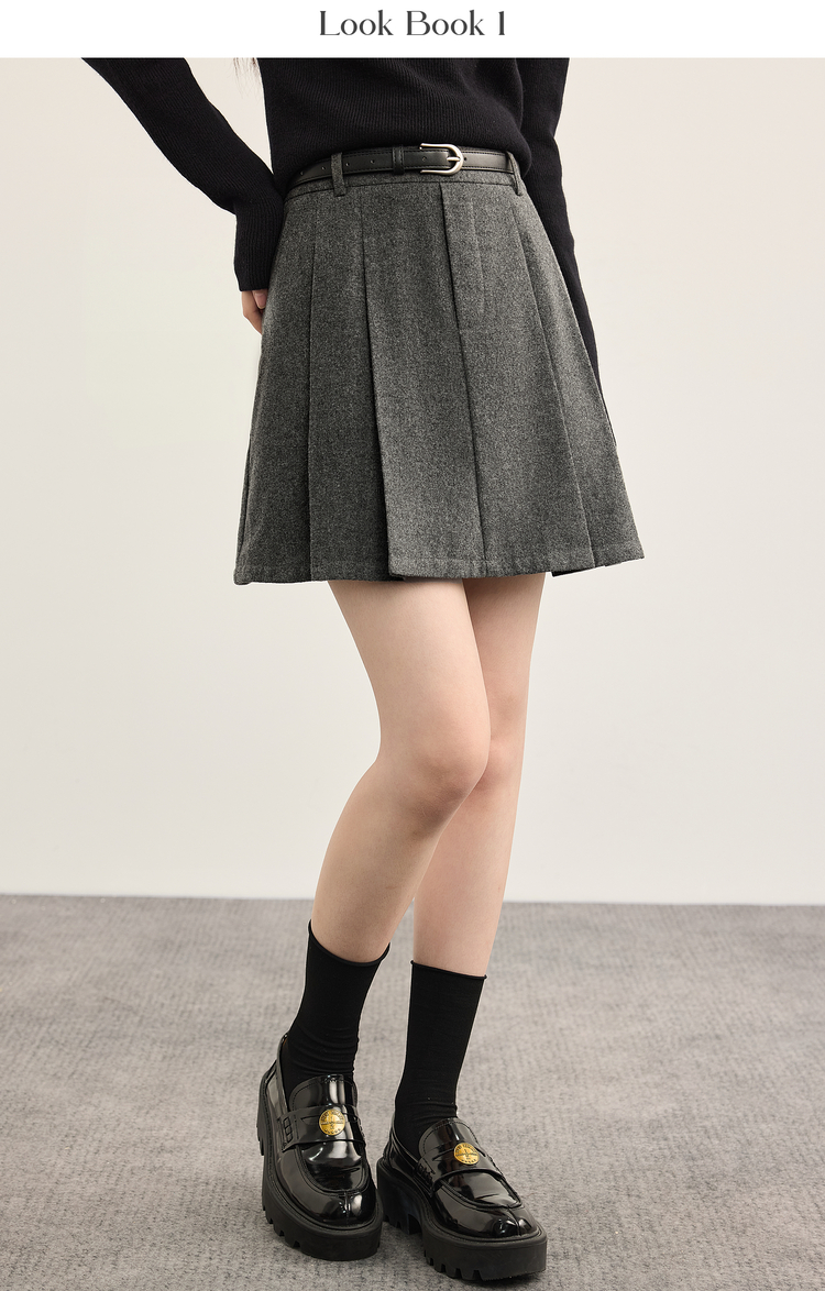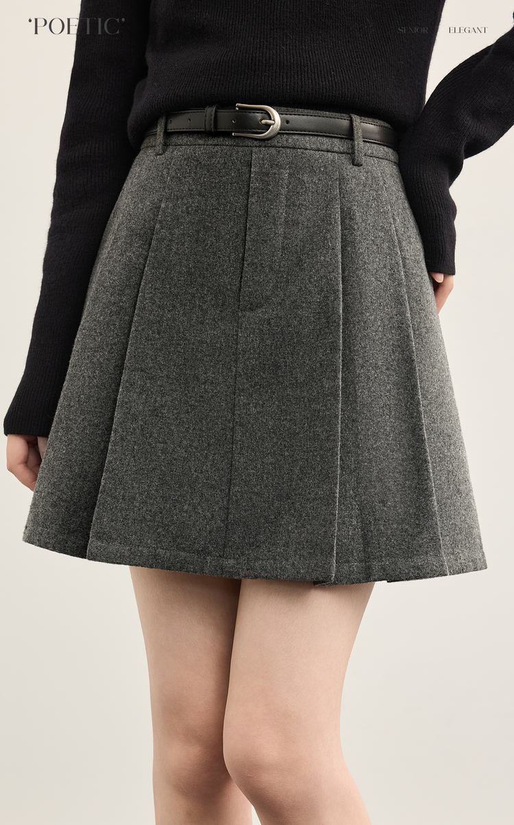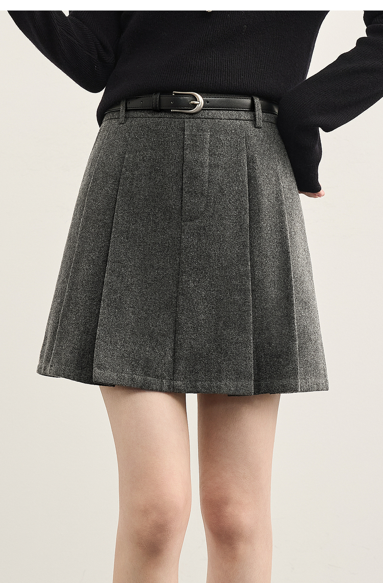 【10/29新品】熙世界知识分子风毛呢半身裙女高腰复古a字百褶短裙2025秋冬新款
