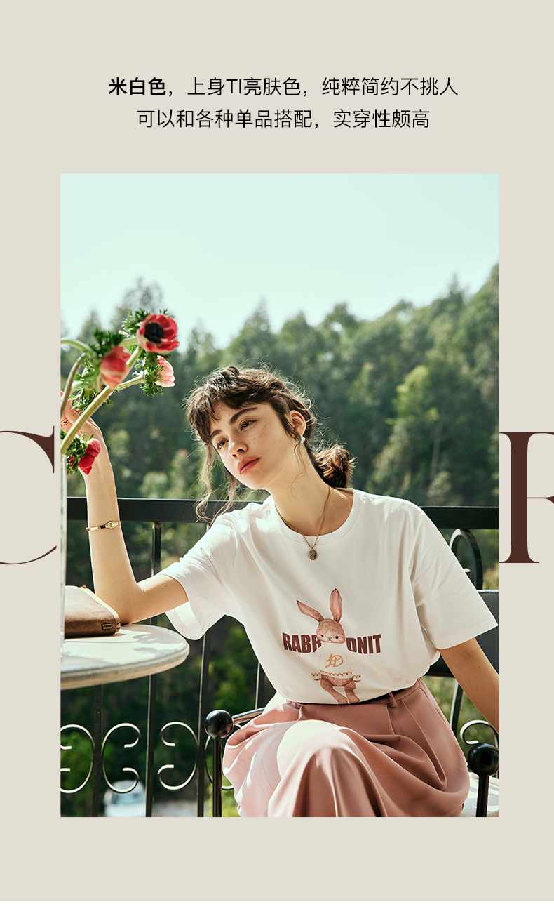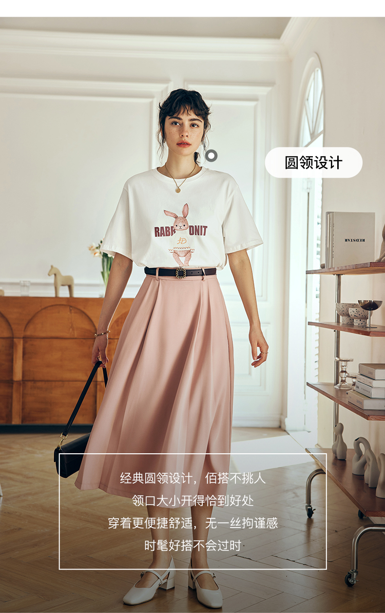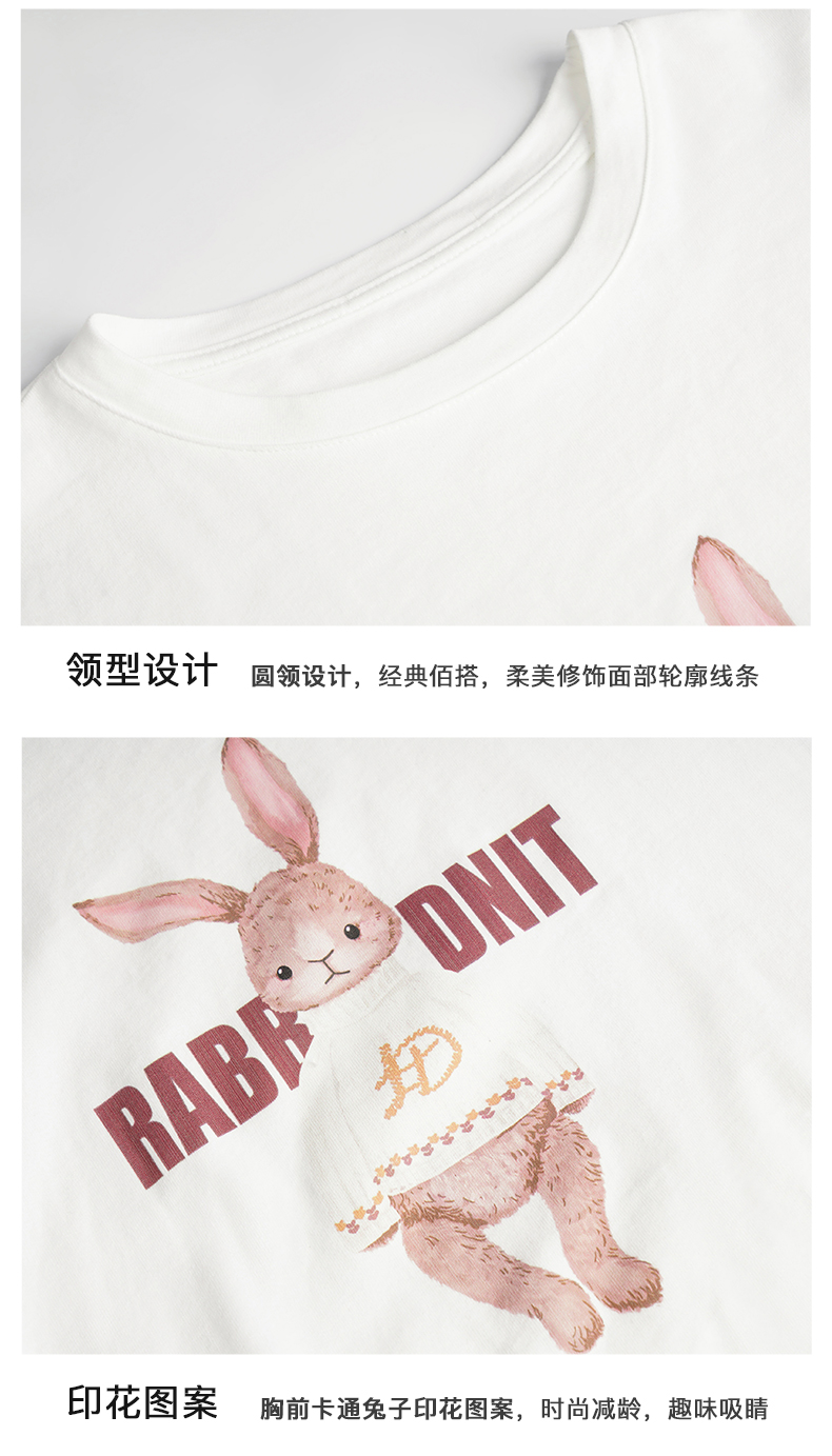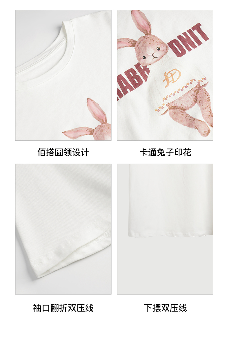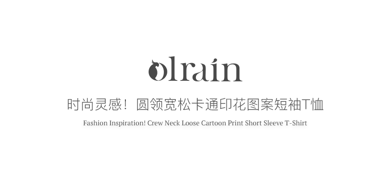 OLrain欧芮儿法式米白色短袖T恤女夏季2023新款时尚卡通印花上衣