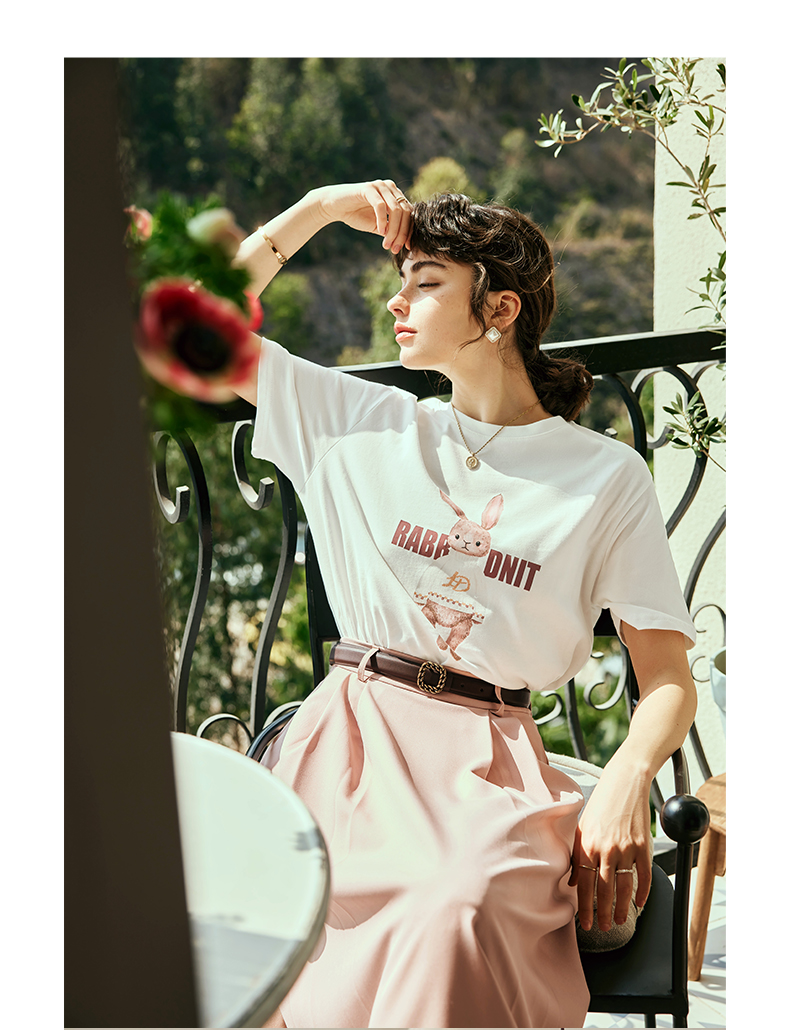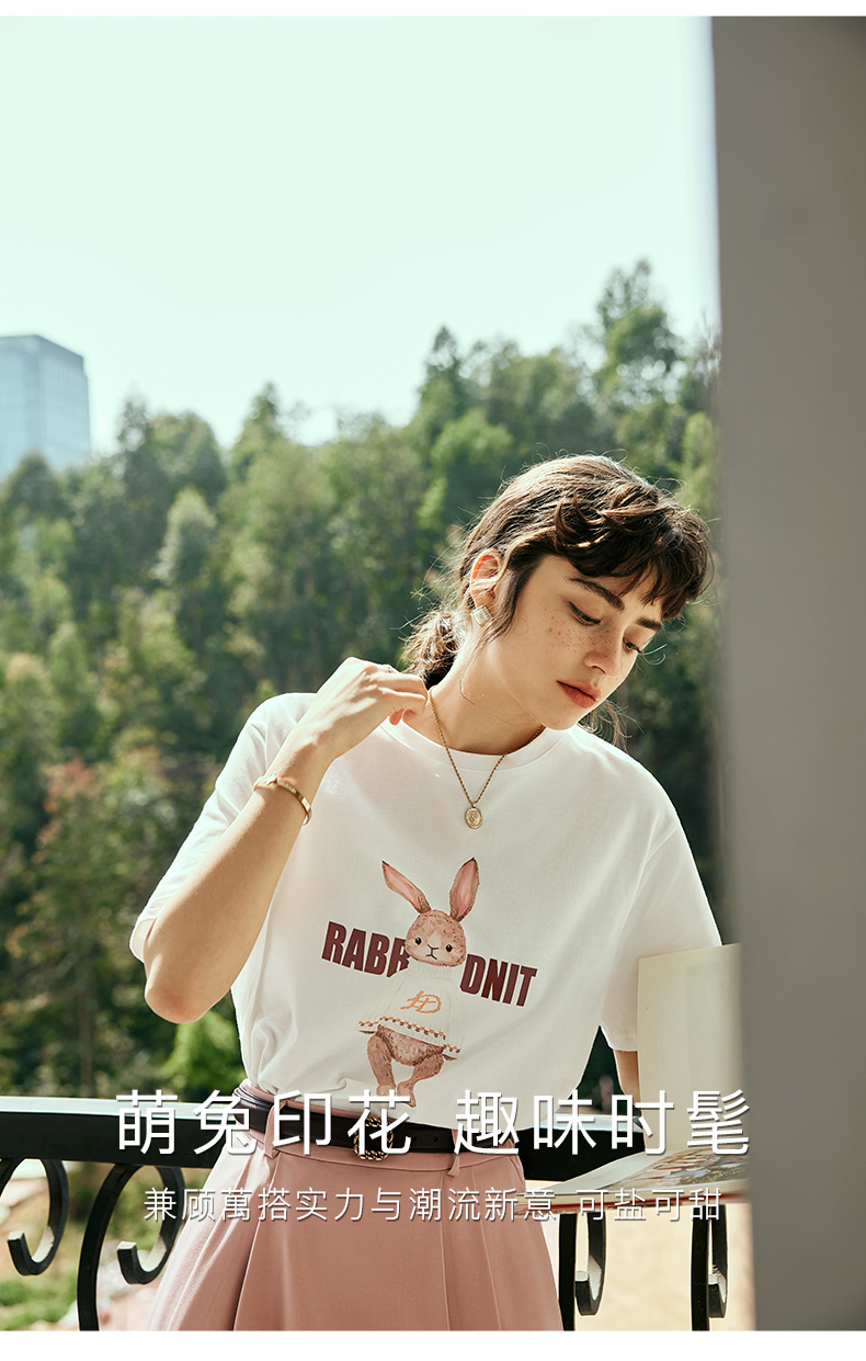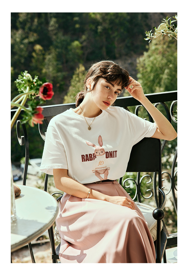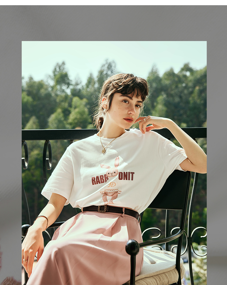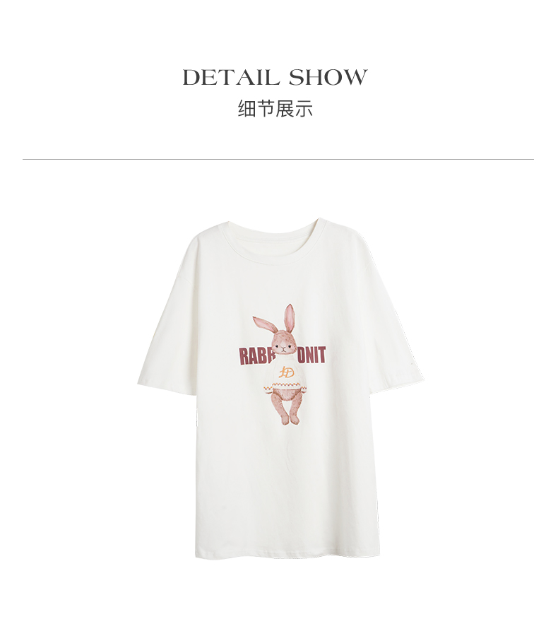 OLrain欧芮儿法式米白色短袖T恤女夏季2023新款时尚卡通印花上衣